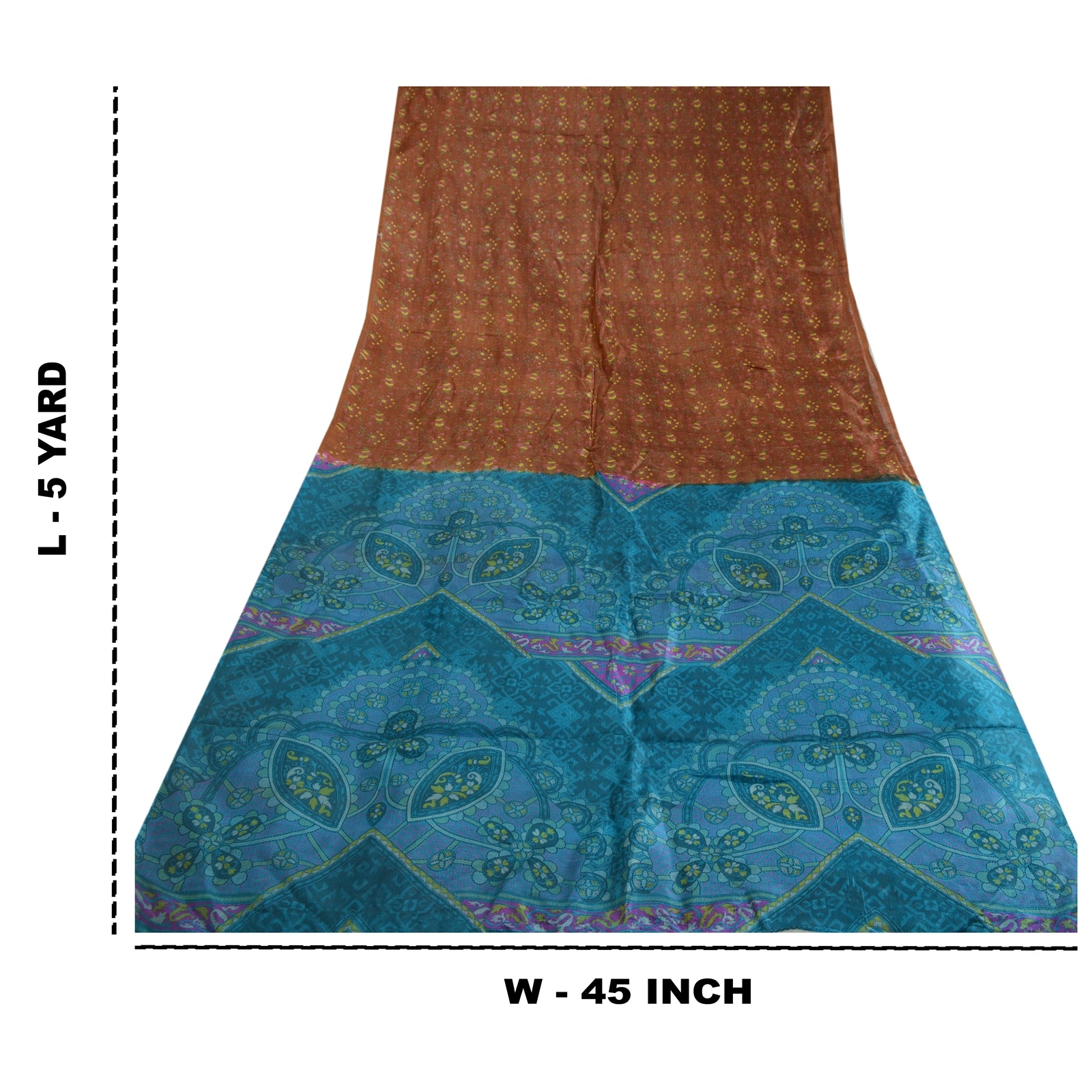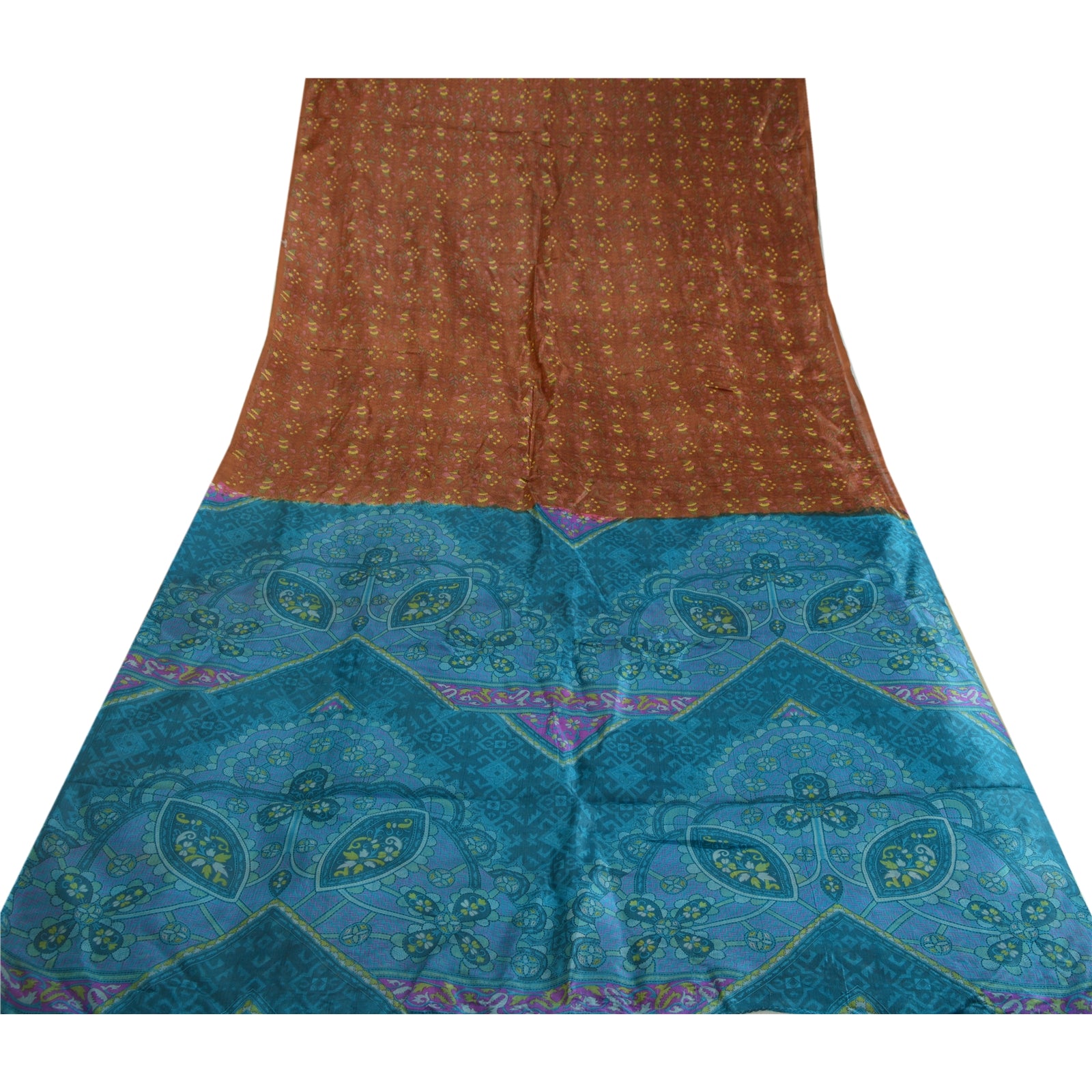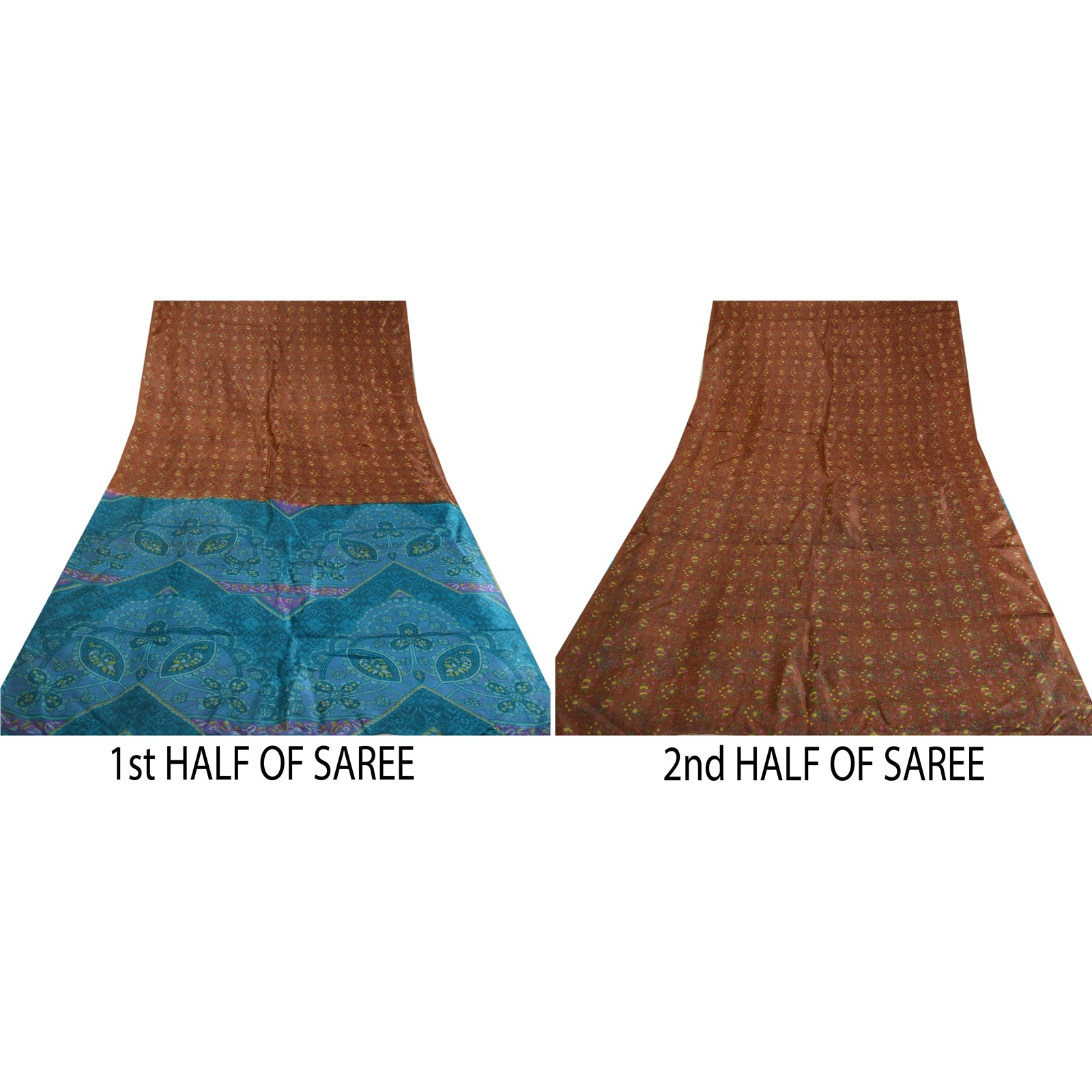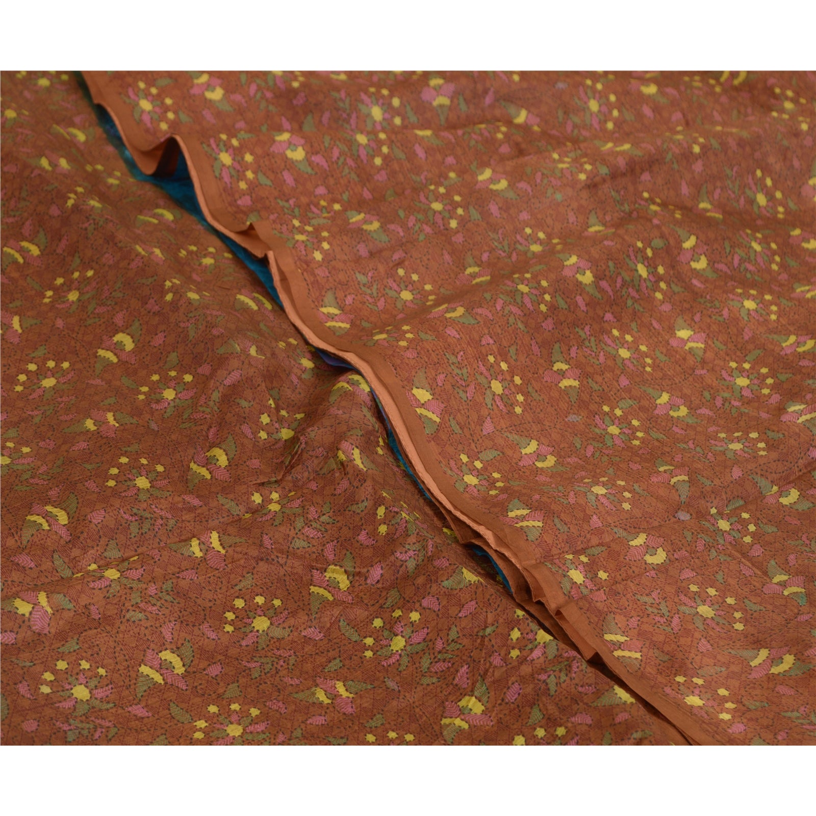 Сари в винтажном стиле на санскрите, коричневое/синее, кантха, чистый шелк, напечатанный на сари, ремесло, устойчивая ткань