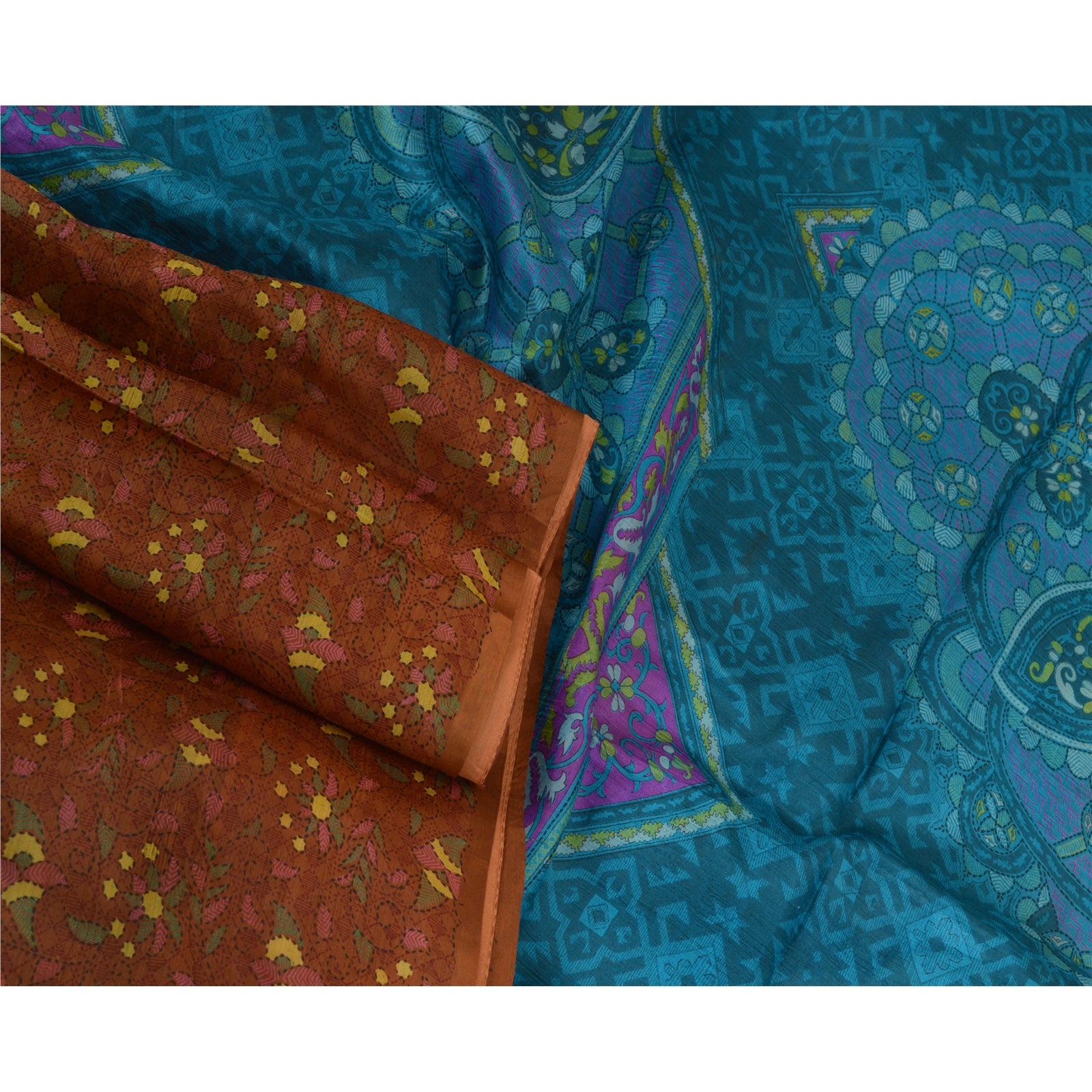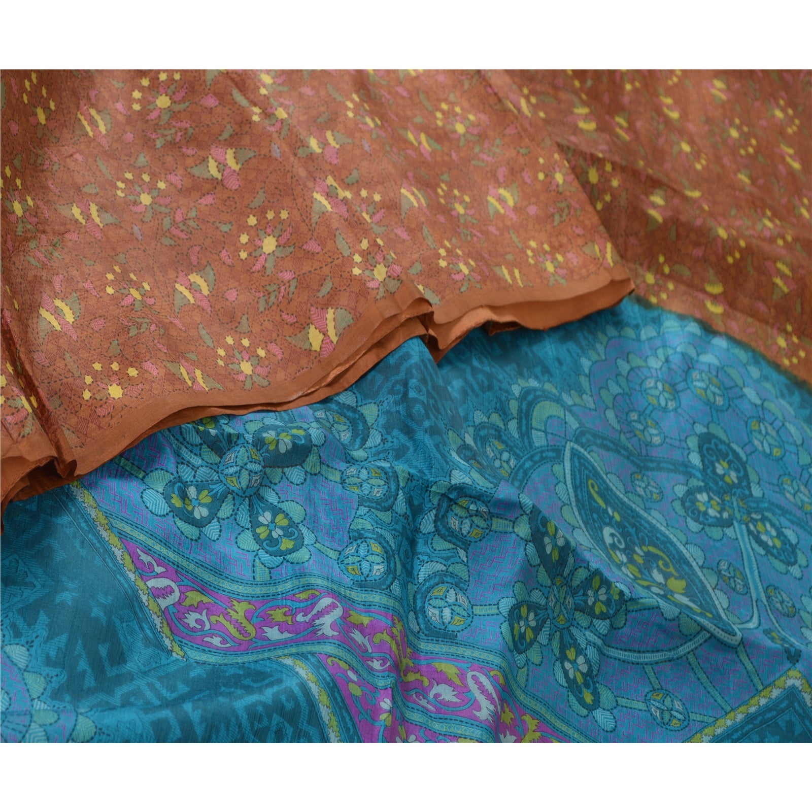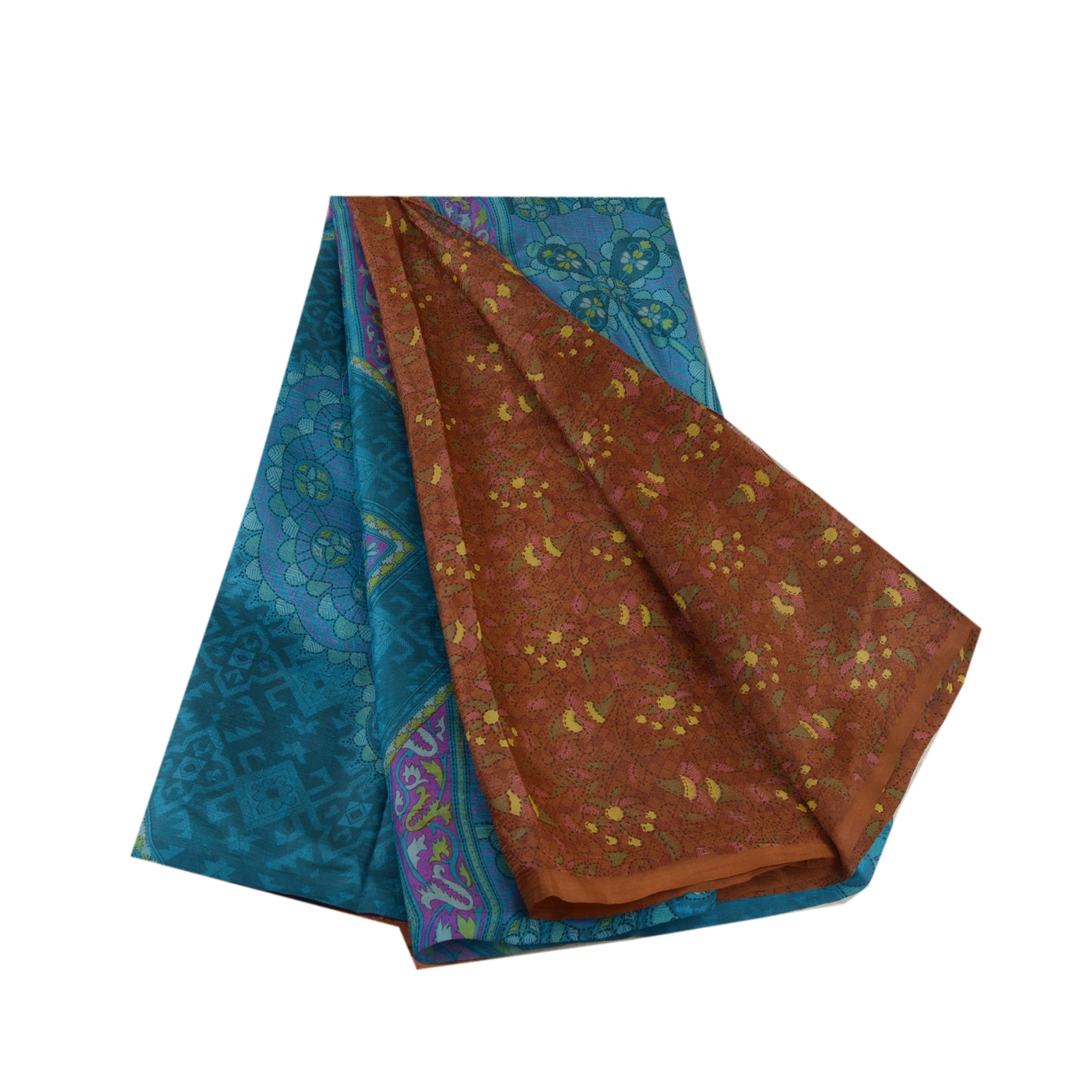 Сари в винтажном стиле на санскрите, коричневое/синее, кантха, чистый шелк, напечатанный на сари, ремесло, устойчивая ткань