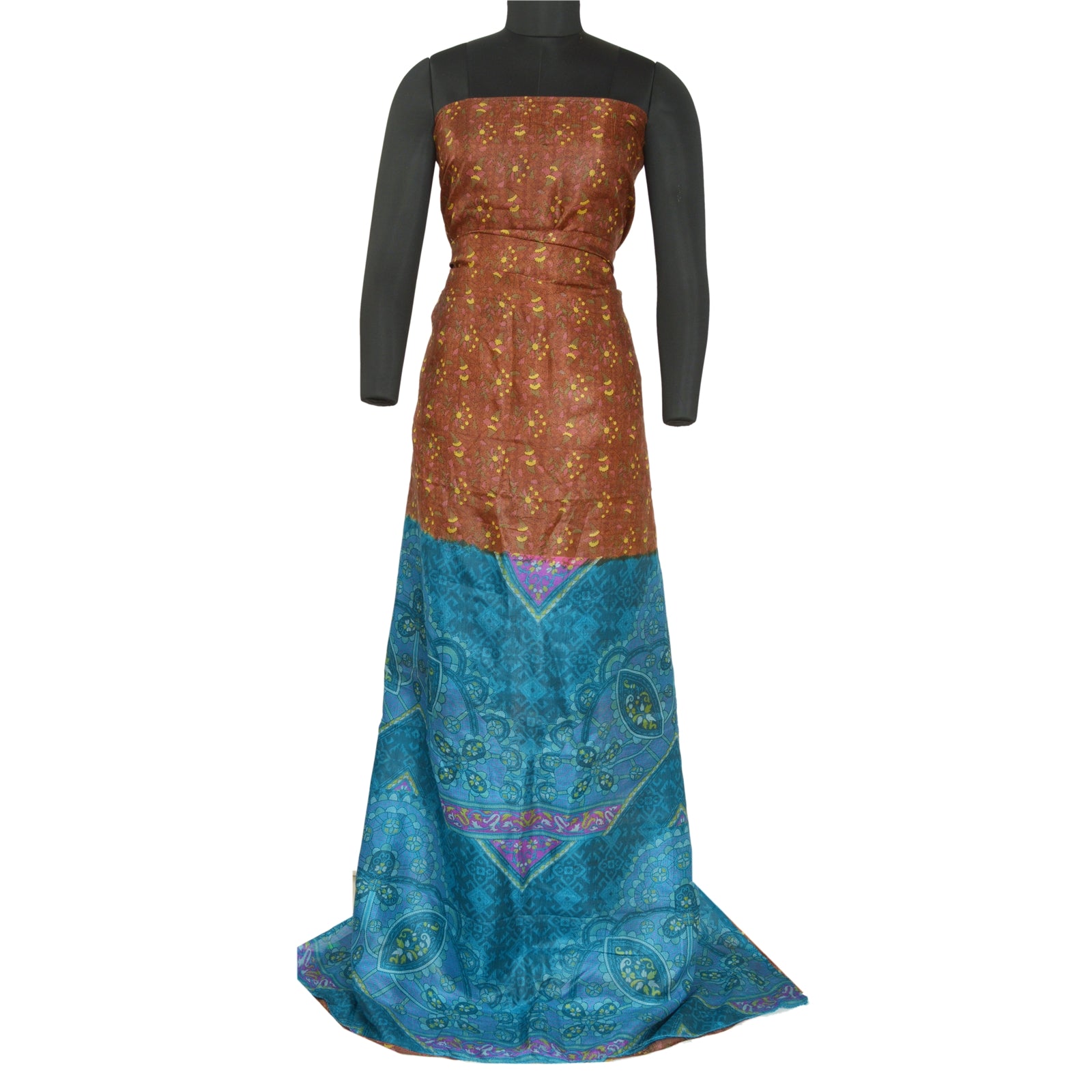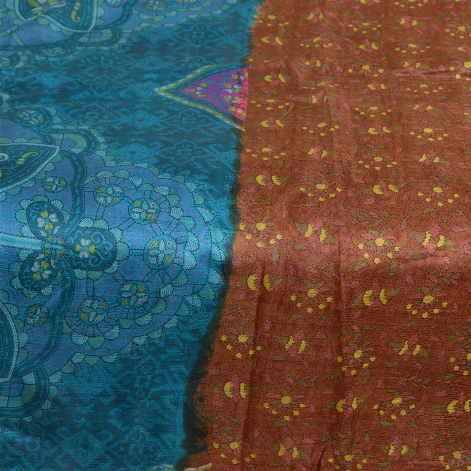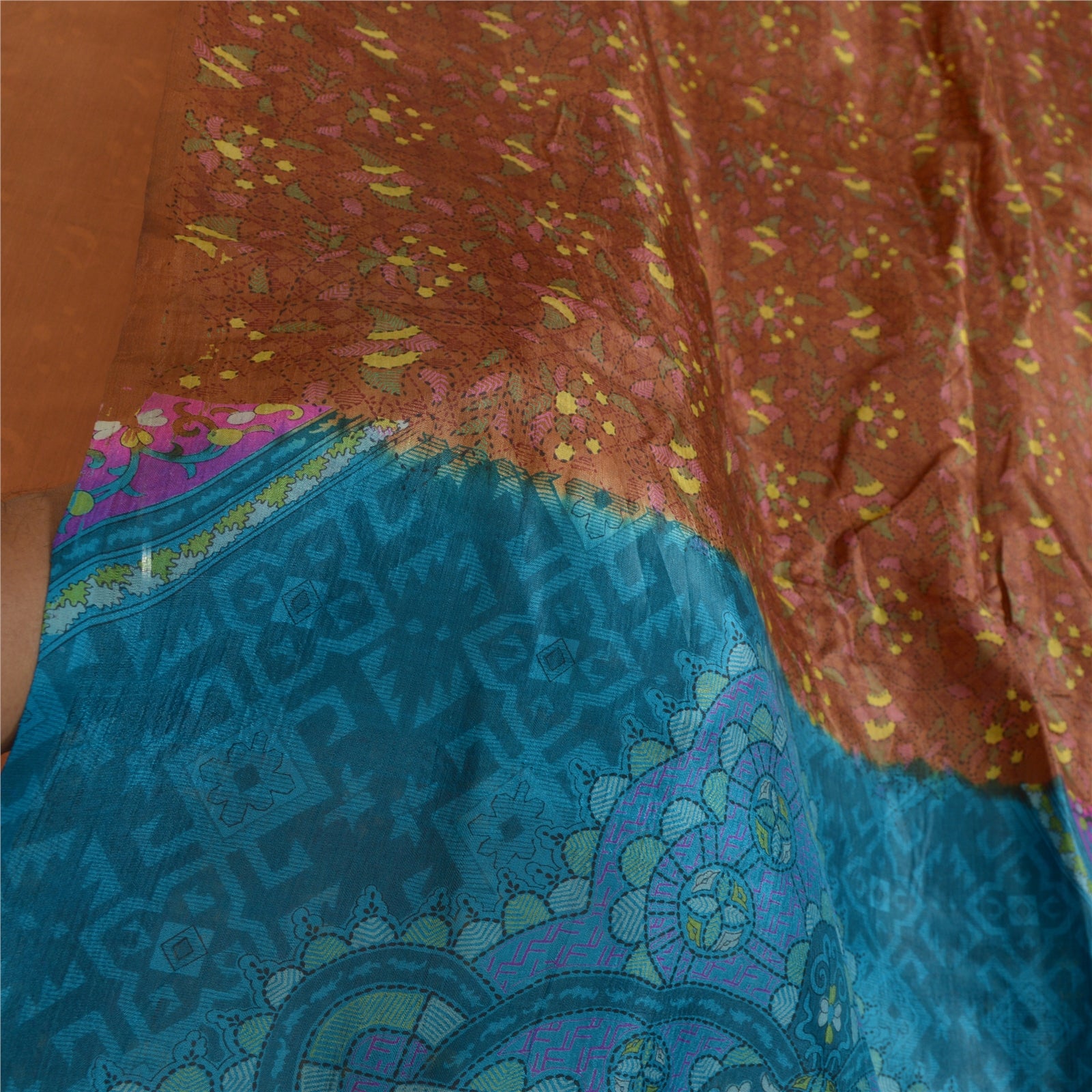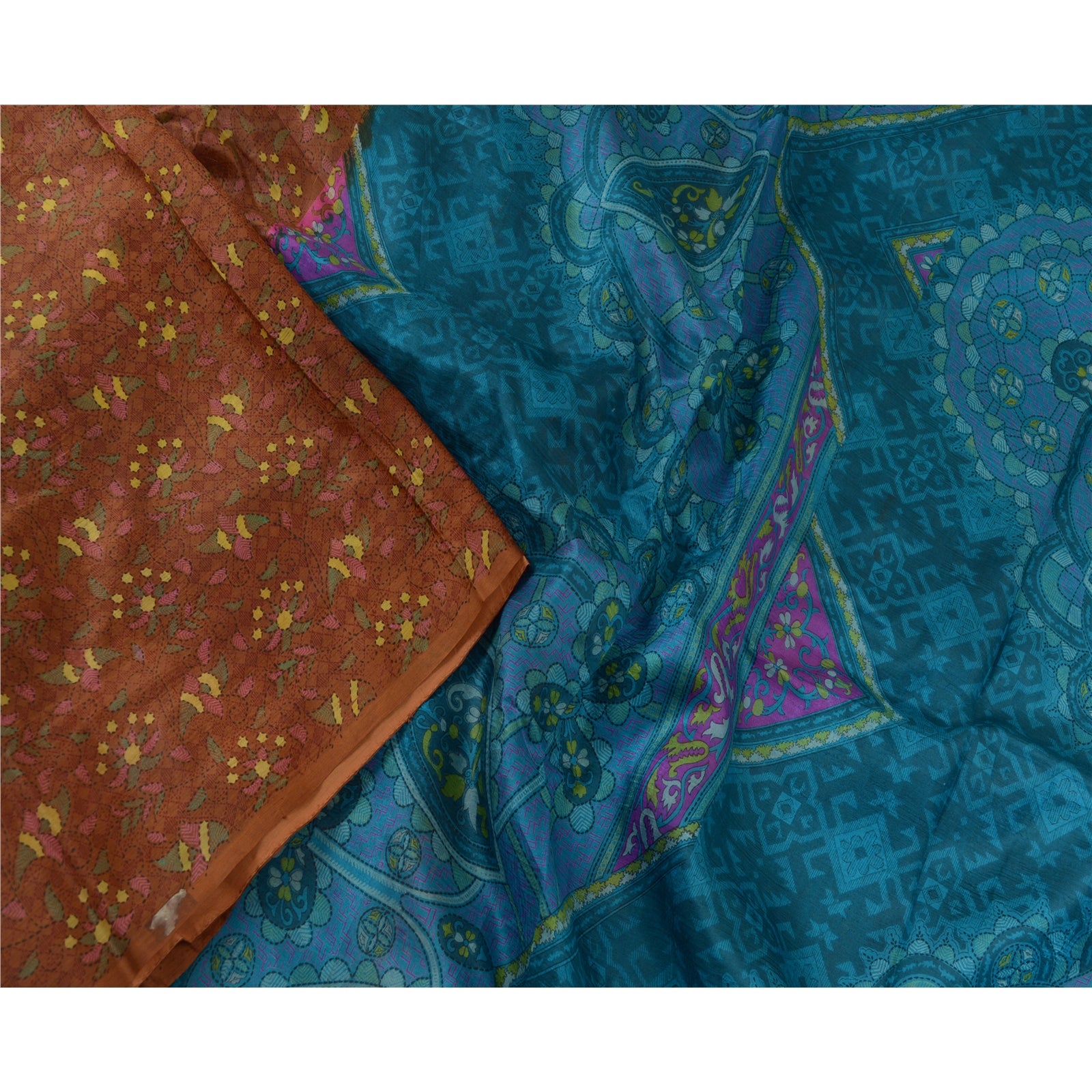 Сари в винтажном стиле на санскрите, коричневое/синее, кантха, чистый шелк, напечатанный на сари, ремесло, устойчивая ткань