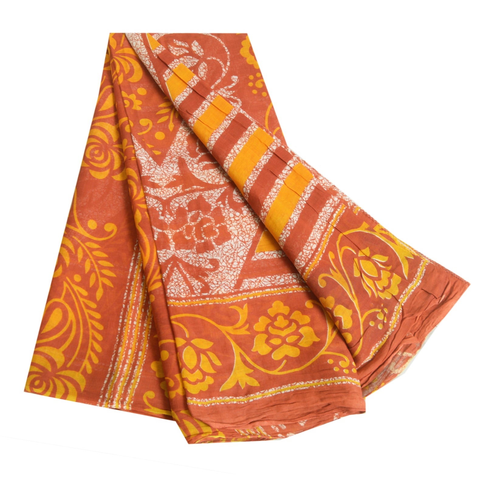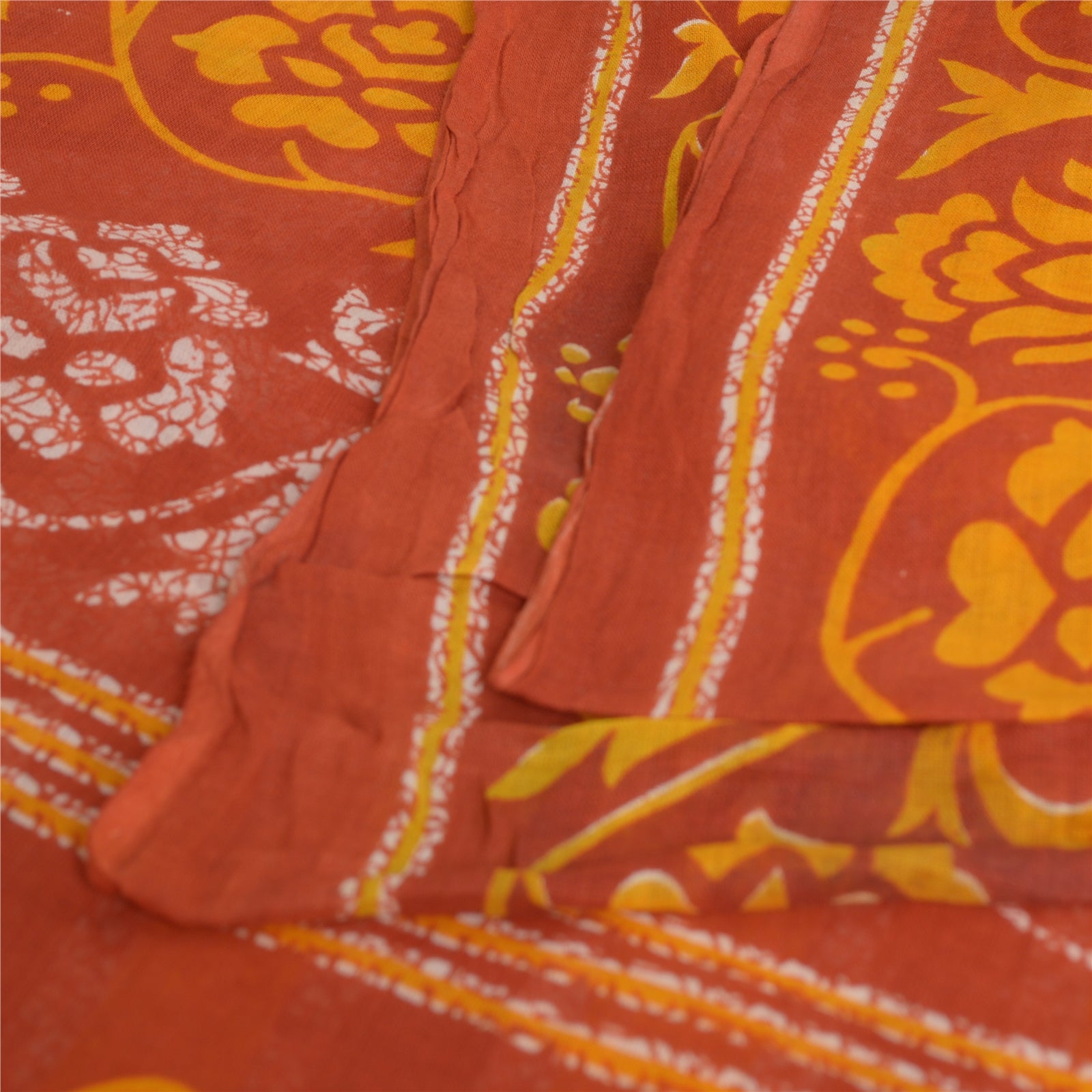 Sanskriti Vintage Sarees Brown/Orange Batik Pure Cotton Print Sari Craft Fabric