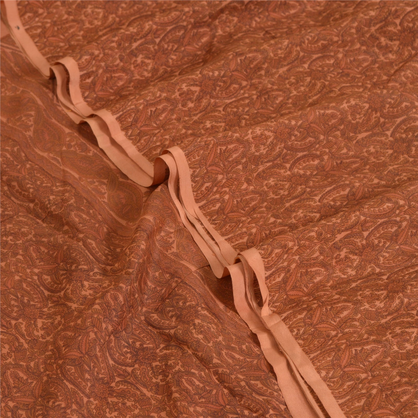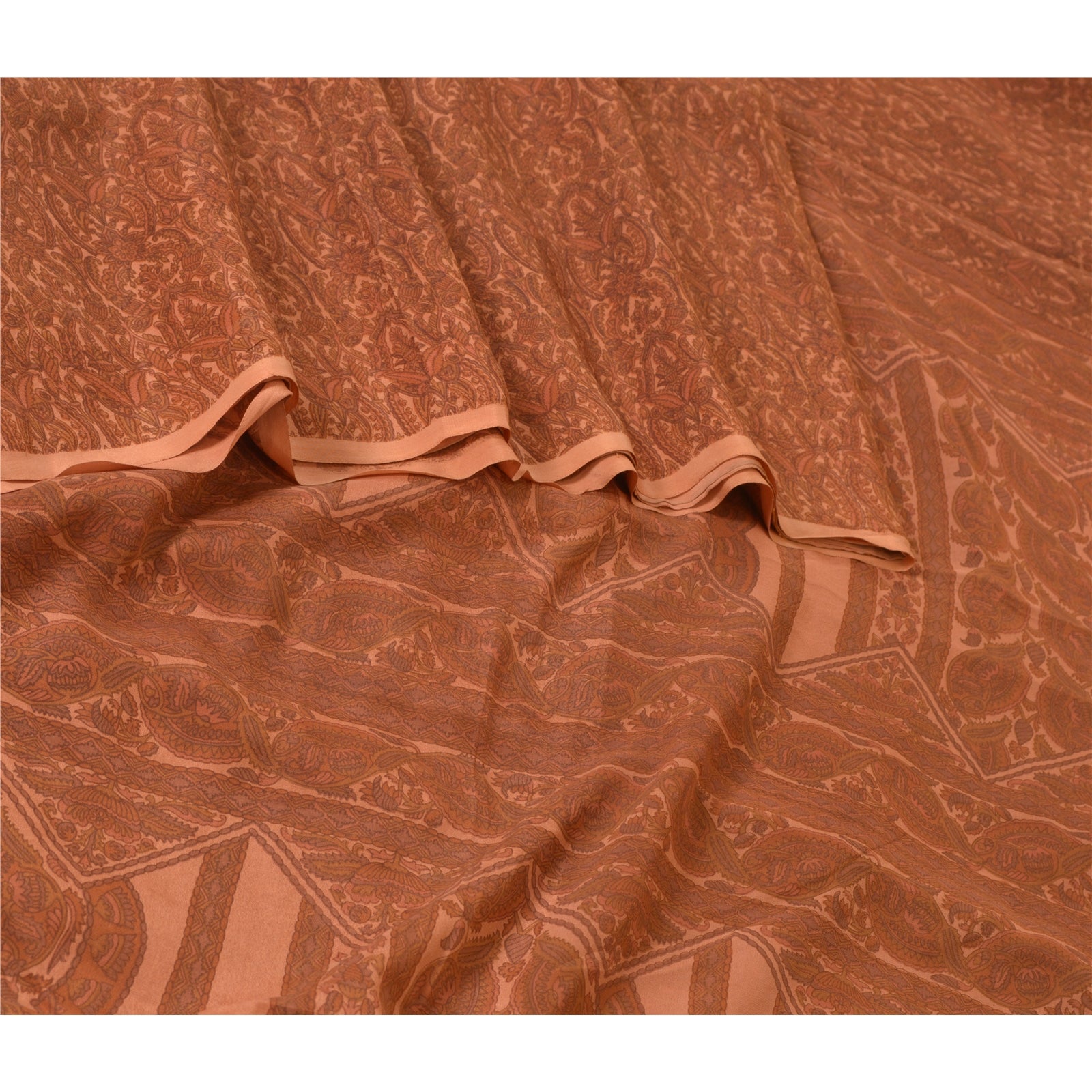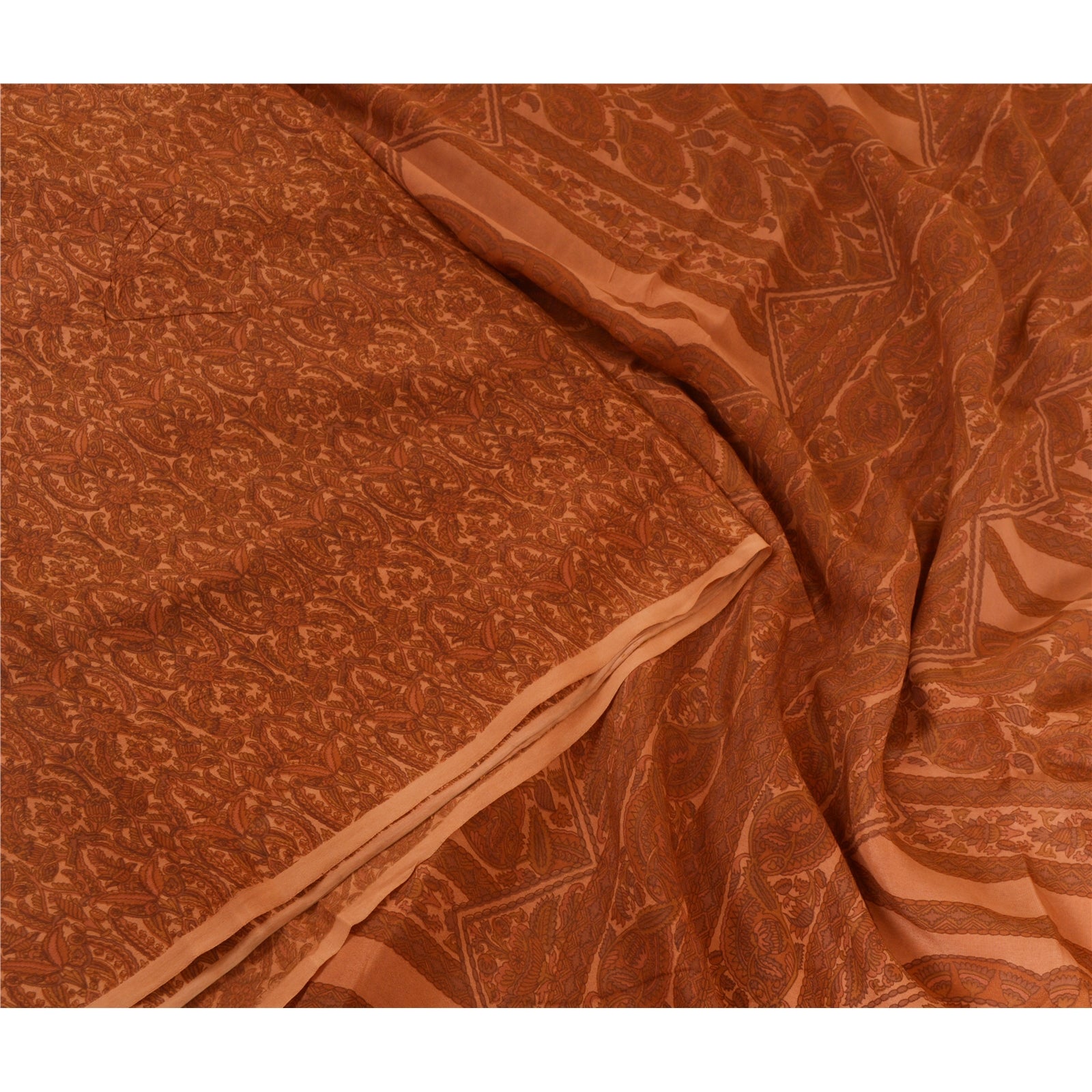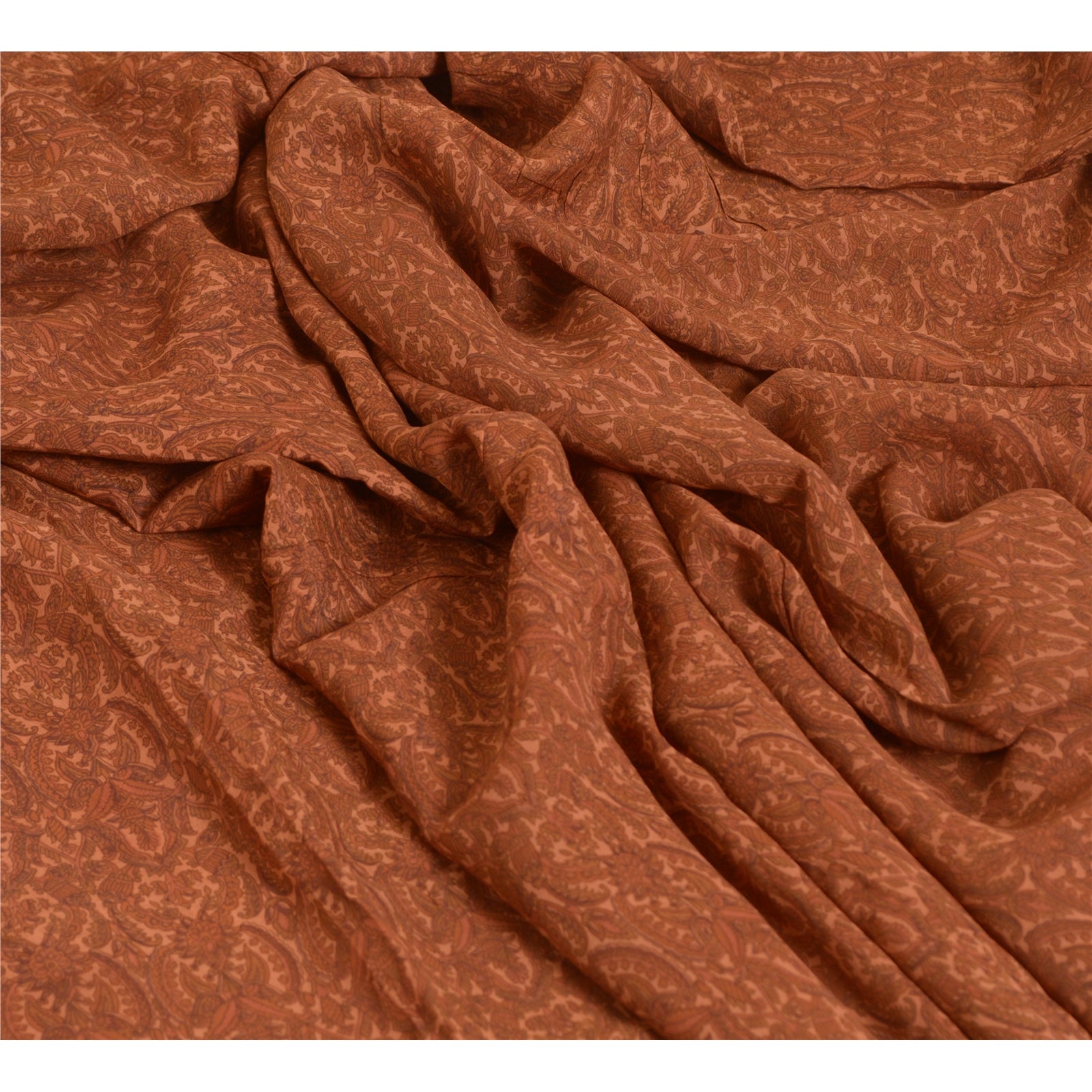 Санскритские винтажные сари коричневые чистый шелк сари с цветочным принтом 5 ярдов ткань для рукоделия из экологически чистой ткани