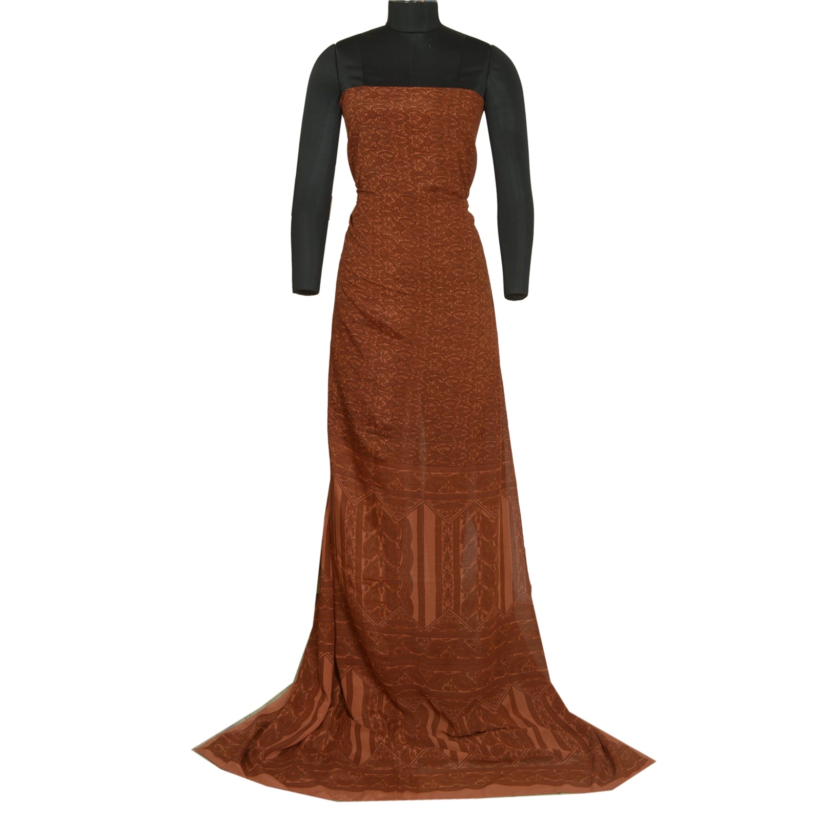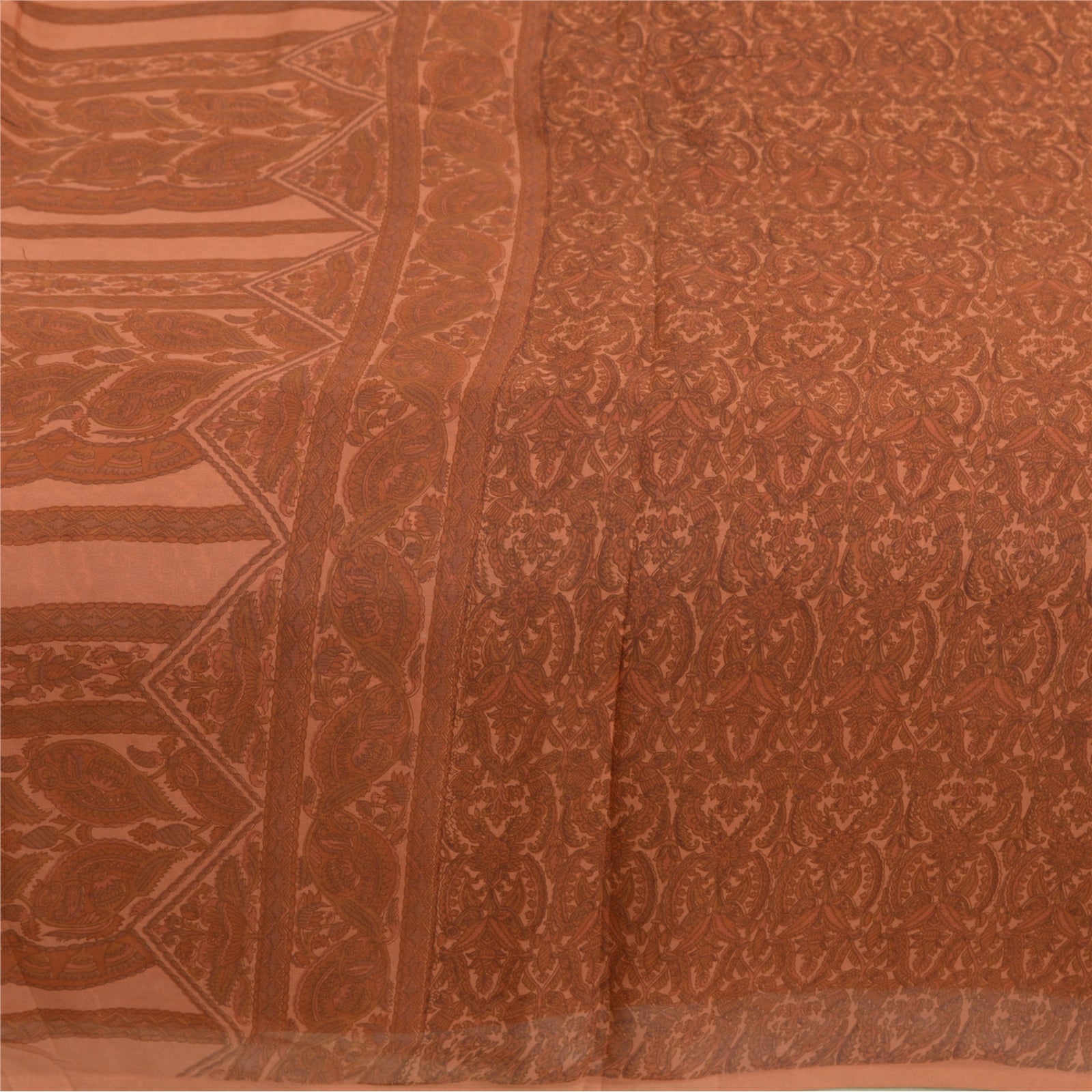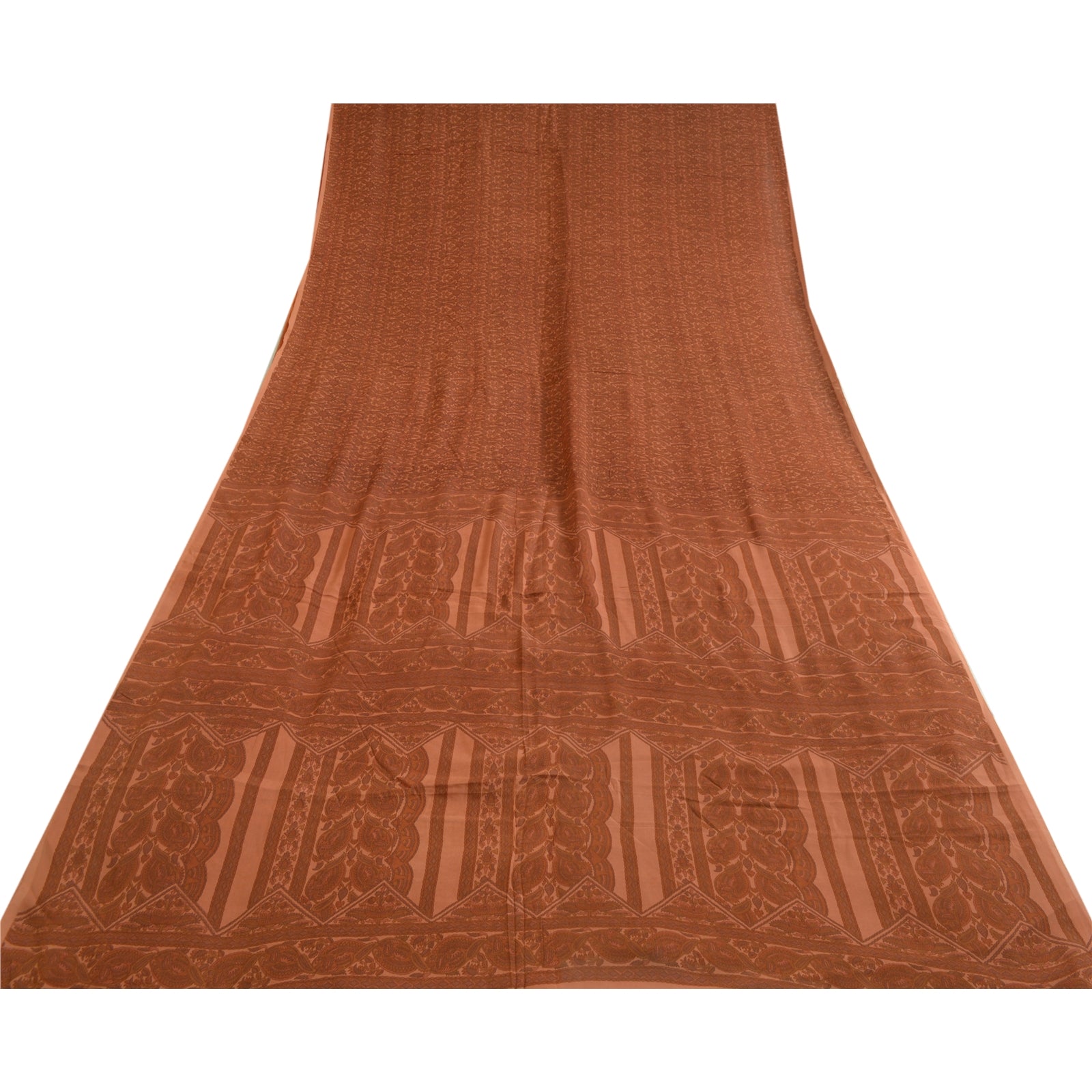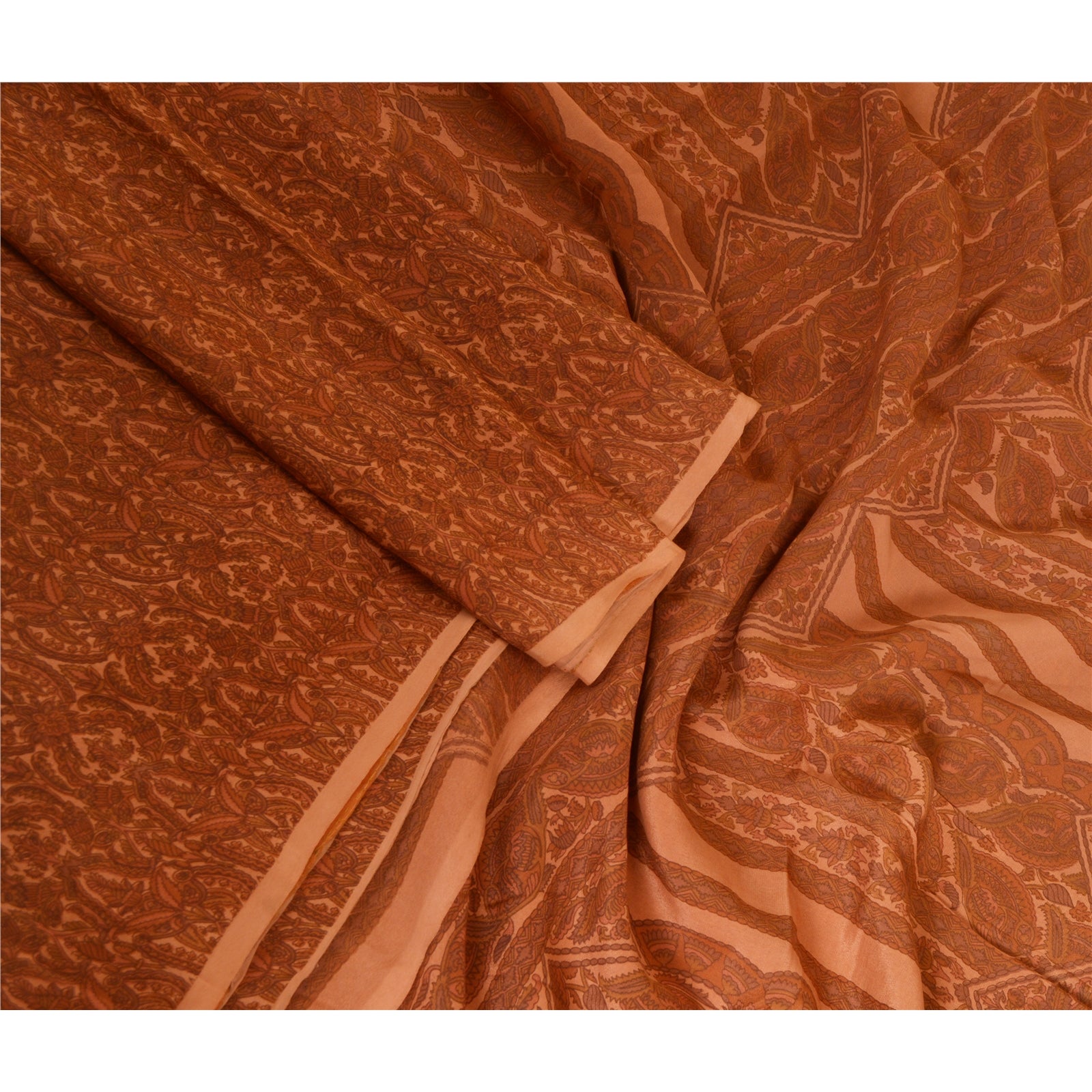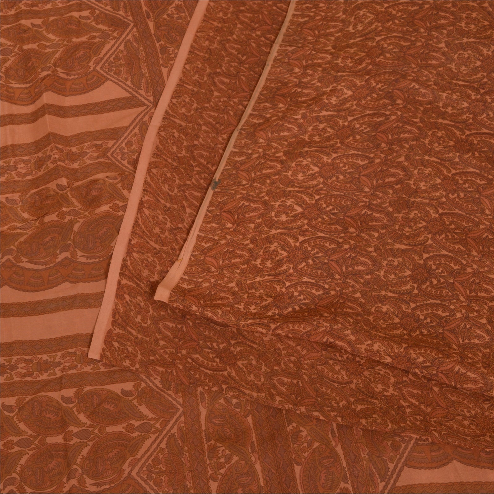 Санскритские винтажные сари коричневые чистый шелк сари с цветочным принтом 5 ярдов ткань для рукоделия из экологически чистой ткани