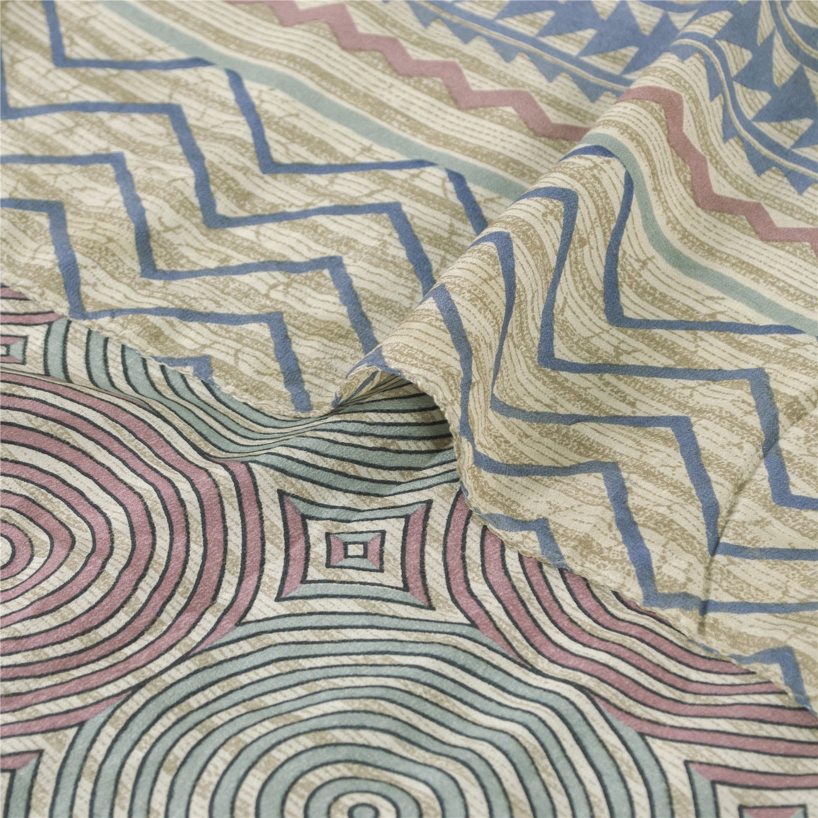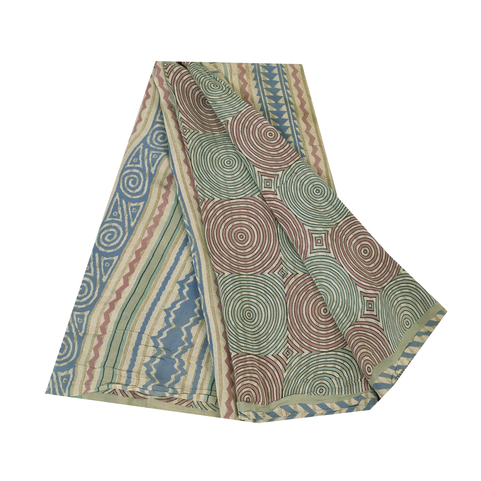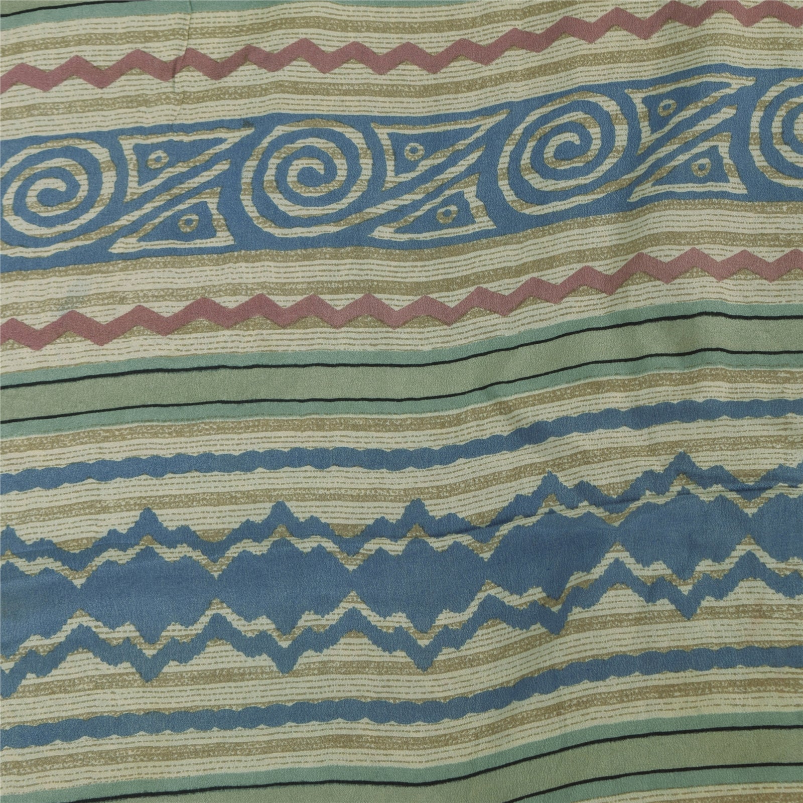 Sanskriti Vintage Sarees Cream Pure Crepe Silk Printed Sari 5+yd Craft Fabric