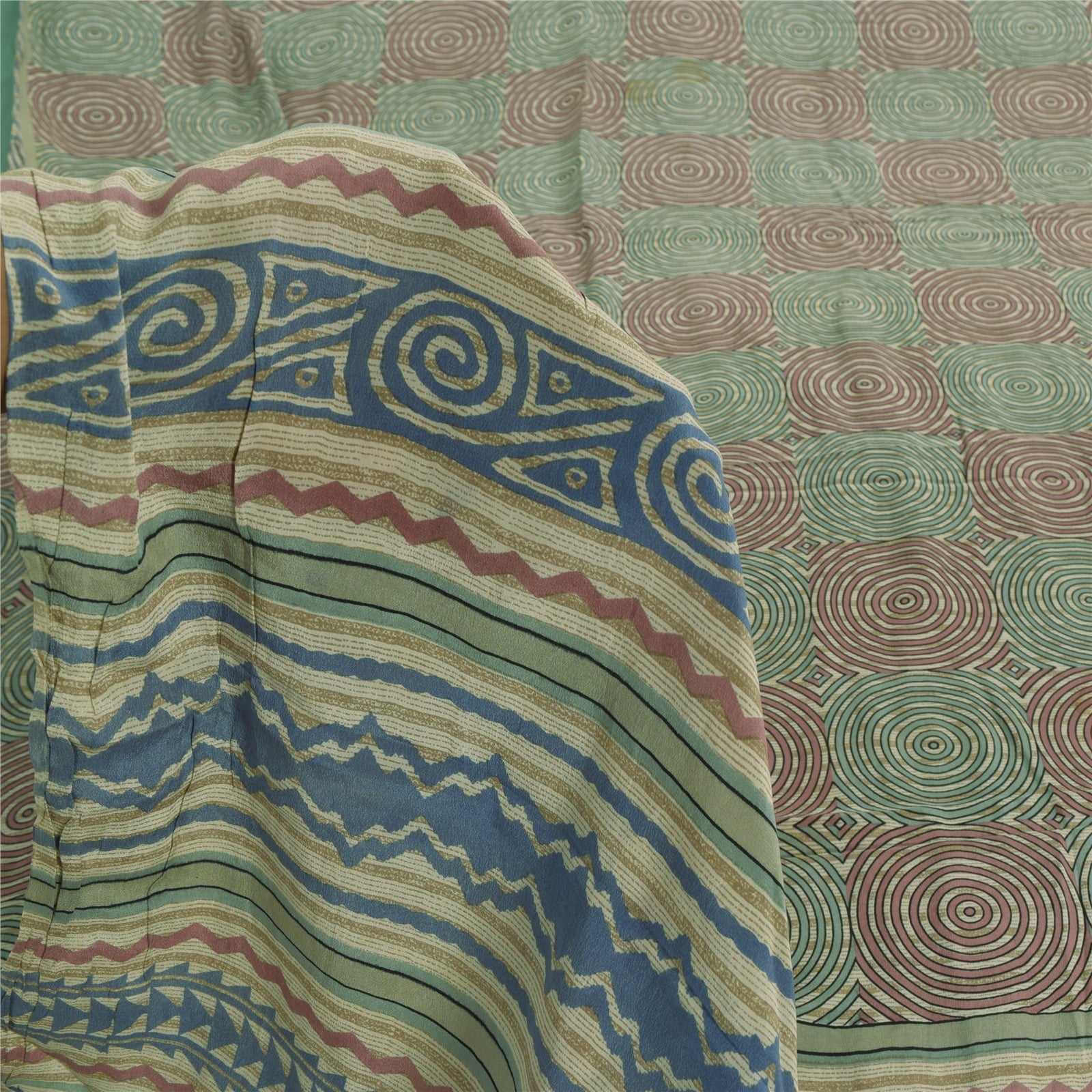THE ITEM COLOR OR SHADE MAY BE DARKER OR LIGHTER THAN THE PICTURE.' • Beautiful cream colored printed pure crepe silk saree . • Pallu & Border has printed geometric design. • Similar design in center part of sari . Saree has mild stain on it. This unique vintage saree can be used for various crafting ideas even if you don't want to use it as a sari. Design a dress, use it as a as window dressing, upholstery, sarongs, throw, dress making and table linen much more. Let your creative juices flow and use this decorated fabric in multiple fashion. International buyers please note: Import duties, taxes, and charges are not included in the item price or postage cost. These charges are the buyer's responsibility. Please check with your country's customs office to determine what these additional costs will be prior to bidding or buying.Buyer will pay custom duty/tax. It is calculated and charged differently by every country. As a seller I do not have any control over it. VAT or sales tax is calculated by the platform at the time of checkout. Customs charge is payable at the time of delivery. prc-23020