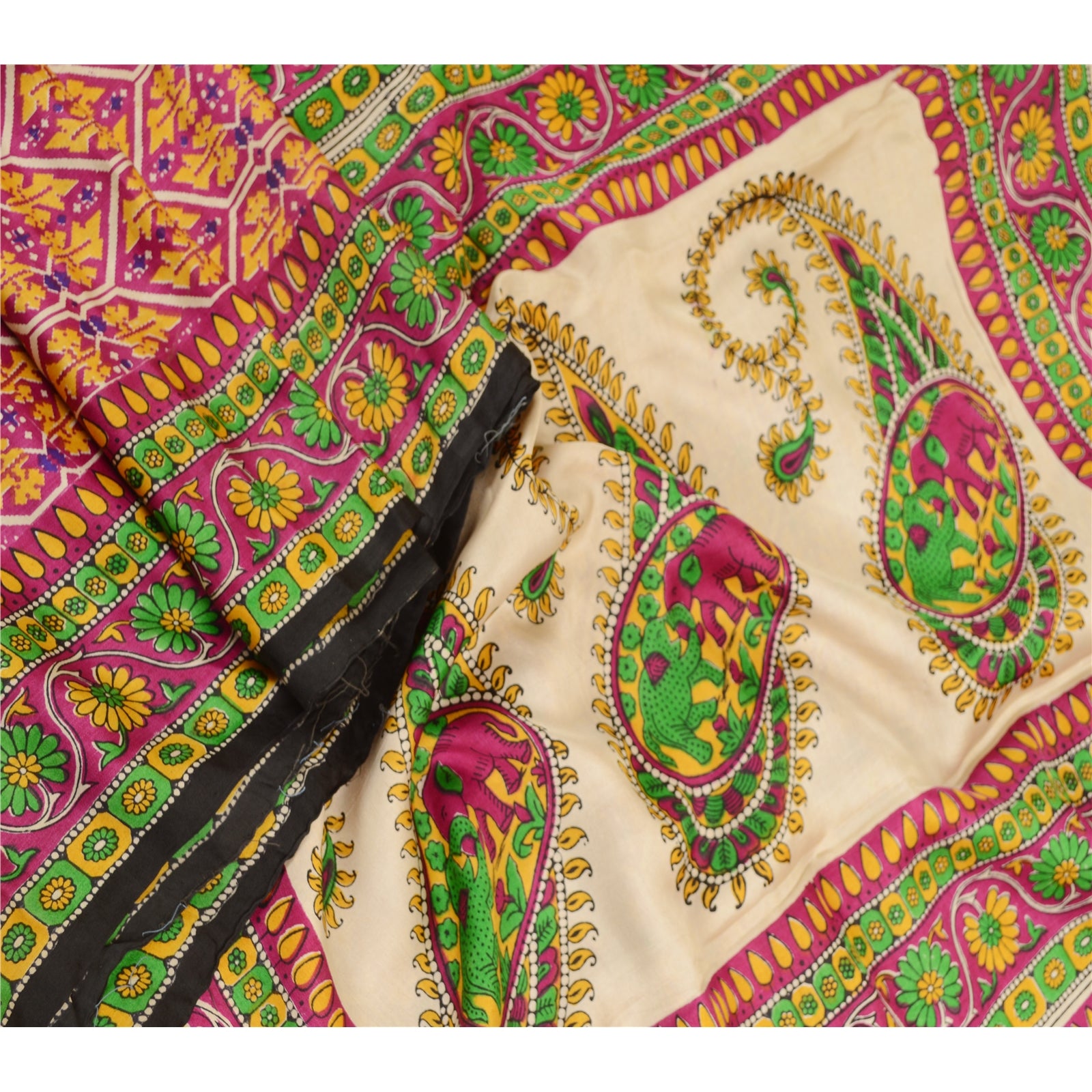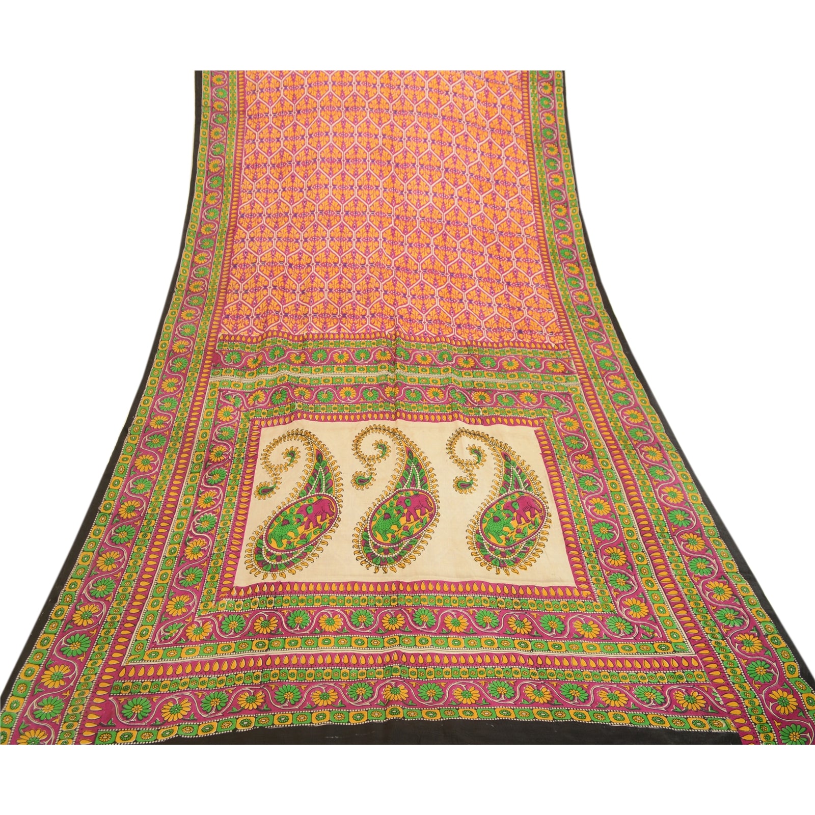 Санскритские винтажные сари из Индии, многослойная ткань из чистого шелка с принтом для сари из экологически чистой ткани