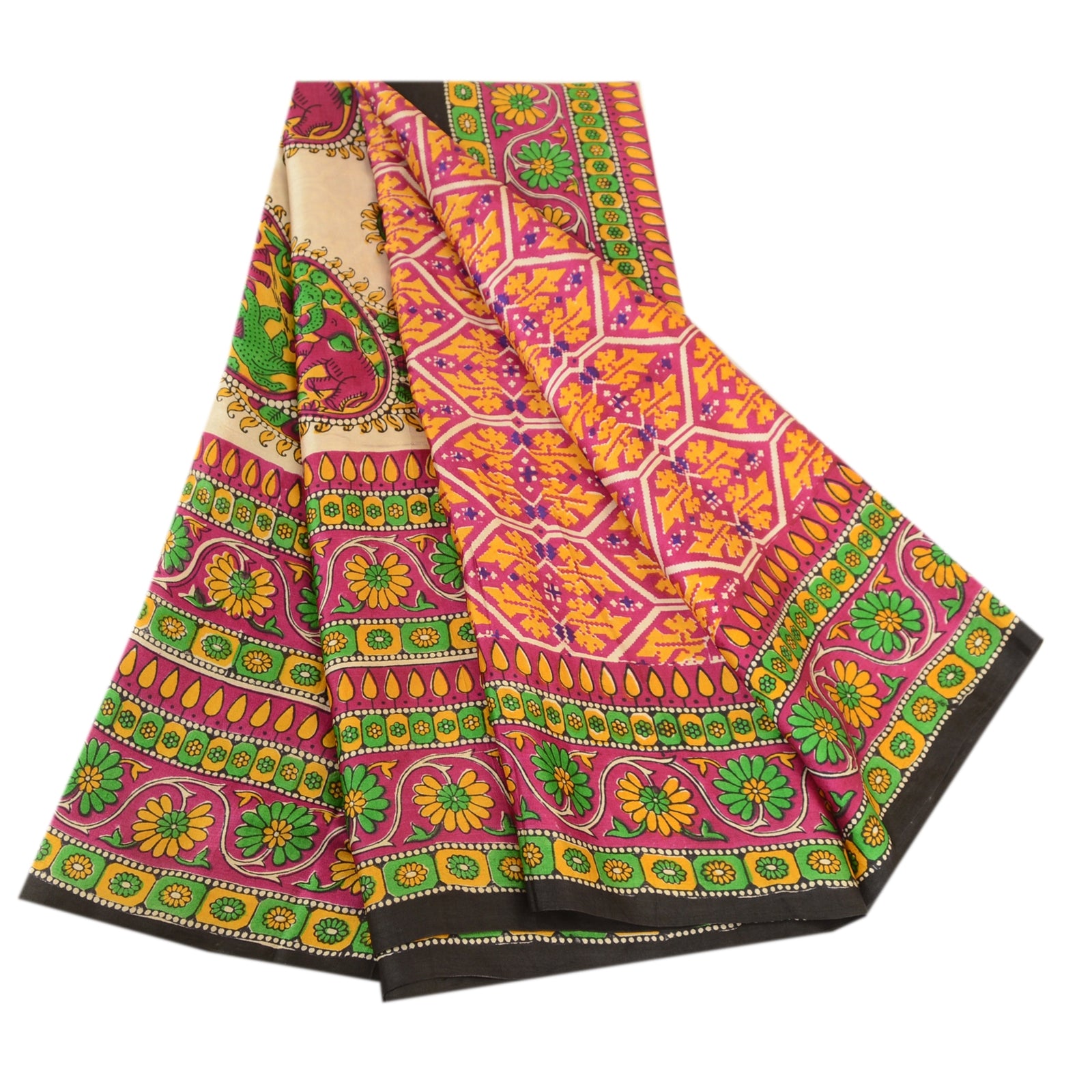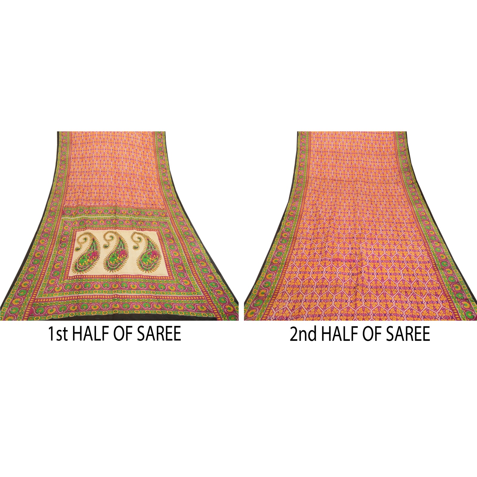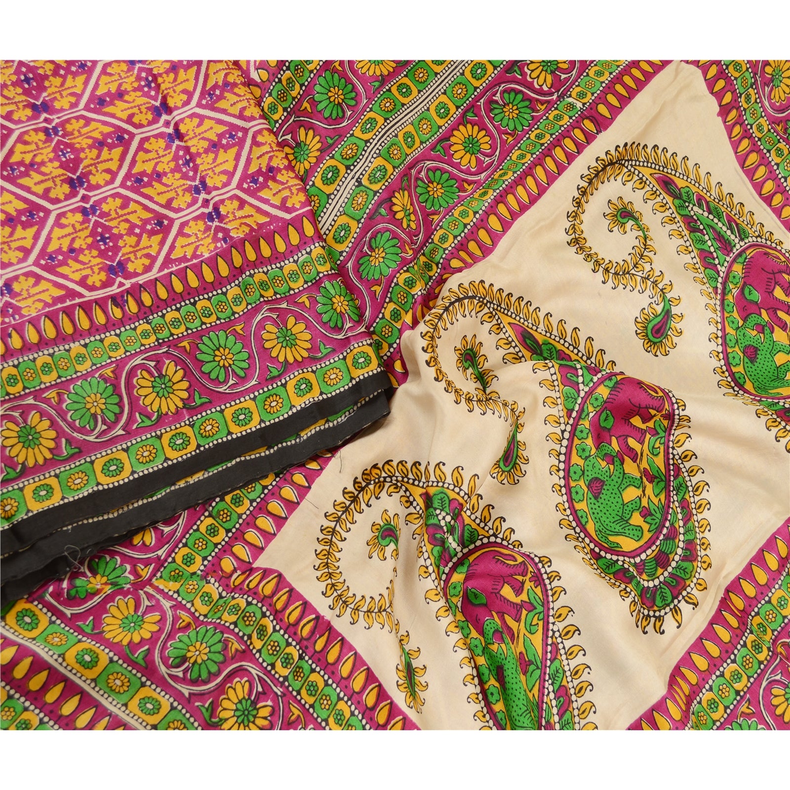 Красивое разноцветное сари из чистого шелка с принтом. Pallu & Border имеет напечатанный цветочный узор. Похожий узор в центральной части сари. Что особенного в этом сари? Потрясающий дизайн действительно подчеркивает красоту сари. Это уникальное винтажное сари можно использовать для различных идей по рукоделию, даже если вы не хотите использовать его как сари. Спроектируйте платье, используйте его в качестве окна, перевязочного материала, обивки, саронга, пледа, для пошива платьев и столового белья и многого другого. Дайте волю своим творческим сокам и используйте эту декорированную устойчивую ткань в различных модах.
