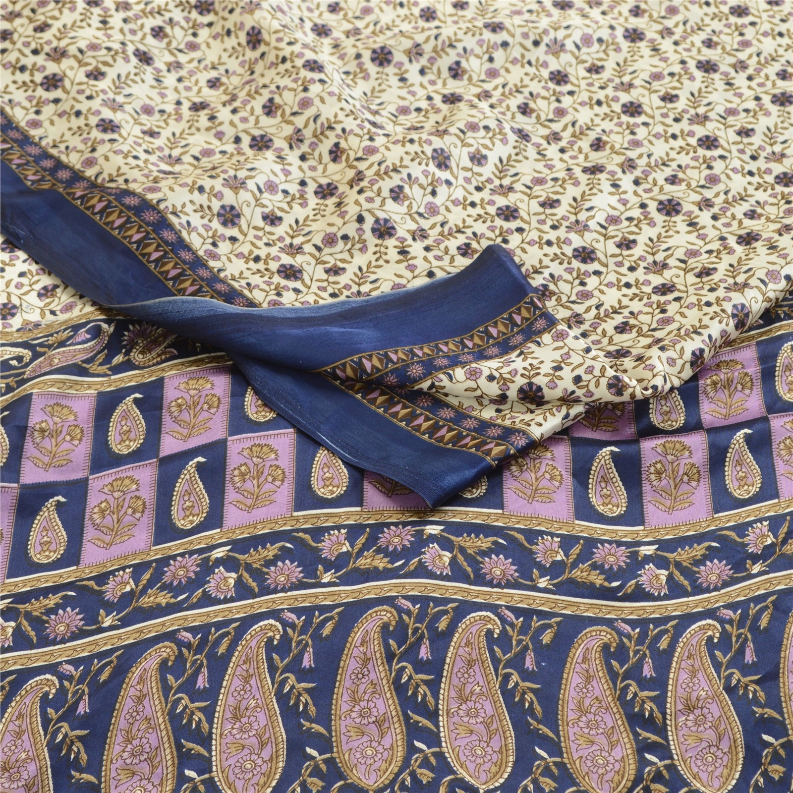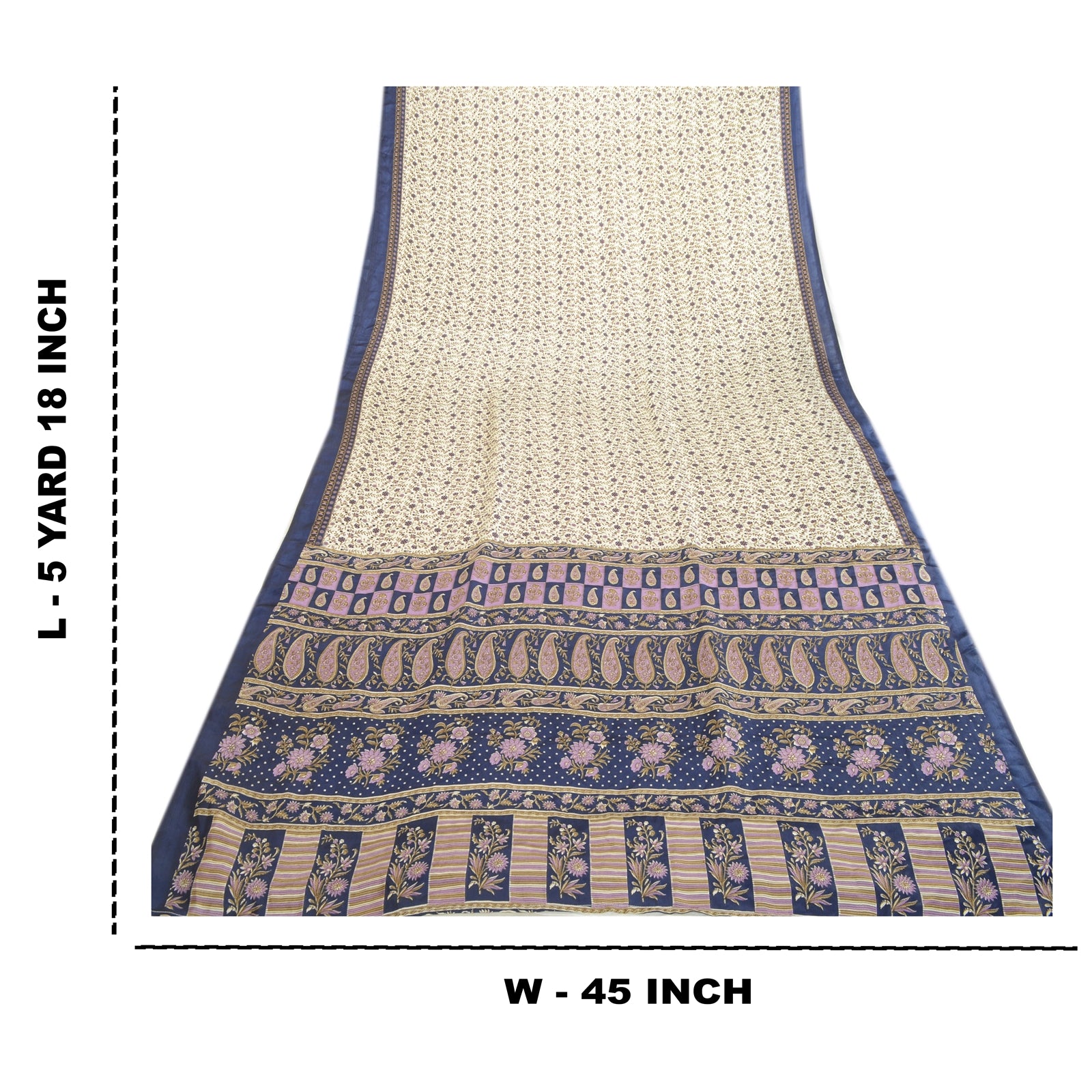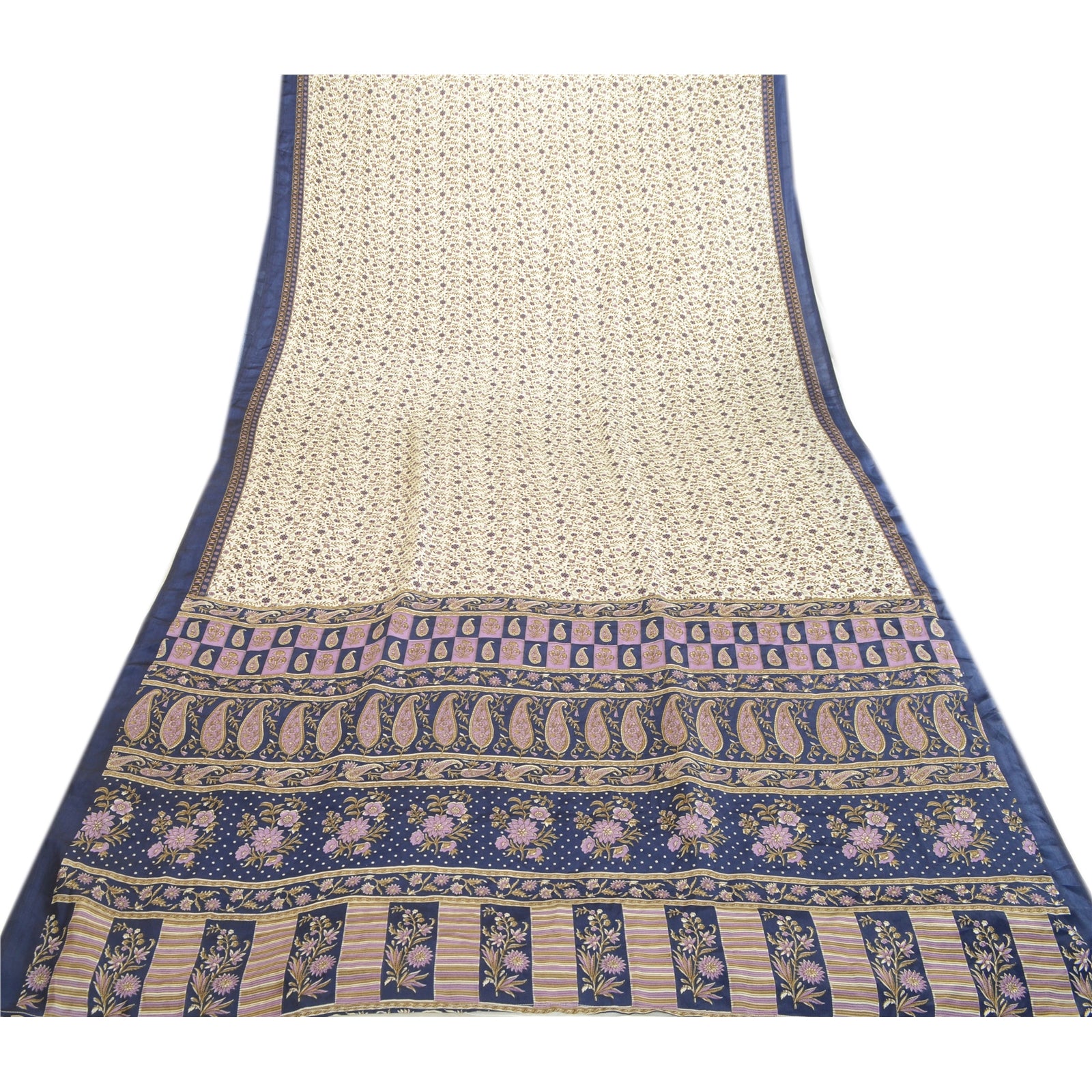 Sanskriti Vintage Sarees From India White Moss Crepe Printed Sari Craft Fabric
