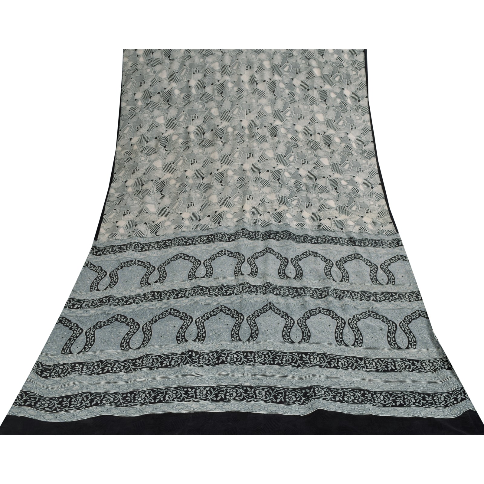THE ITEM COLOR OR SHADE MAY BE DARKER OR LIGHTER THAN THE PICTURE.' • Beautiful gray colored printed pure silk saree . • Pallu & Border has printed floral design. • Geometric design in center part of sari . This unique vintage saree can be used for various crafting ideas even if you don't want to use it as a sari. Design a dress, use it as a as window dressing, upholstery, sarongs, throw, dress making and table linen much more. Let your creative juices flow and use this decorated fabric in multiple fashion. International buyers please note: Import duties, taxes, and charges are not included in the item price or postage cost. These charges are the buyer's responsibility. Please check with your country's customs office to determine what these additional costs will be prior to bidding or buying.Buyer will pay custom duty/tax. It is calculated and charged differently by every country. As a seller I do not have any control over it. VAT or sales tax is calculated by the platform at the time of checkout. Customs charge is payable at the time of delivery. PR-70191
