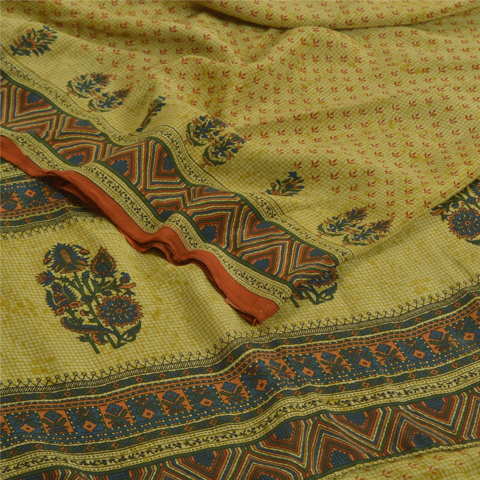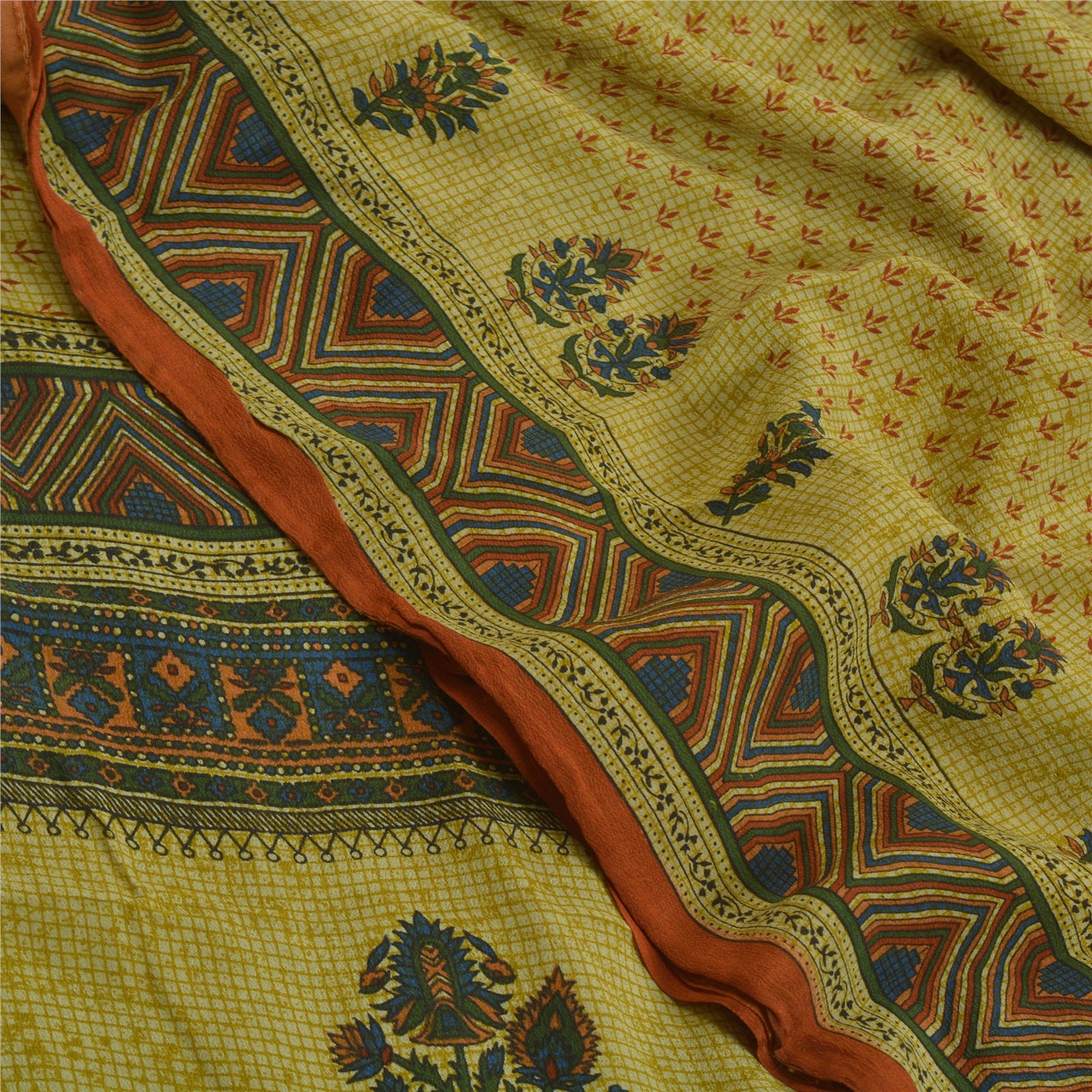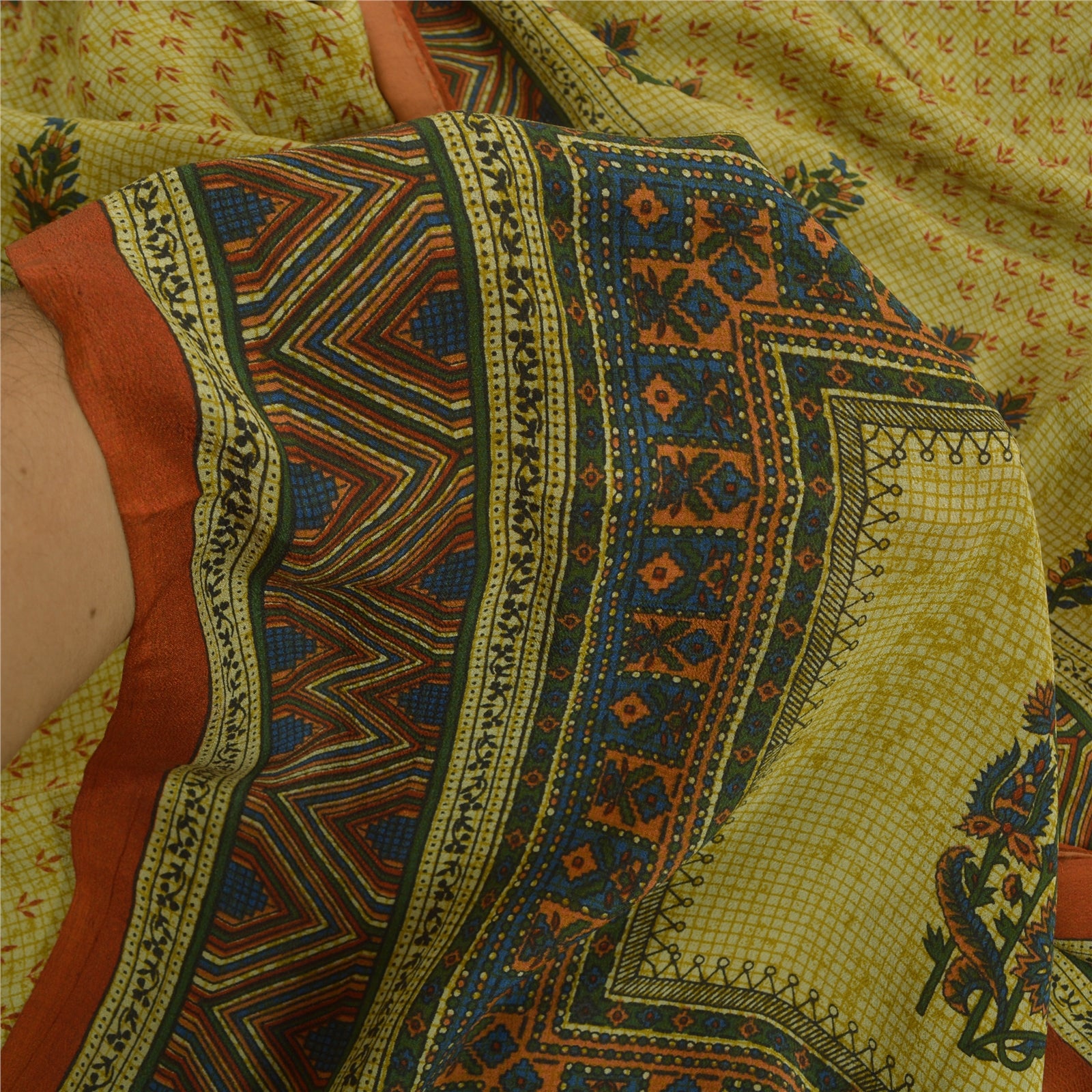 Санскритские винтажные сари зеленое 100% чистый креп шелк напечатанное сари ремесло устойчивая ткань