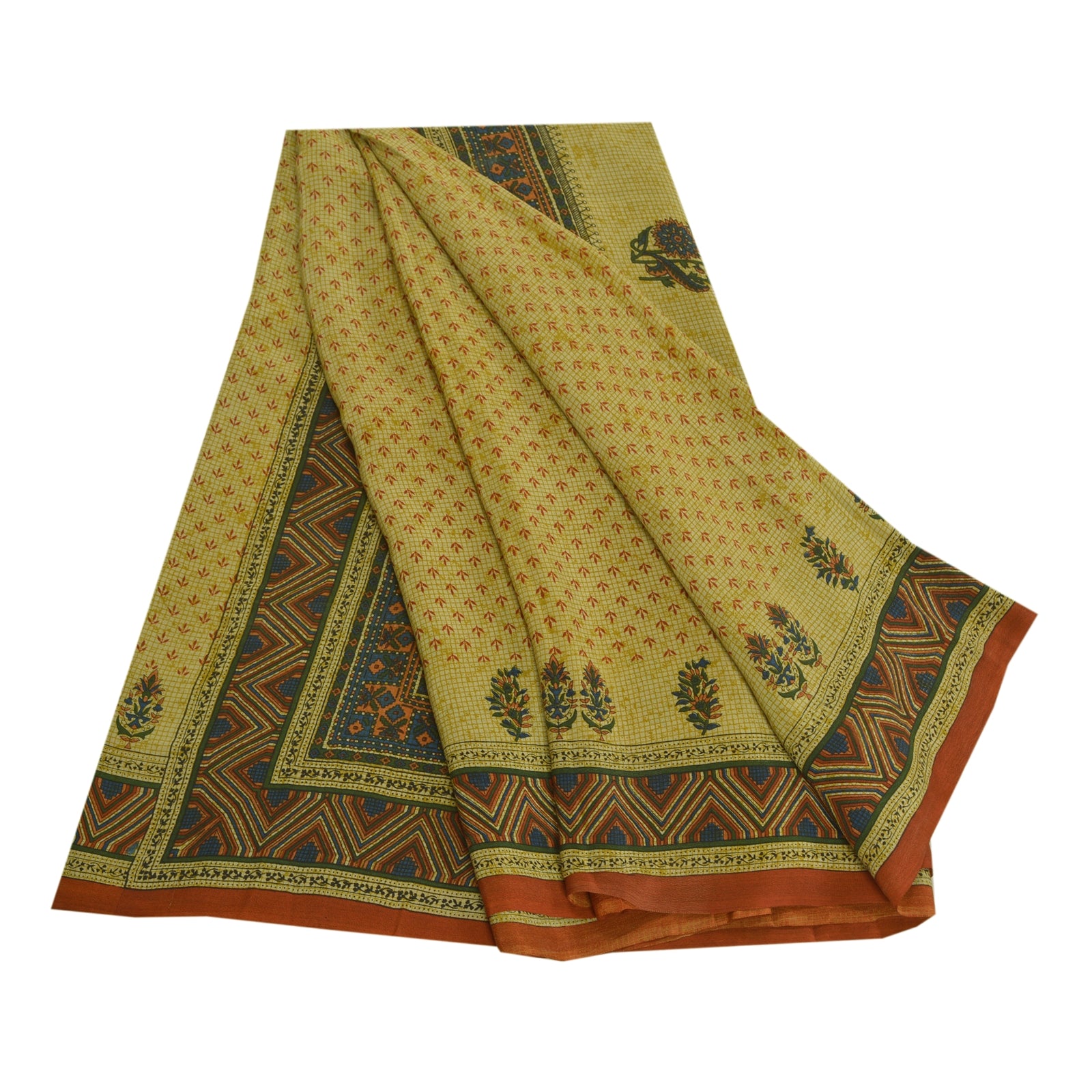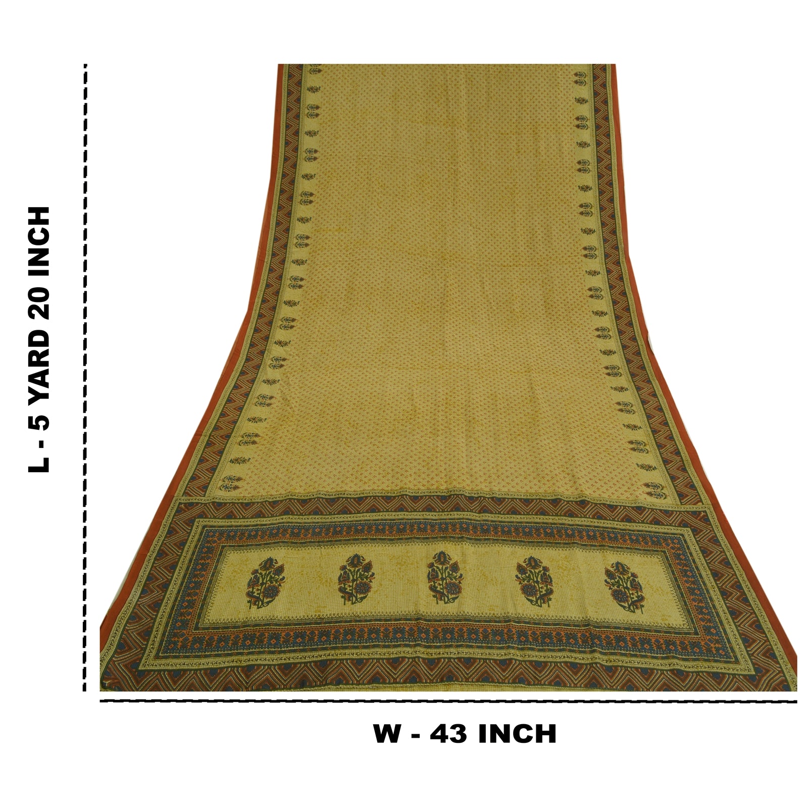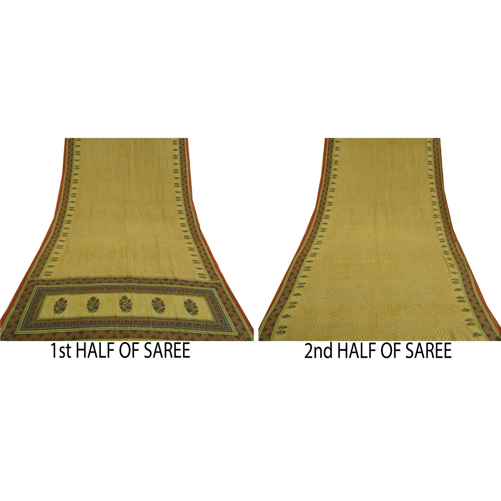 Санскритские винтажные сари зеленое 100% чистый креп шелк напечатанное сари ремесло устойчивая ткань