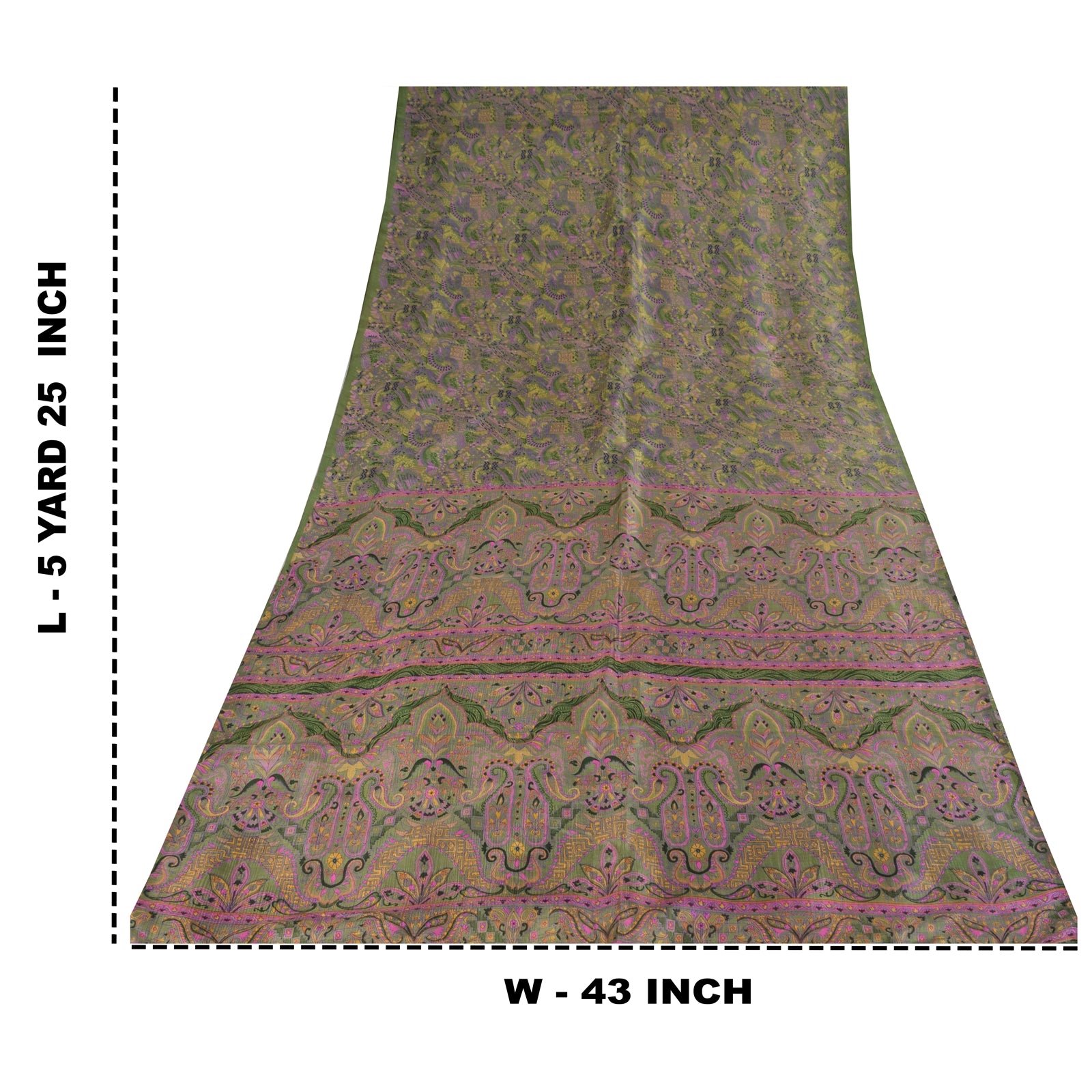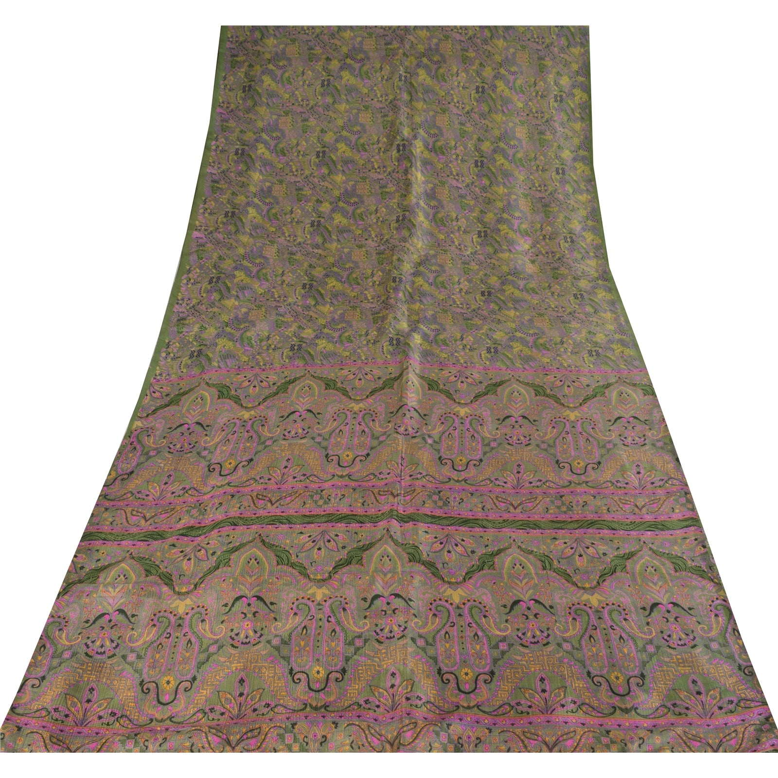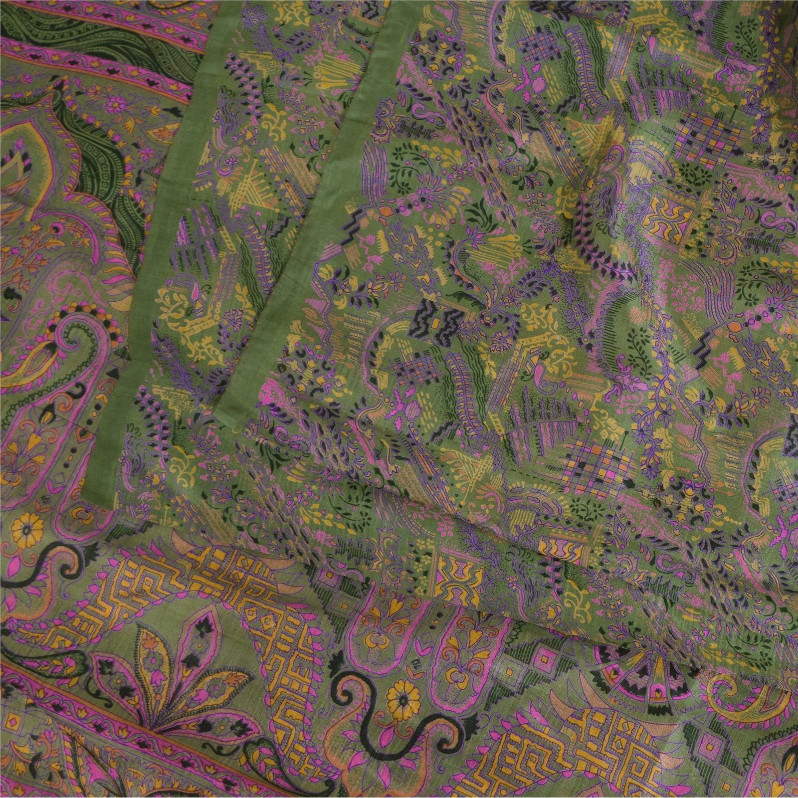 Sanskriti Vintage Sarees Green 100% Pure Silk Printed Sari 5+yd Craft Fabric