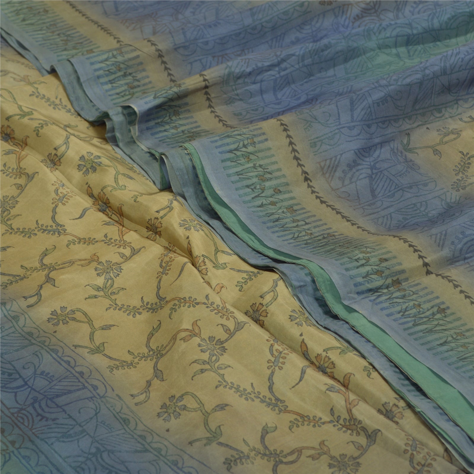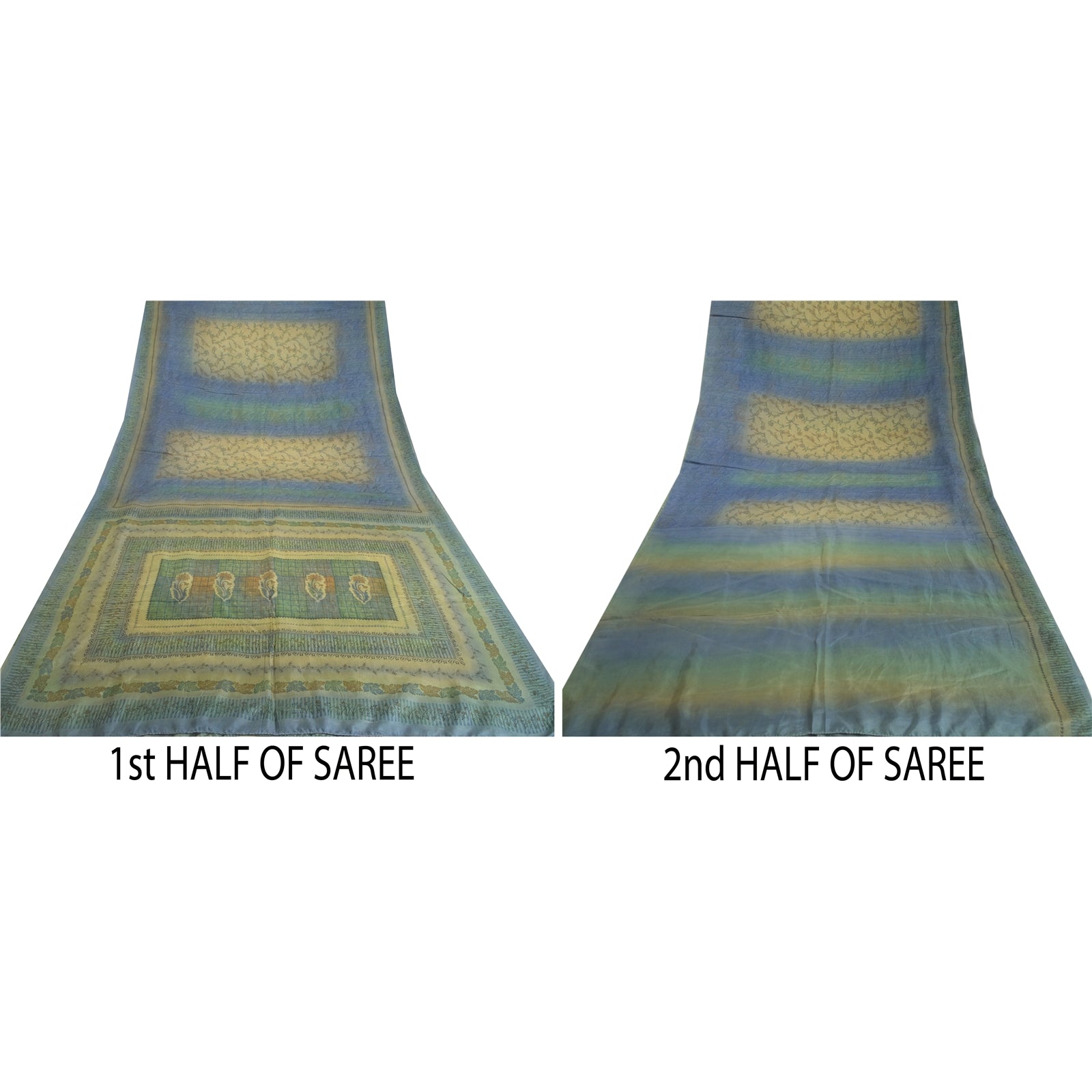 THE ITEM COLOR OR SHADE MAY BE DARKER OR LIGHTER THAN THE PICTURE.' Beautiful green & blue colored pure silk printed saree. Pallu & Border has printed floral design. Floral design in center part of saree. What is special about this saree? Fabulous design is really enhancing the beauty of the saree. This unique vintage saree can be used for various crafting ideas even if you don't want to use it as a sari. Design a dress, use it as window, dressing, upholstery, sarongs, throw, dress making and table linen much more. Let your creative juices flow and use this decorated fabric in multiple fashion. International buyers please note: Import duties, taxes, and charges are not included in the item price or postage cost. These charges are the buyer's responsibility. Please check with your country's customs office to determine what these additional costs will be prior to bidding or buying. Buyer will pay custom duty/tax. It is calculated and charged differently by every country. As a seller I do not have any control over it. VAT or sales tax is calculated by the platform at the time of checkout. Customs charge is payable at the time of delivery.' PR-65836
