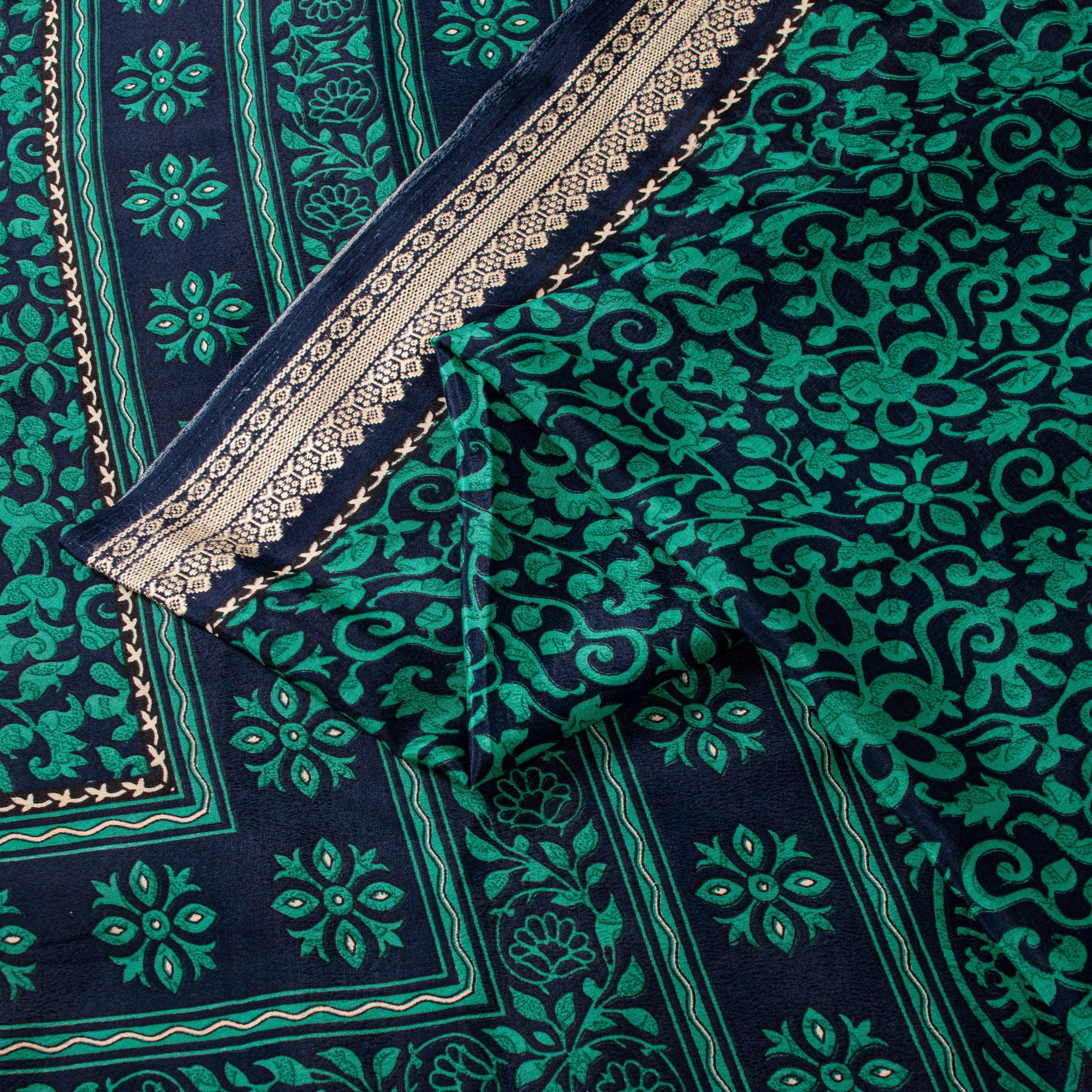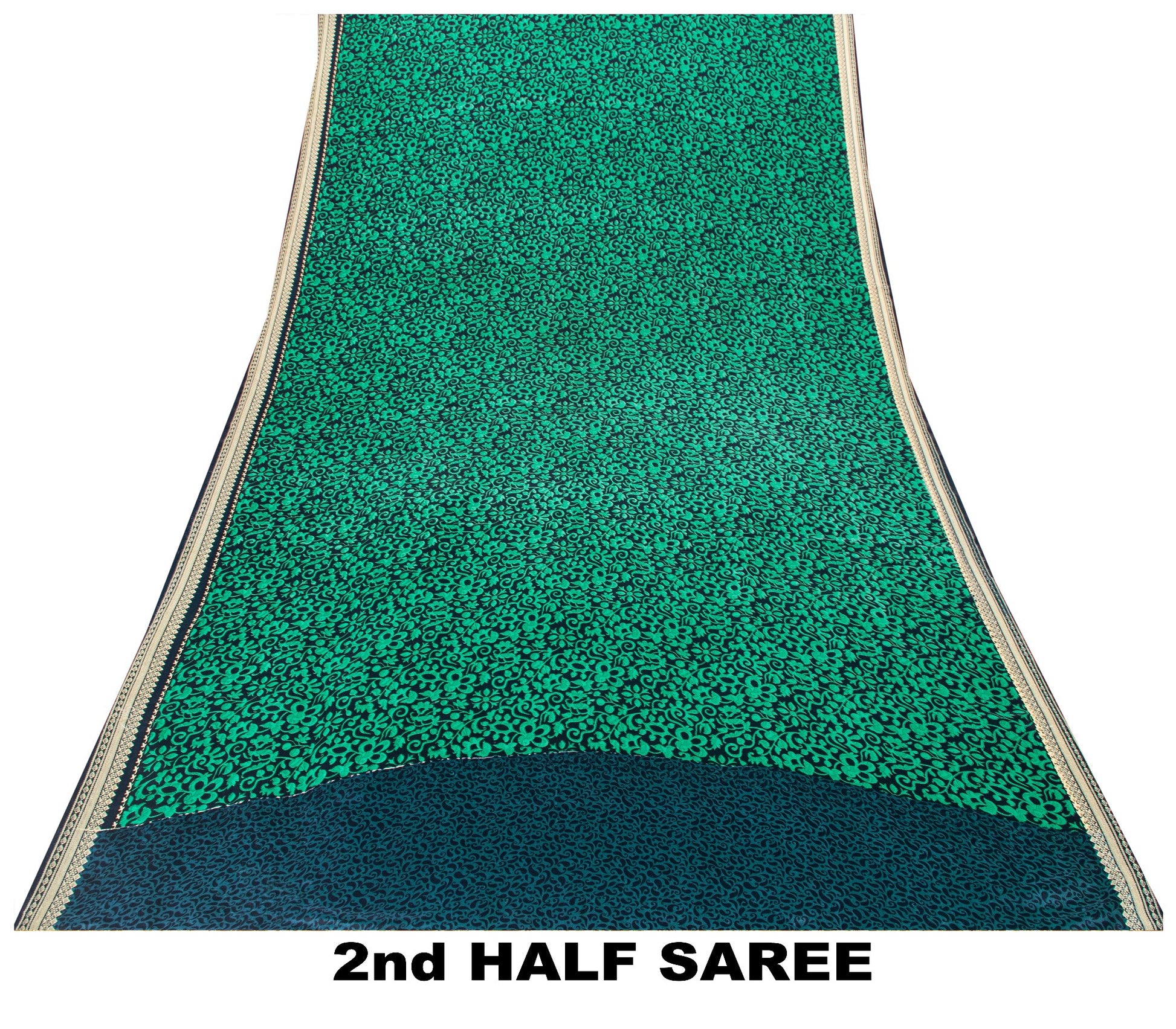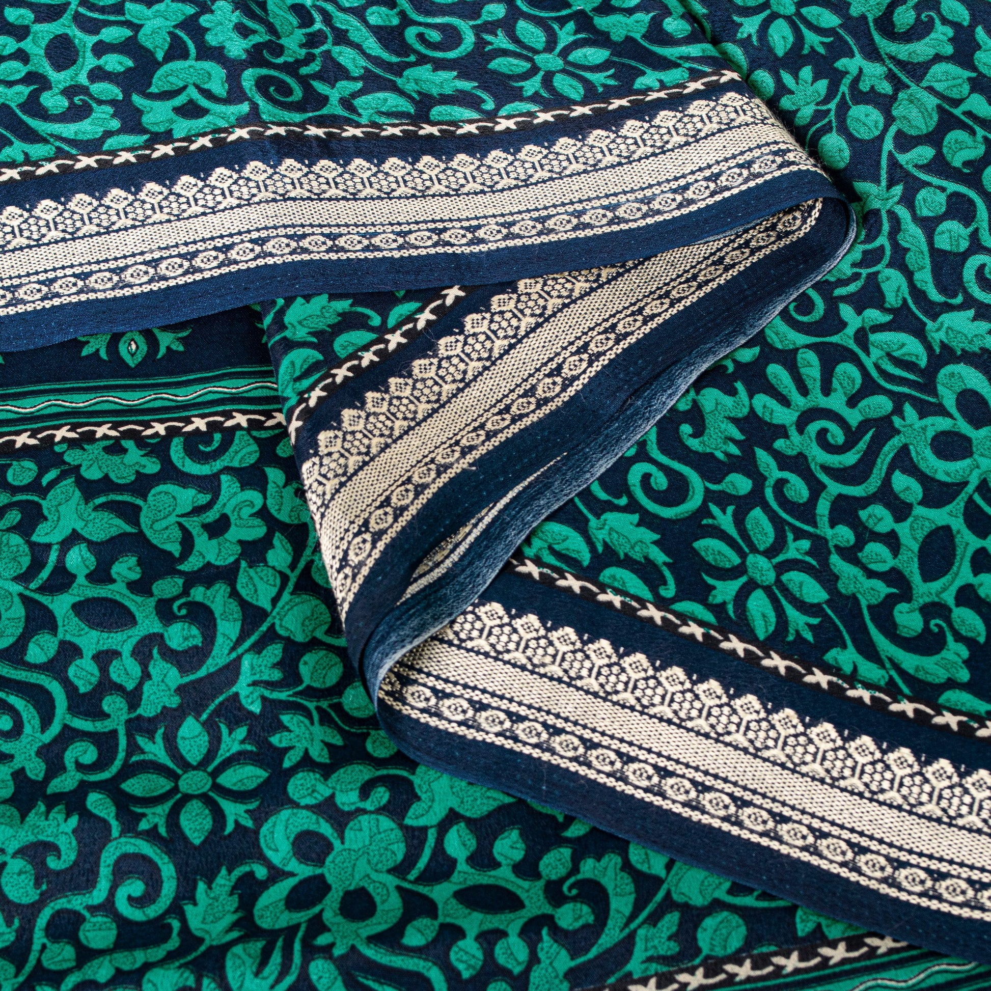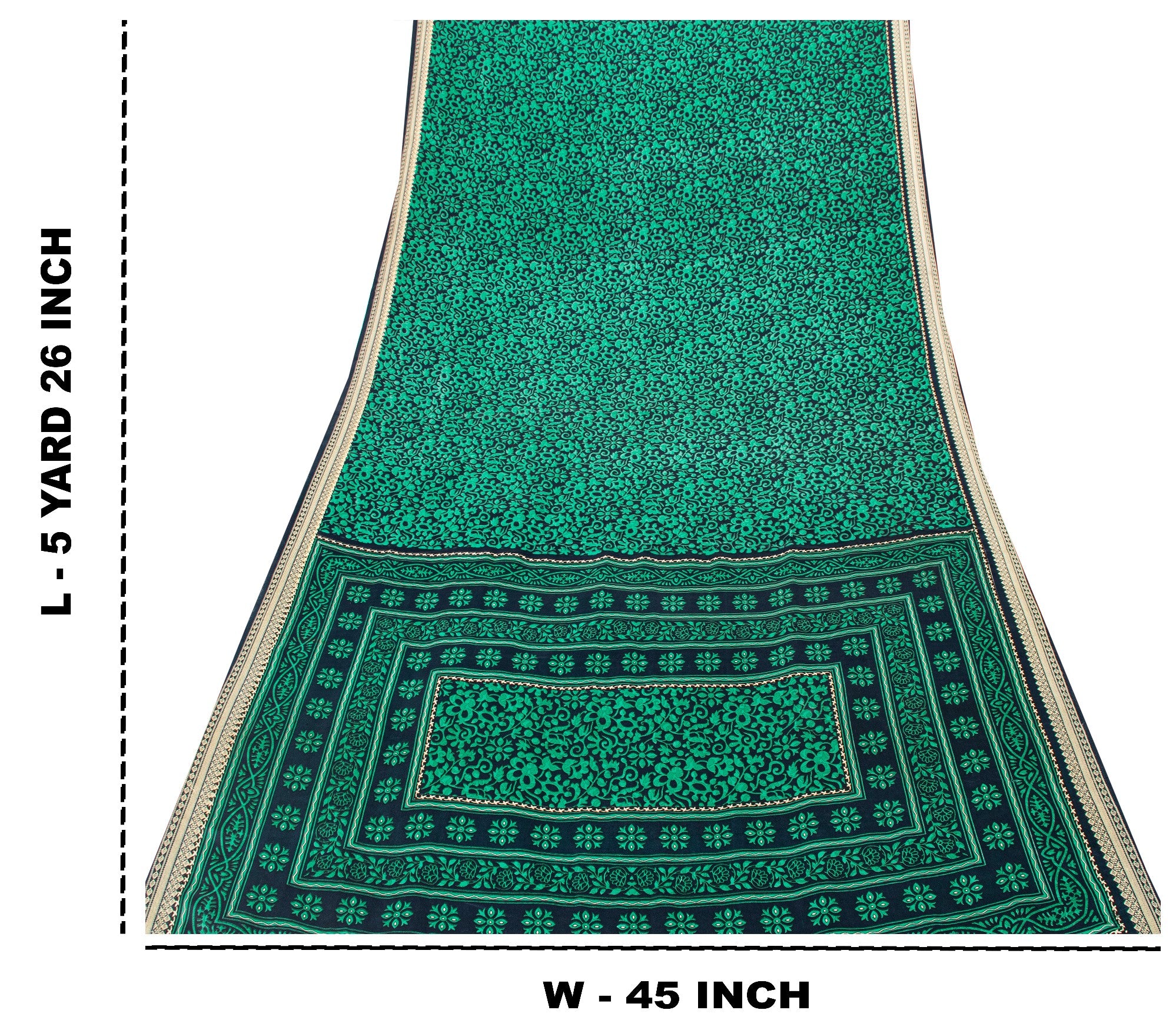 Санскритские винтажные сари из зеленого/синего мохового крепа с принтом сари с цветочным рисунком, устойчивая ткань