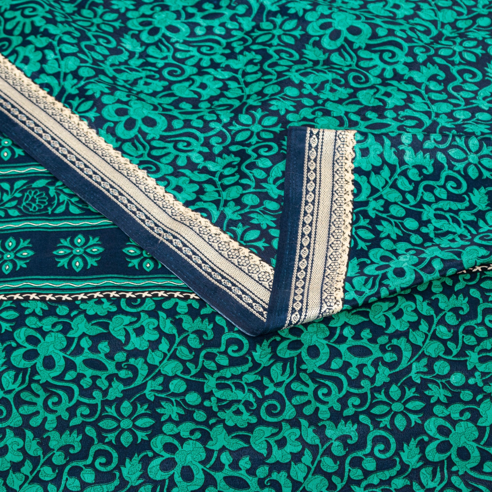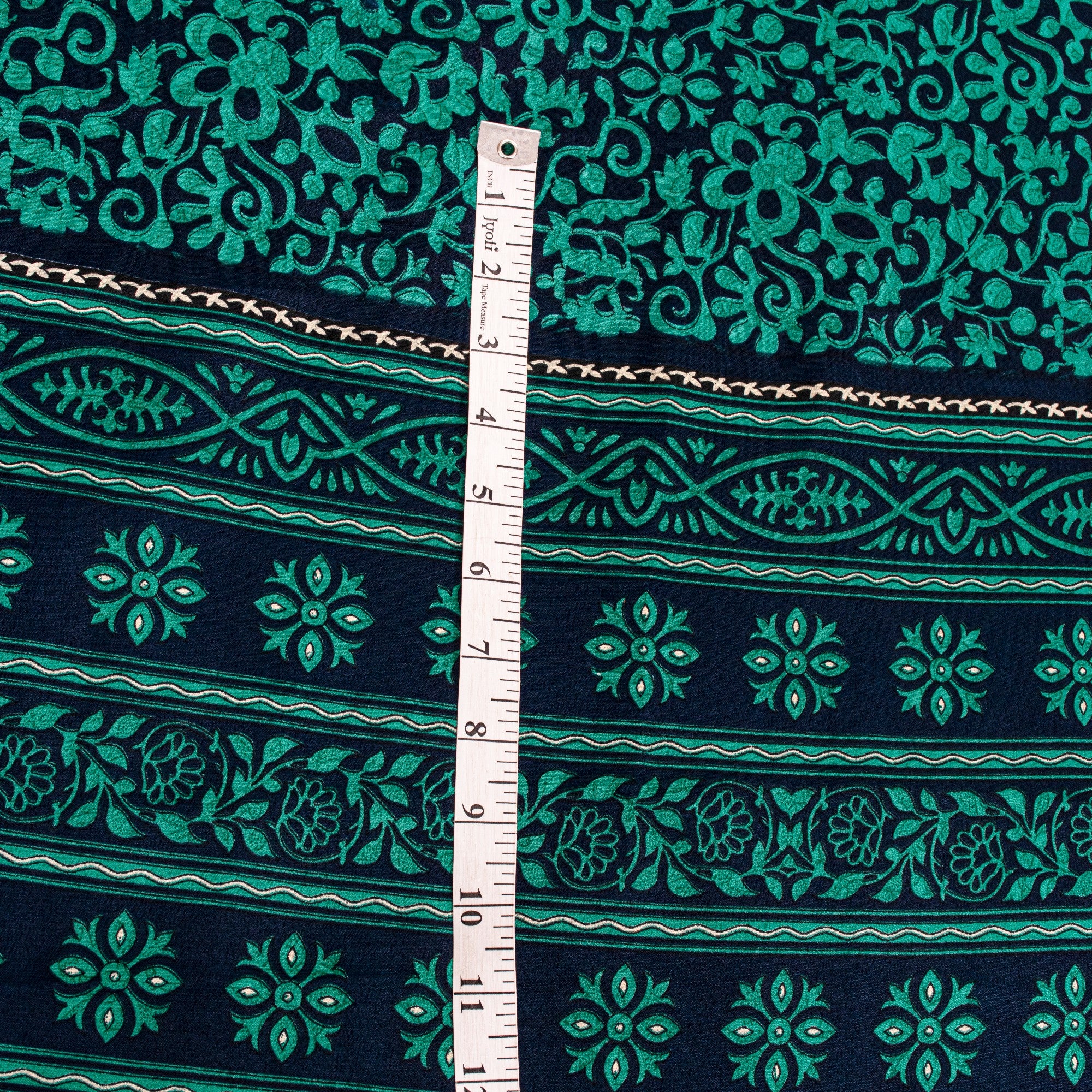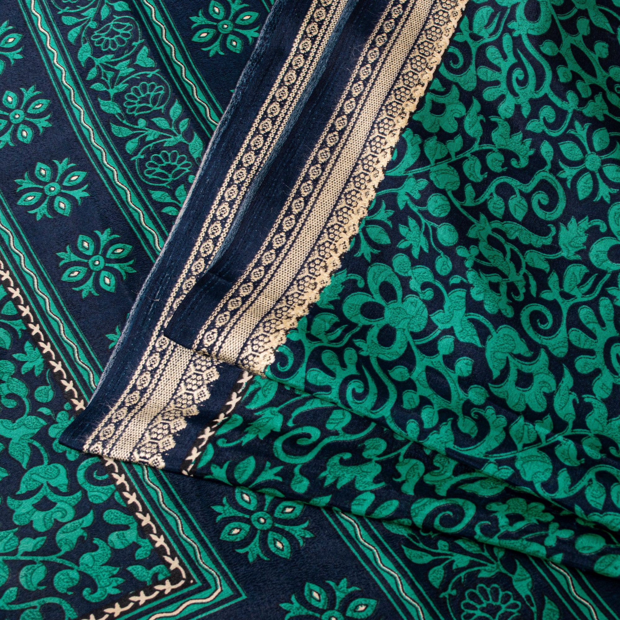 Санскритские винтажные сари из зеленого/синего мохового крепа с принтом сари с цветочным рисунком, устойчивая ткань