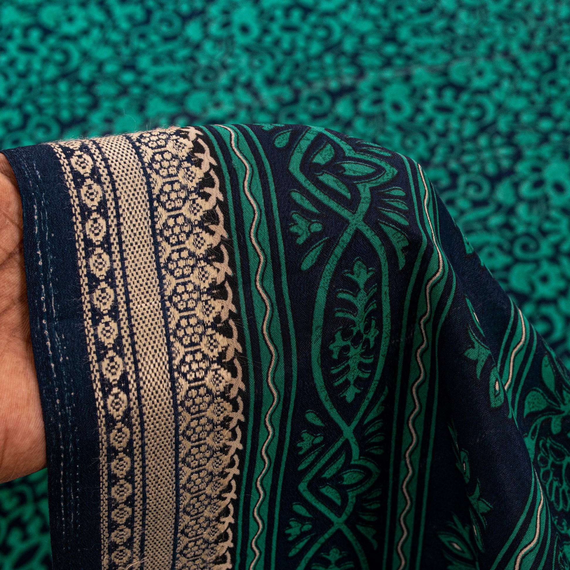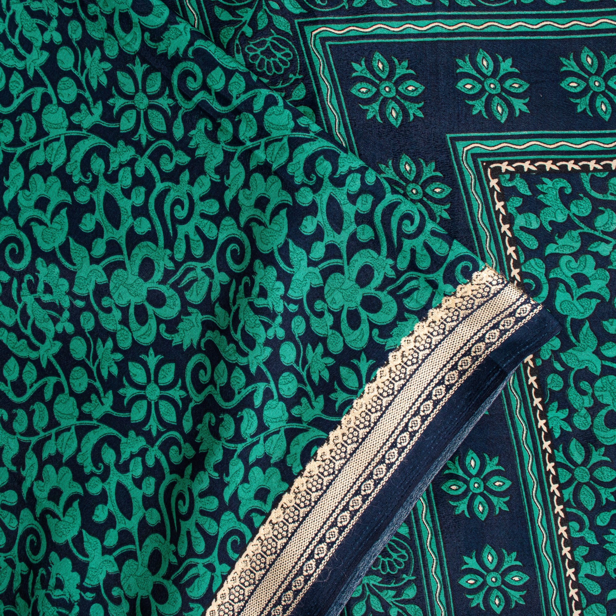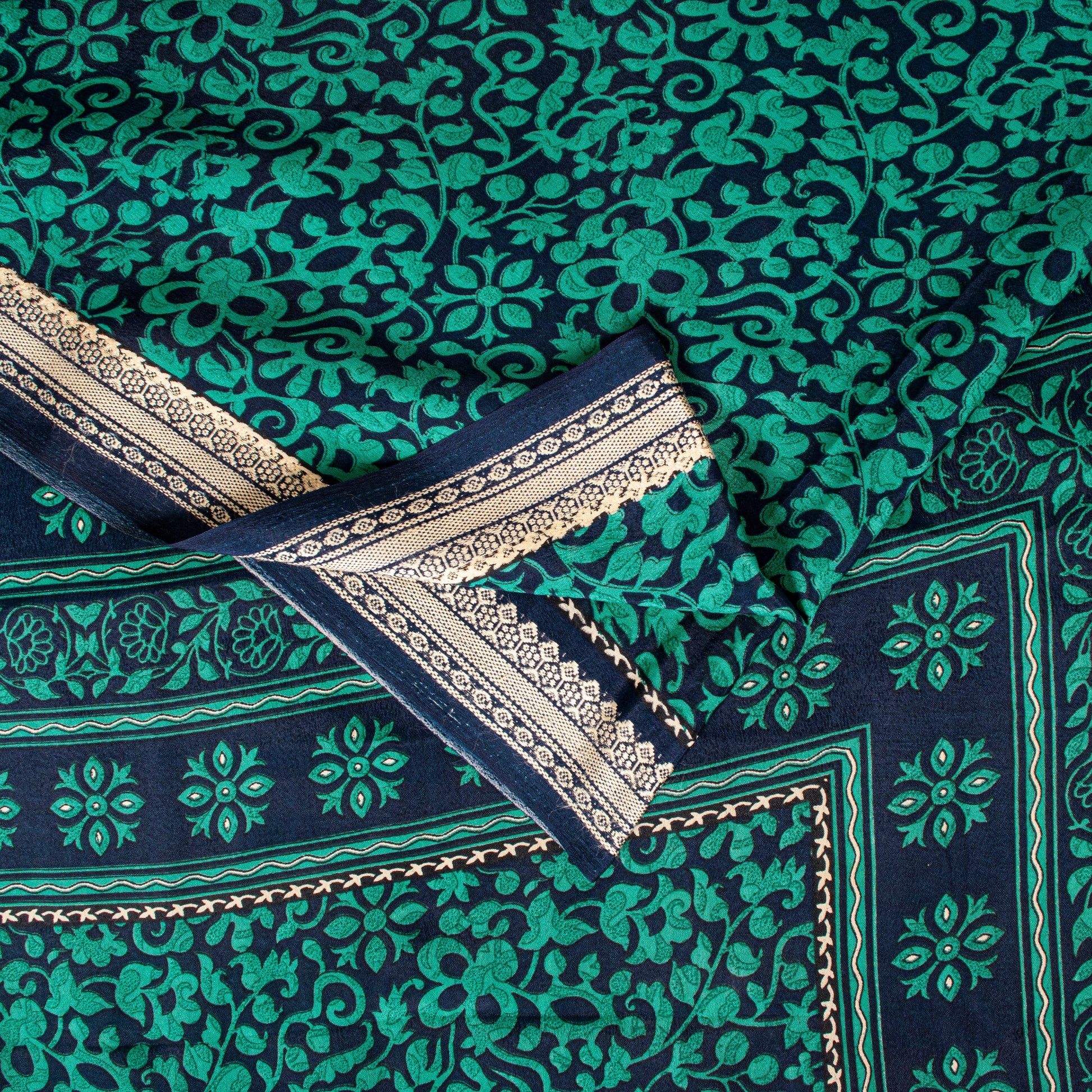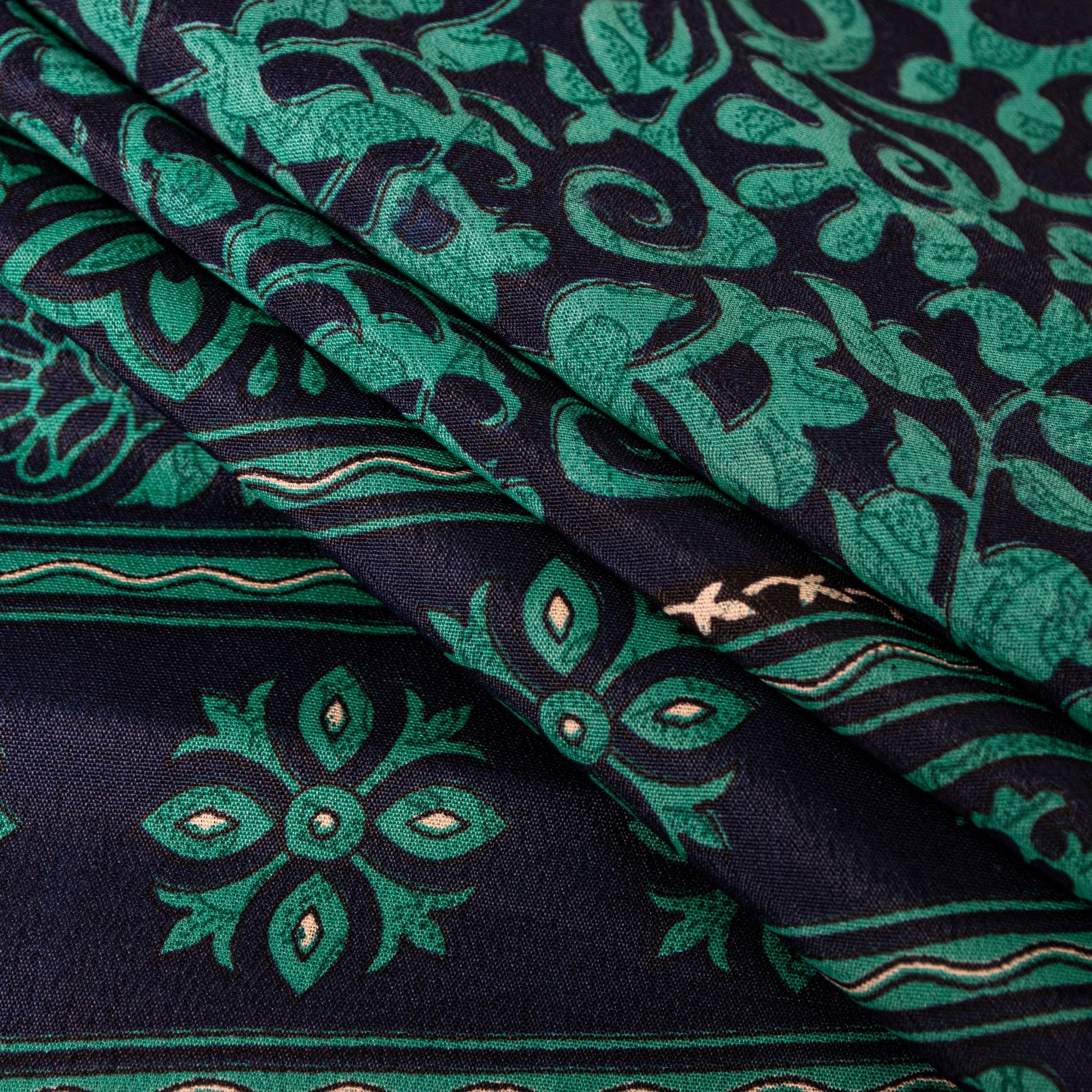 Санскритские винтажные сари из зеленого/синего мохового крепа с принтом сари с цветочным рисунком, устойчивая ткань