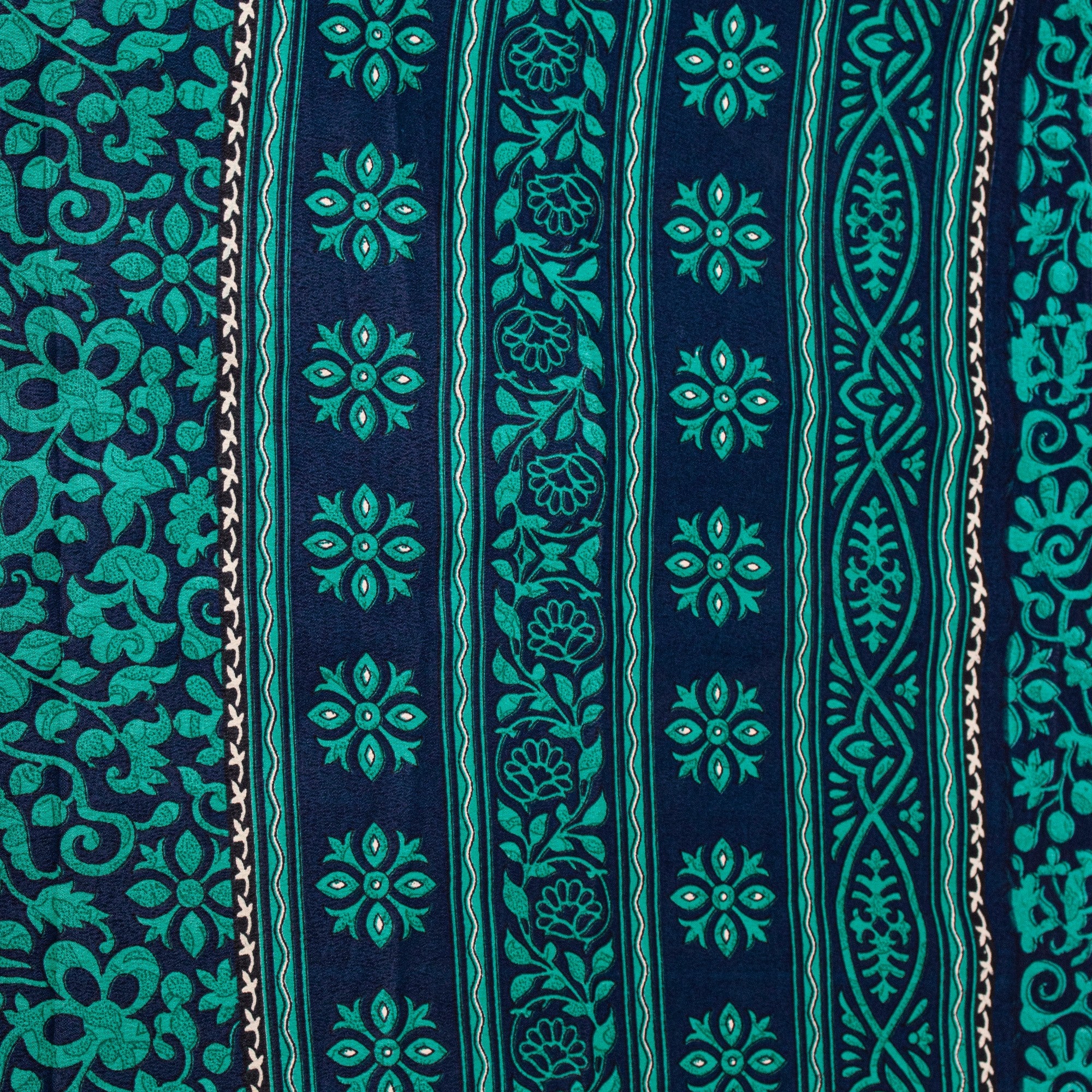 ЦВЕТ ИЛИ ОТТЕНОК ИЗДЕЛИЯ МОГУТ БЫТЬ ТЕМНЕЕ ИЛИ СВЕТЛЕЕ, ЧЕМ НА ИЗОБРАЖЕНИИ. Великолепное сари с принтом из крепа-моха зеленого и синего цветов. Паллу и кайма имеют напечатанный цветочный узор и тканую работу. Похожий дизайн в центральной части сари. Креп-мох - это сари из полиэстера, но на ощупь оно похоже на креп-шелк. Что особенного в этом сари? Очень мягкая и гладкая устойчивая ткань из креп-мох с привлекательным красочным рисунком - красота сари. Это уникальное винтажное сари можно использовать для различных идей по рукоделию, даже если вы не хотите использовать его как сари. Спроектируйте платье, используйте его как покрывало, как украшение для окон, обивку, саронги, столовое белье и многое другое. Дайте волю своим творческим сокам и используйте эту декорированную устойчивую ткань в различных модах. Обратите внимание, что международные покупатели: импортные пошлины, налоги и сборы не включены в цену товара или стоимость почтовых расходов. Эти расходы несет покупатель. Пожалуйста, свяжитесь с таможней вашей страны, чтобы определить, какими будут эти дополнительные расходы, до торгов или покупки. Покупатель будет платить таможенную пошлину/налог. Она рассчитывается и взимается по-разному в каждой стране. Как продавец, я не имею никакого контроля над ней. НДС или налог с продаж рассчитывается платформой во время оформления заказа. Таможенный сбор подлежит уплате во время доставки.