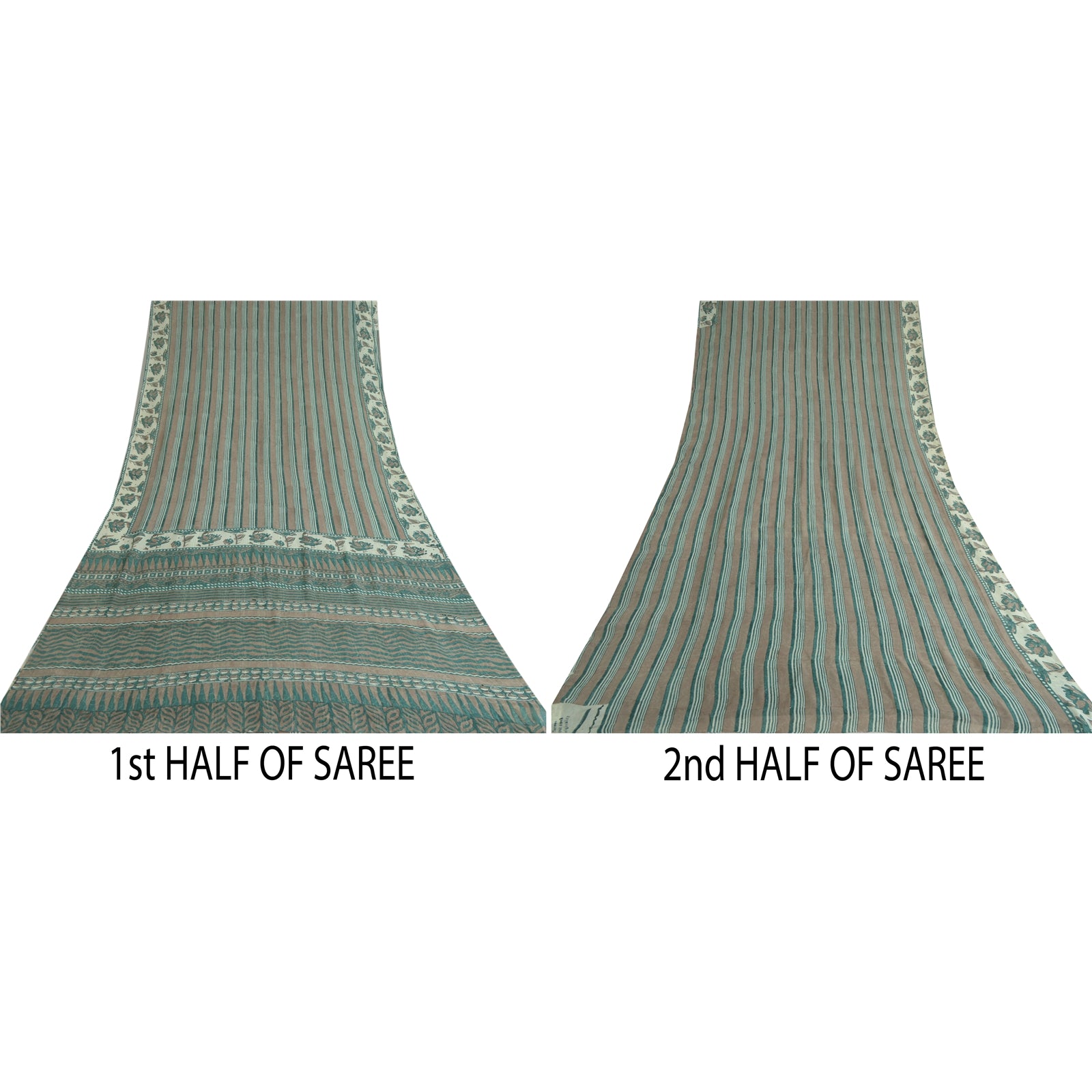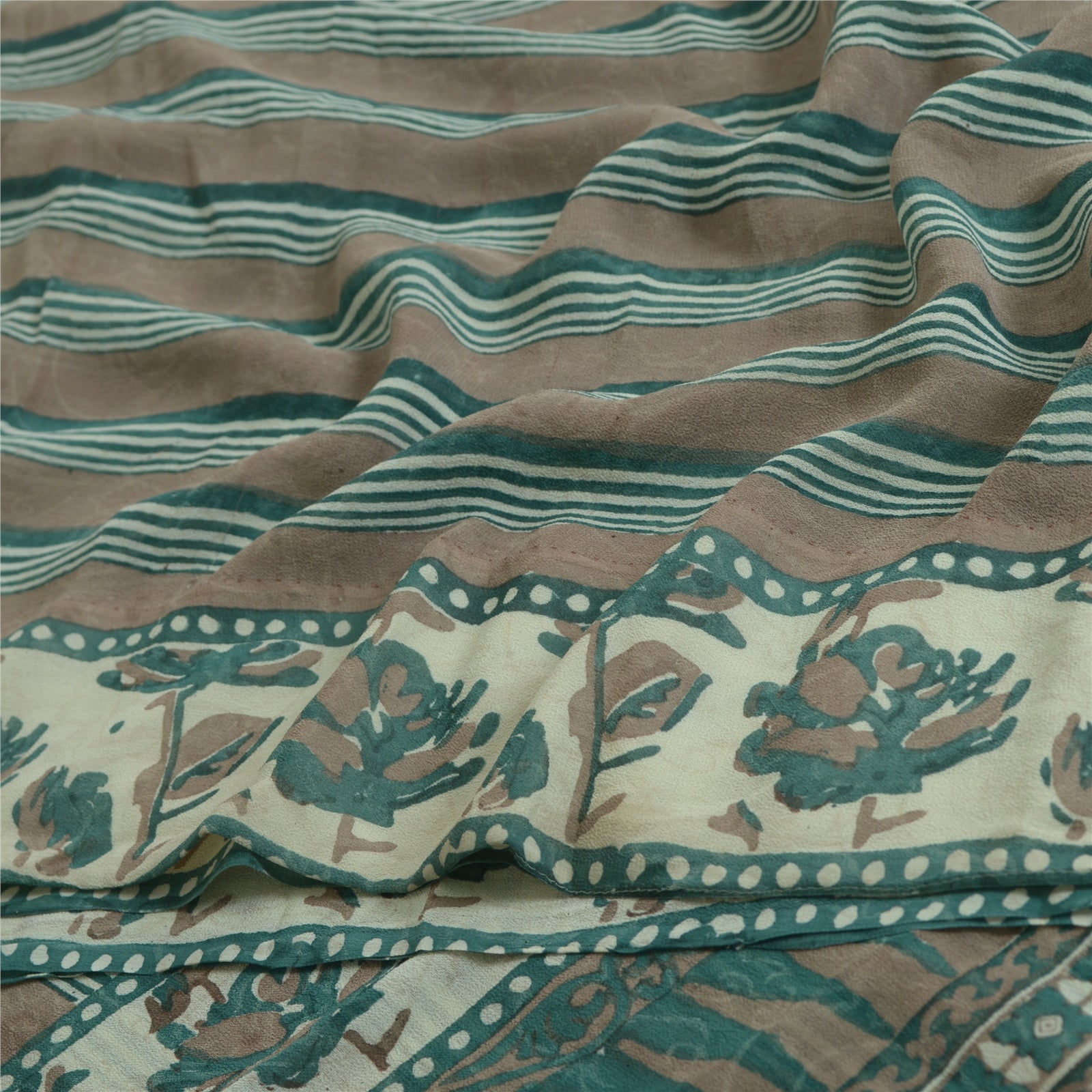THE ITEM COLOR OR SHADE MAY BE DARKER OR LIGHTER THAN THE PICTURE.' Beautiful green & light-brown colored pure georgette silk hand block printed saree. Pallu & border has printed floral design. Lines design in center part of saree. Saree has mild stain on it. What is special about this saree? Brilliant design on soft fabric is really enhancing the beauty of the saree. This unique vintage saree can be used for various crafting ideas even if you don't want to use it as a sari. Design a dress, use it as a as window dressing, upholstery, sarongs, throw, dress making and table linen much more. Let your creative juices flow and use this decorated fabric in multiple fashion. International buyers please note: Import duties, taxes, and charges are not included in the item price or postage cost. These charges are the buyer's responsibility. Please check with your country's customs office to determine what these additional costs will be prior to bidding or buying.Buyer will pay custom duty/tax. It is calculated and charged differently by every country. As a seller I do not have any control over it. VAT or sales tax is calculated by the platform at the time of checkout. Customs charge is payable at the time of delivery.