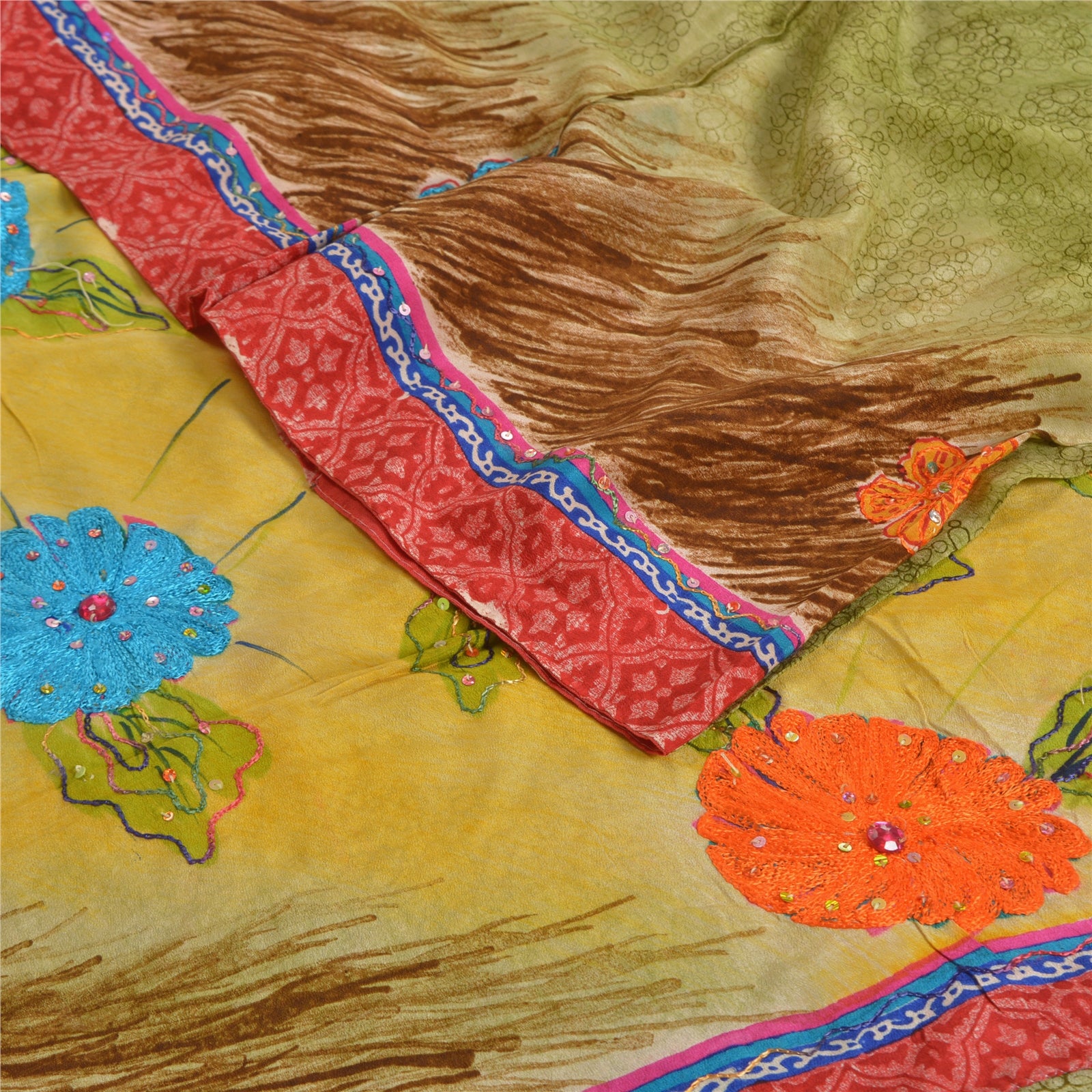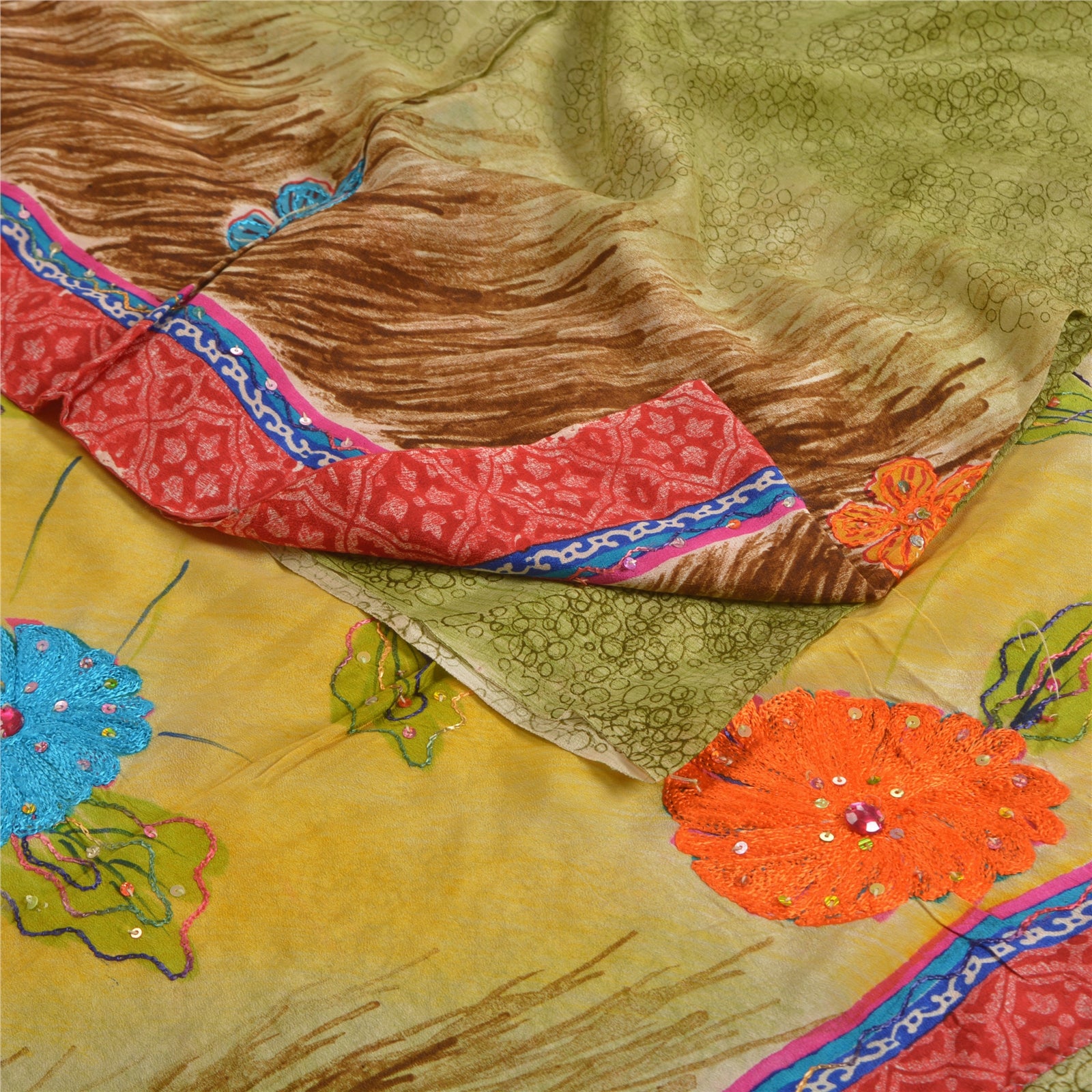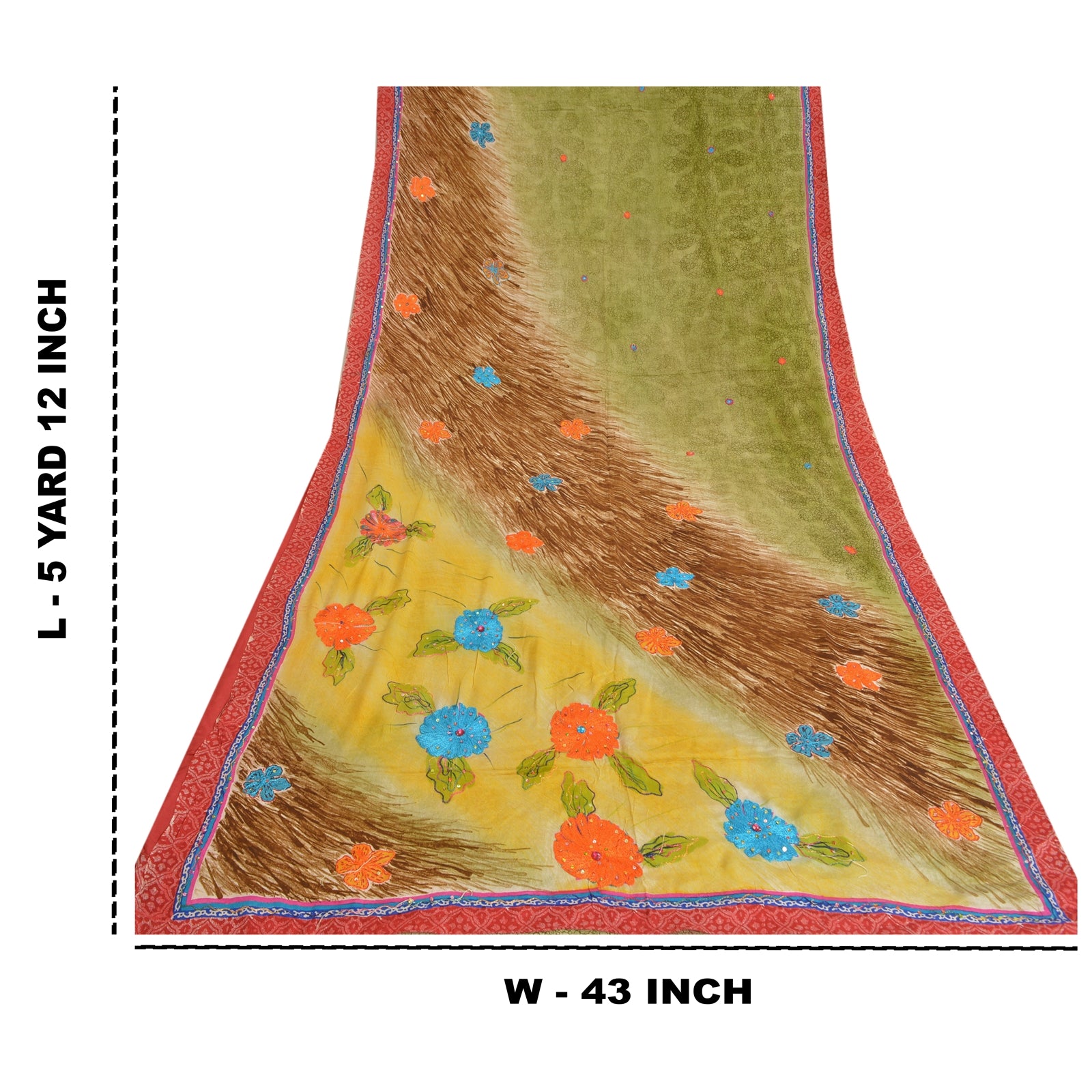 Сари в винтажном стиле на санскрите, зеленое с ручным принтом бисера, чистое креповое шелковое сари, ткань для рукоделия, устойчивая к истиранию