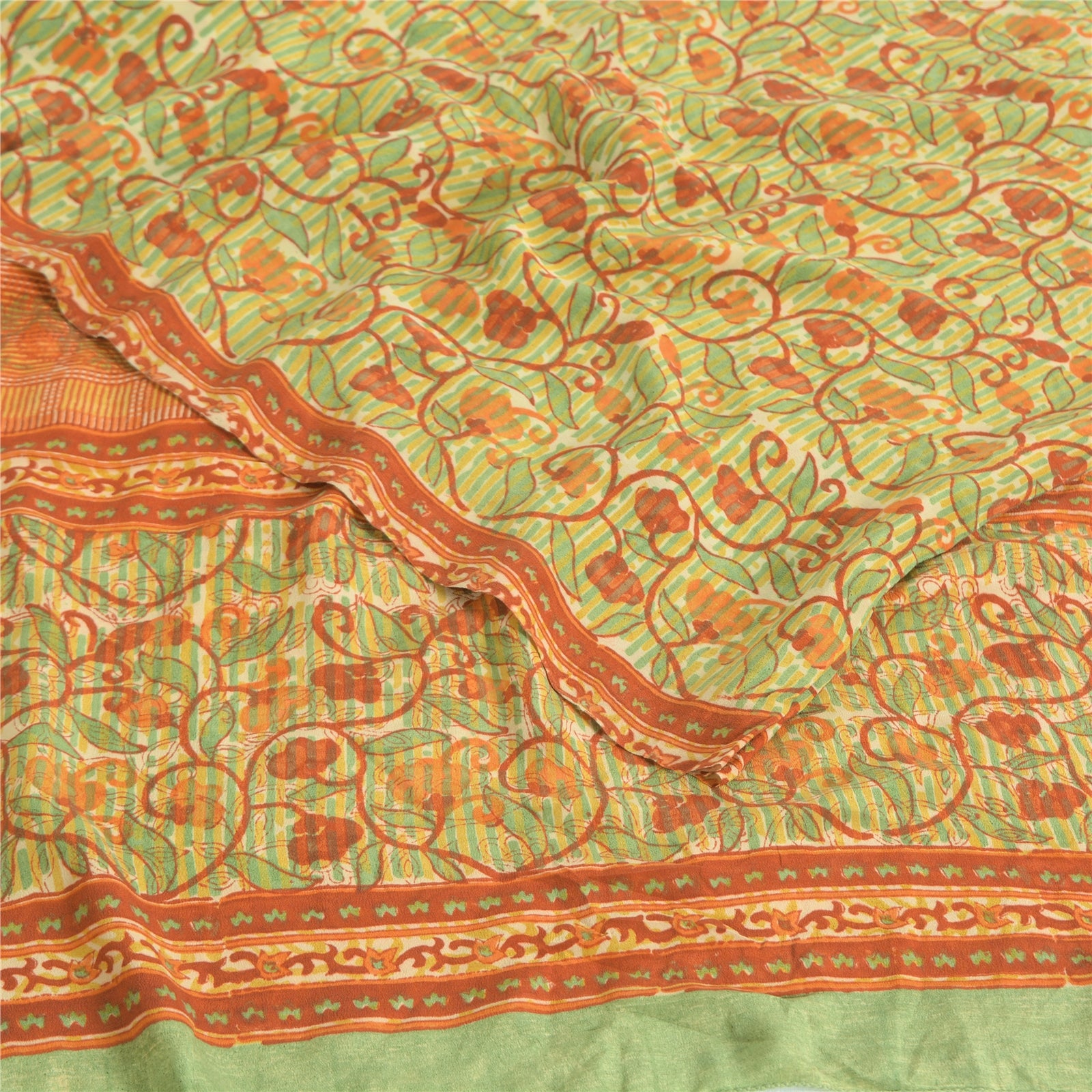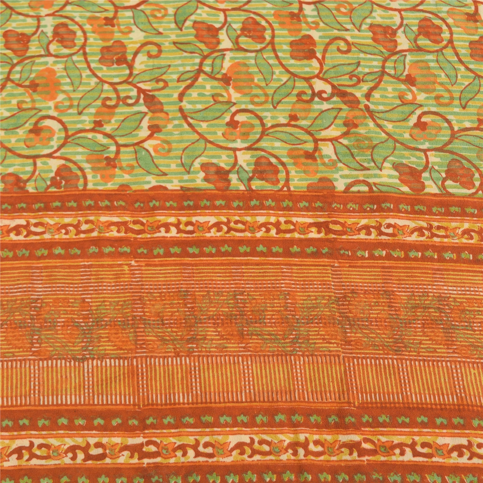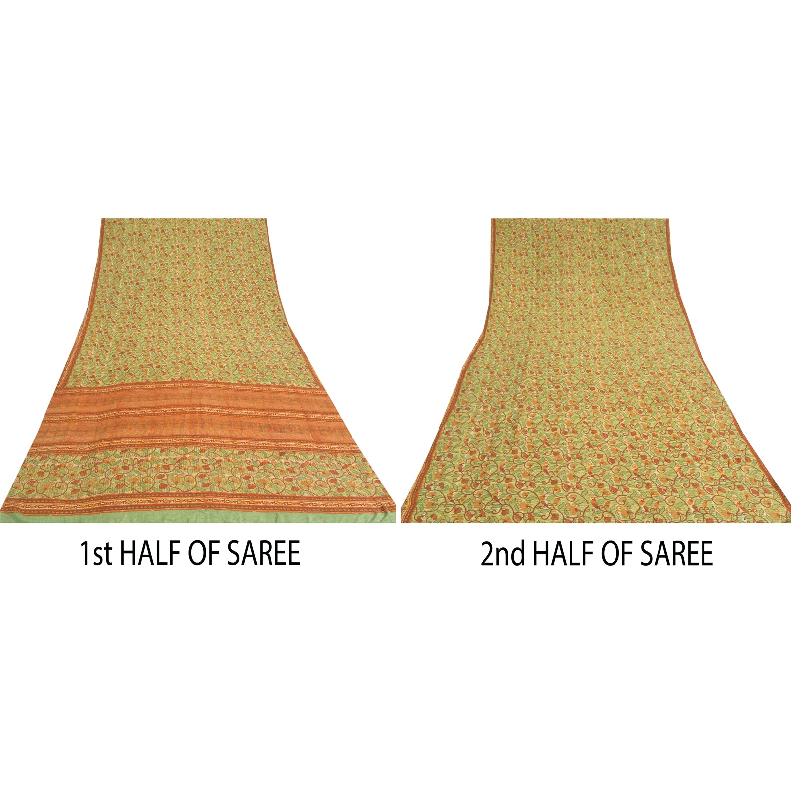 Сари Sanskriti Vintage, зеленое/оранжевое, чистый креп, напечатанное сари, 5 ярдов, ткань для рукоделия, устойчивая к истиранию