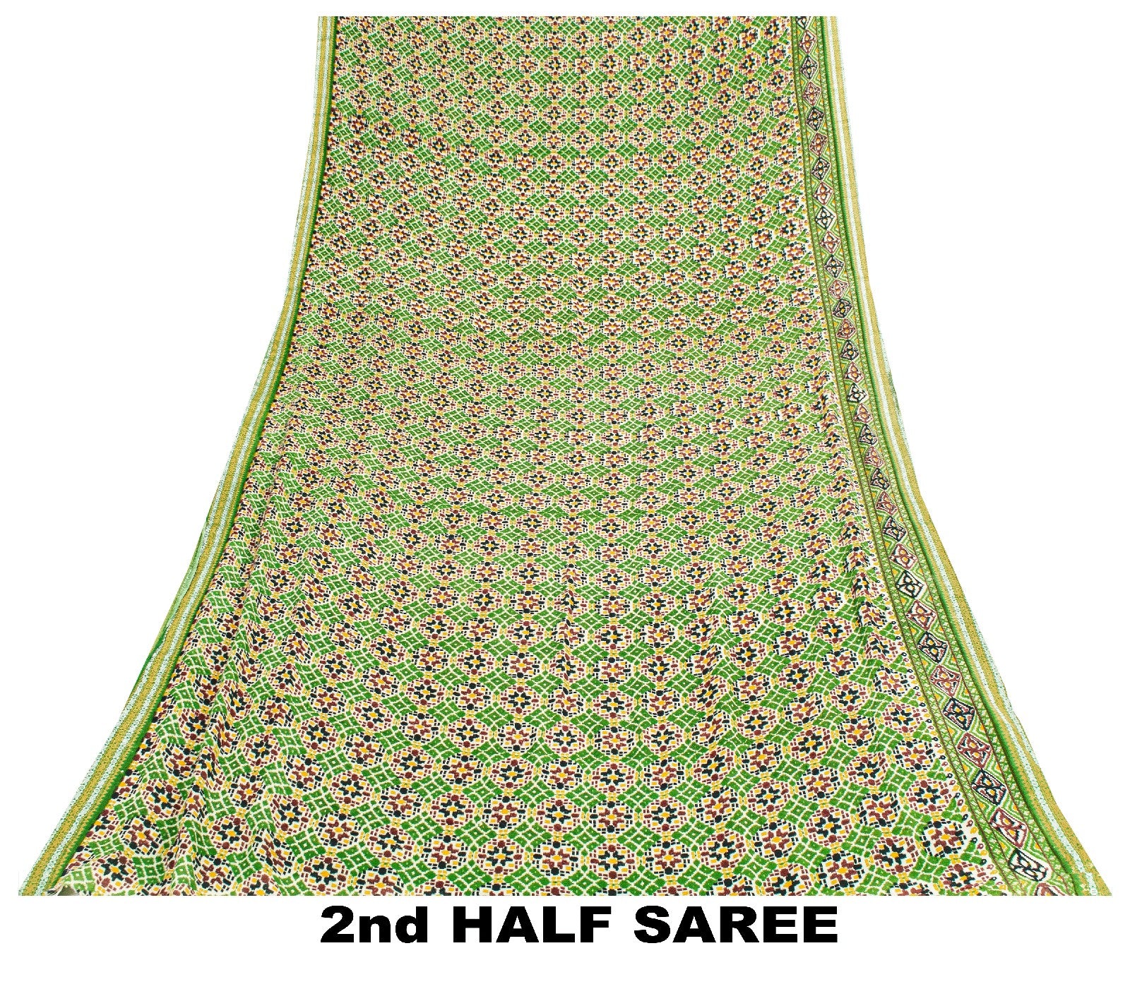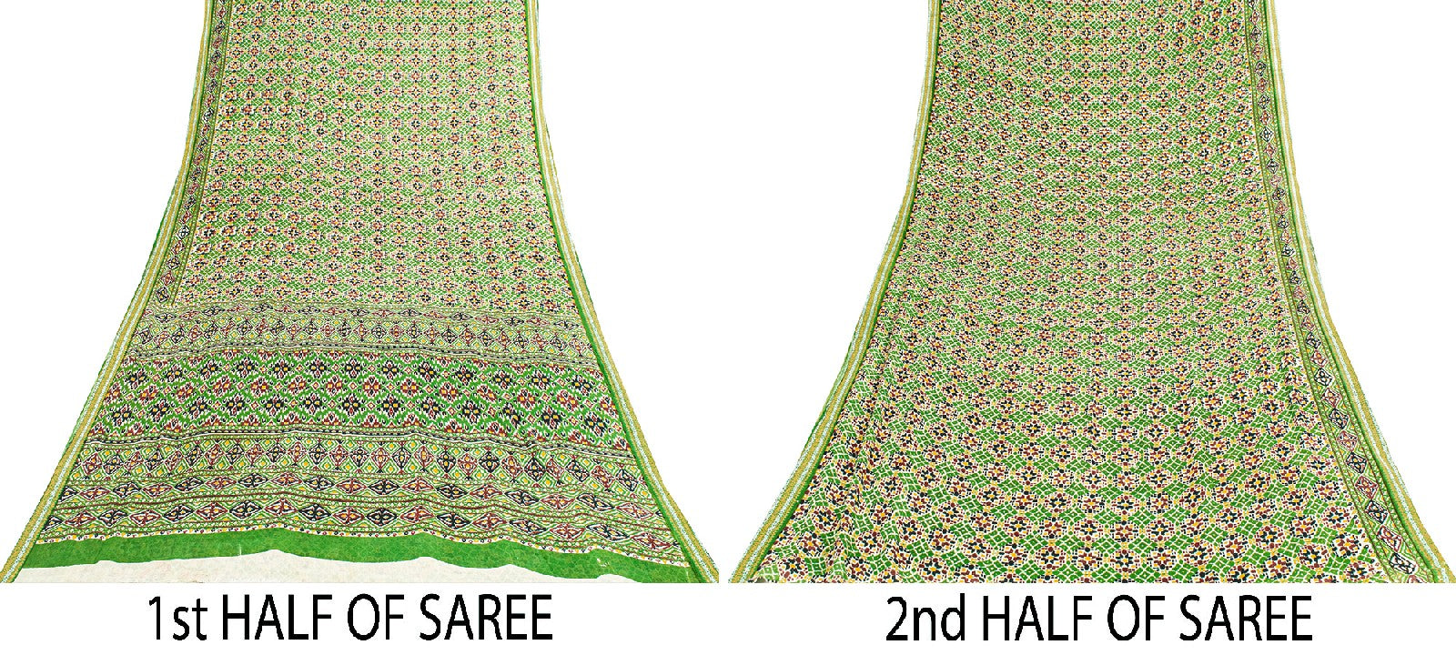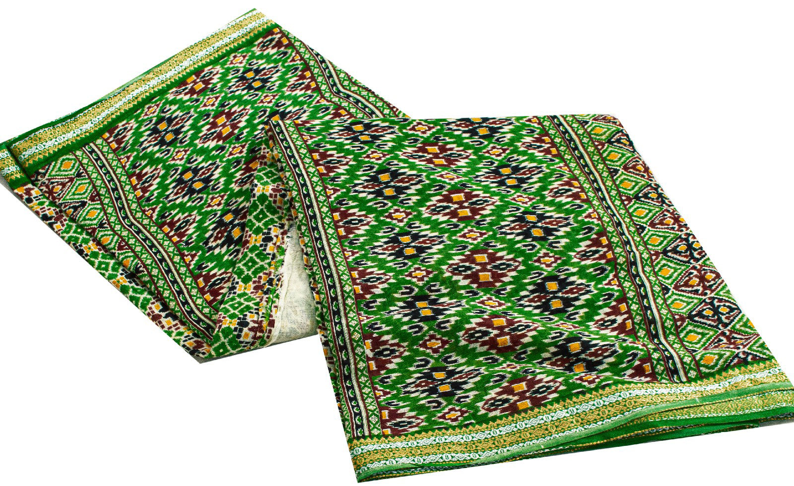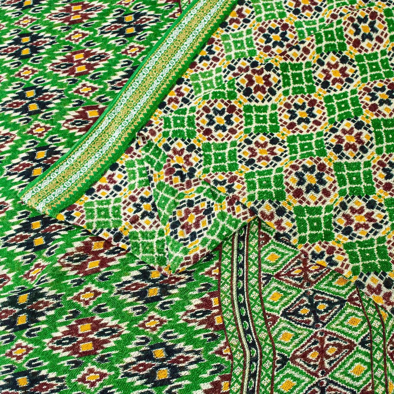 Rare to Find green colored pure cotton patan patola ikat printed saree with geometric design on pallu, border, & center part. Versatile Uses-Crafting, Repurpose, Breathable fabric, Creative Sewing Project, Dressmaking, Kaftans, Use It As A Sari, Window Dressing, Upcycling, Sarongs, Throw,Table Linen,Decorative Fabric, Sustainable Indian Fabric. THE ITEM COLOR OR SHADE MAY BE DARKER OR LIGHTER THAN THE PICTURE.' International buyers please note: Import duties, taxes, and charges are not included in the item price or postage cost. Buyer will pay custom duty/tax,VAT, and any applicable charges at the time of delivery. PCS-7564