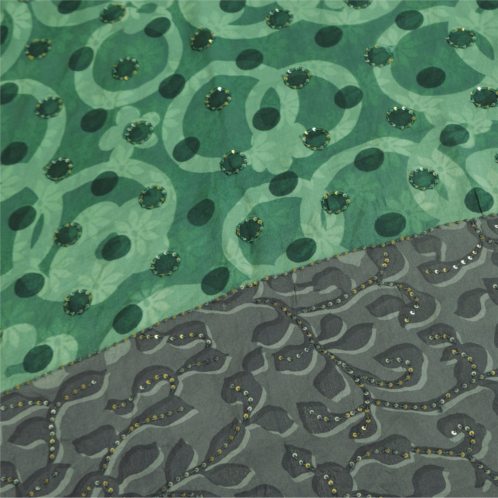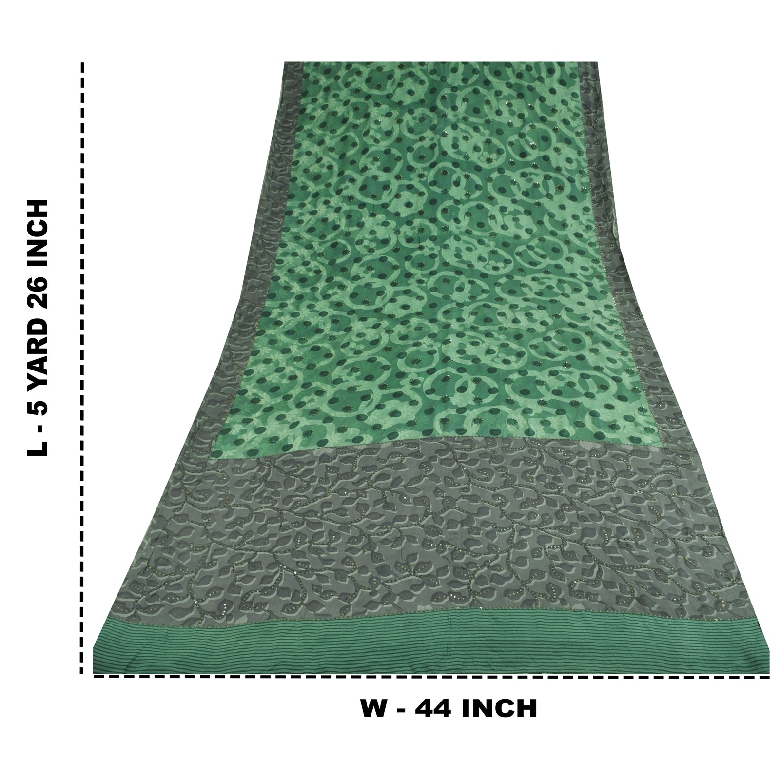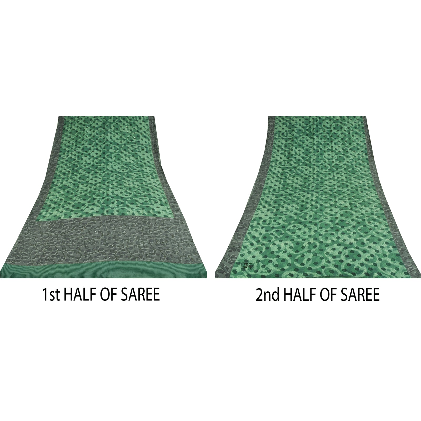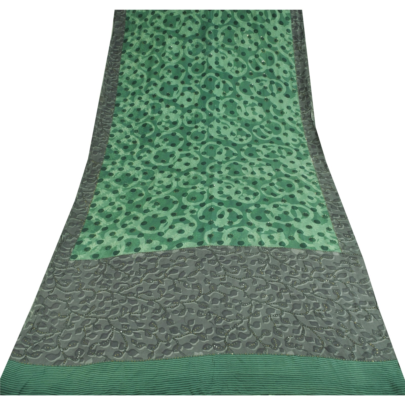 Сари Sanskriti Vintage, зеленое чистое креповое сари с вышивкой, 5+ ярдов, устойчивая ткань
