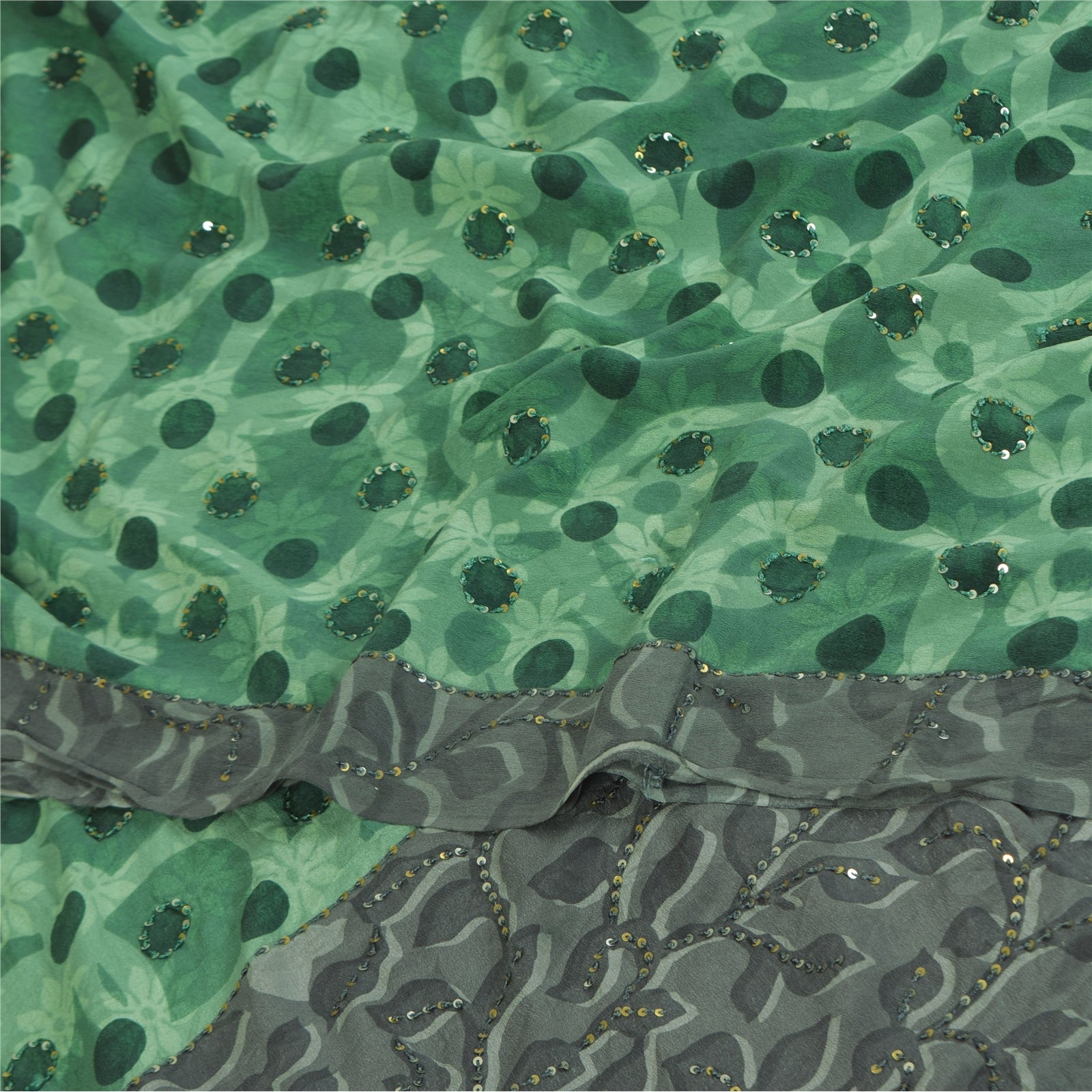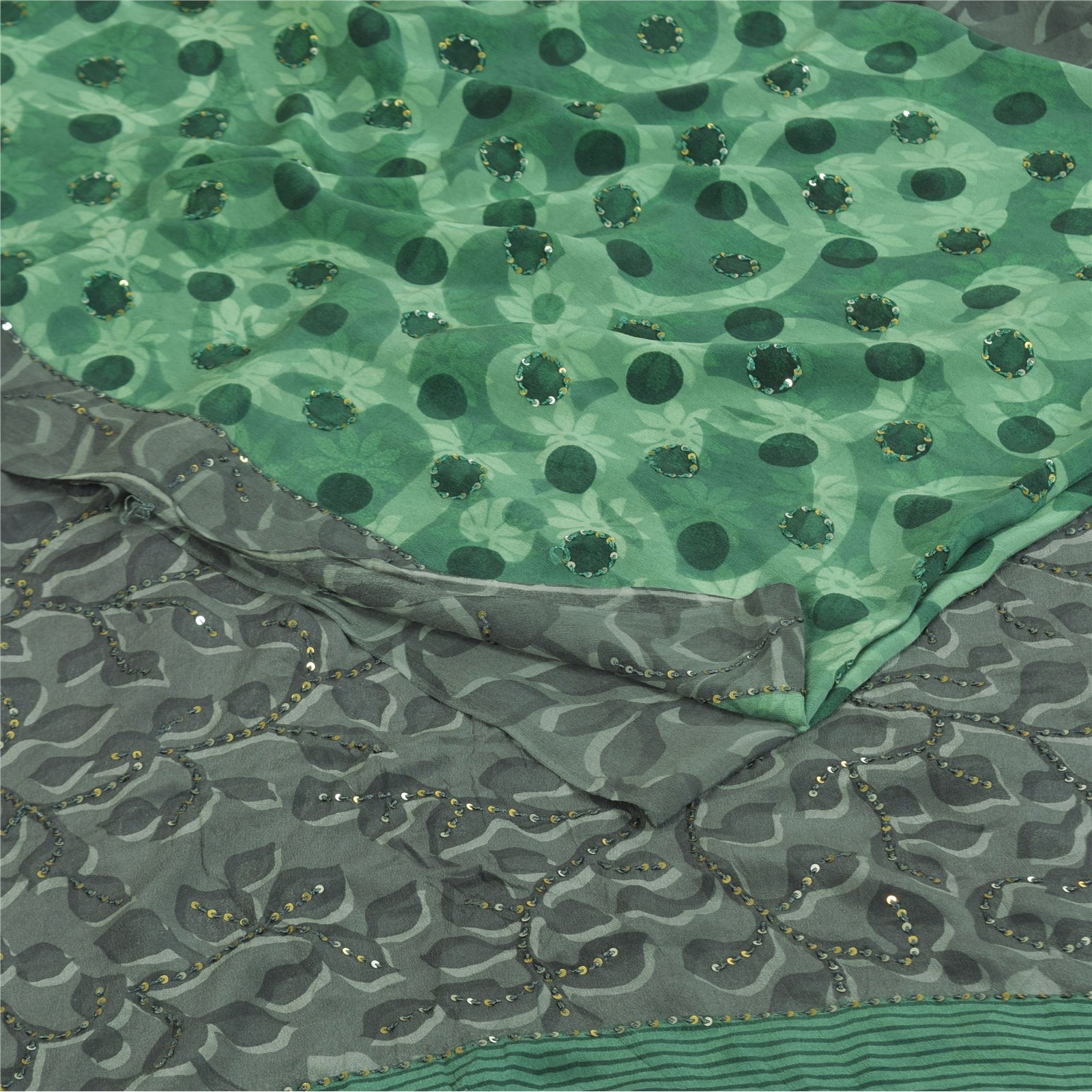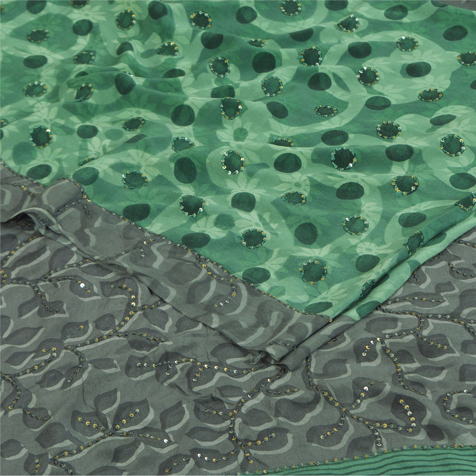Сари Sanskriti Vintage, зеленое чистое креповое сари с вышивкой, 5+ ярдов, устойчивая ткань