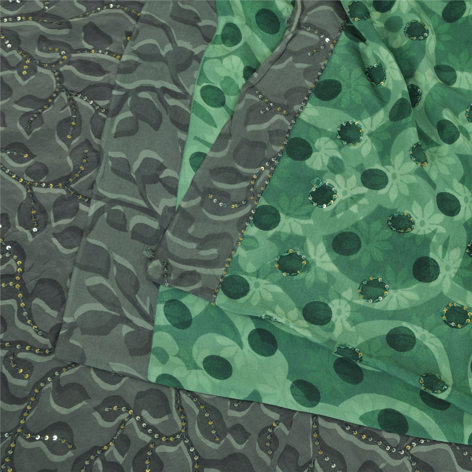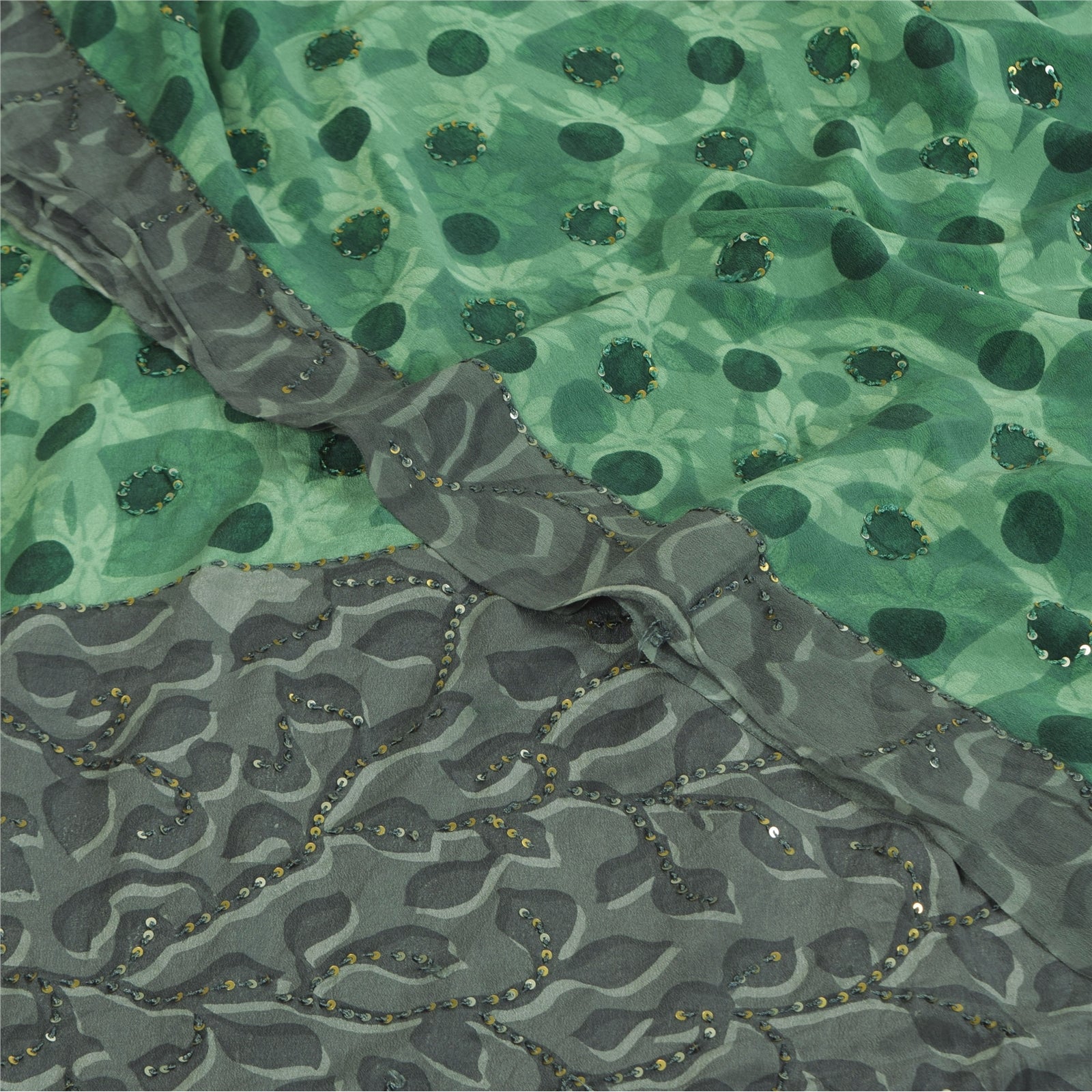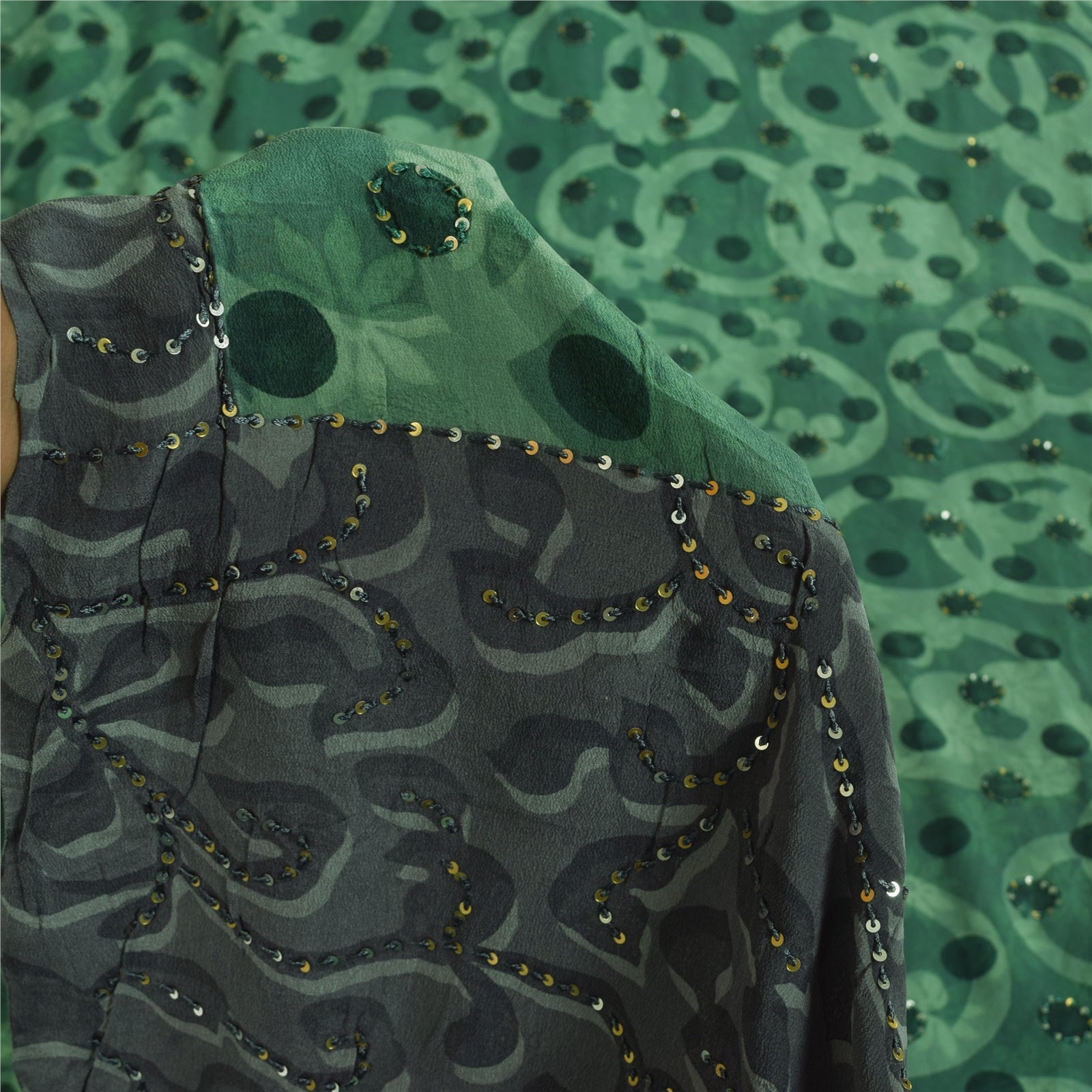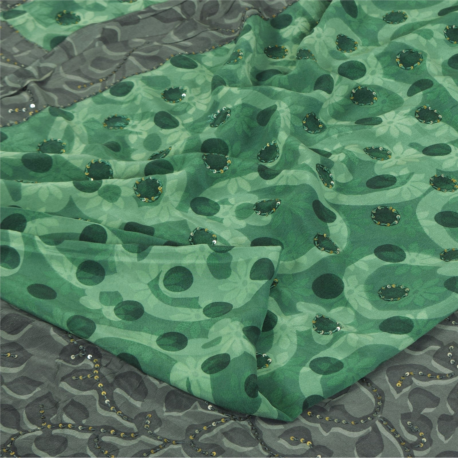 Сари Sanskriti Vintage, зеленое чистое креповое сари с вышивкой, 5+ ярдов, устойчивая ткань