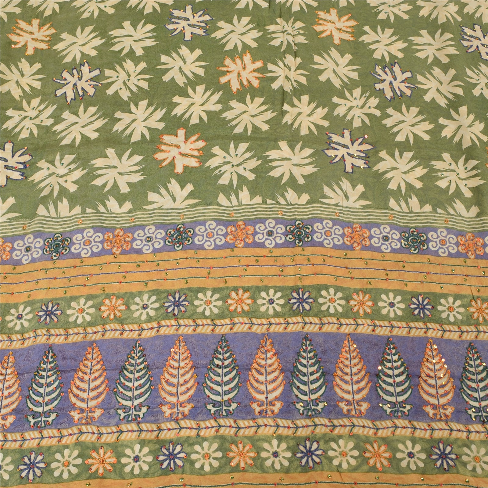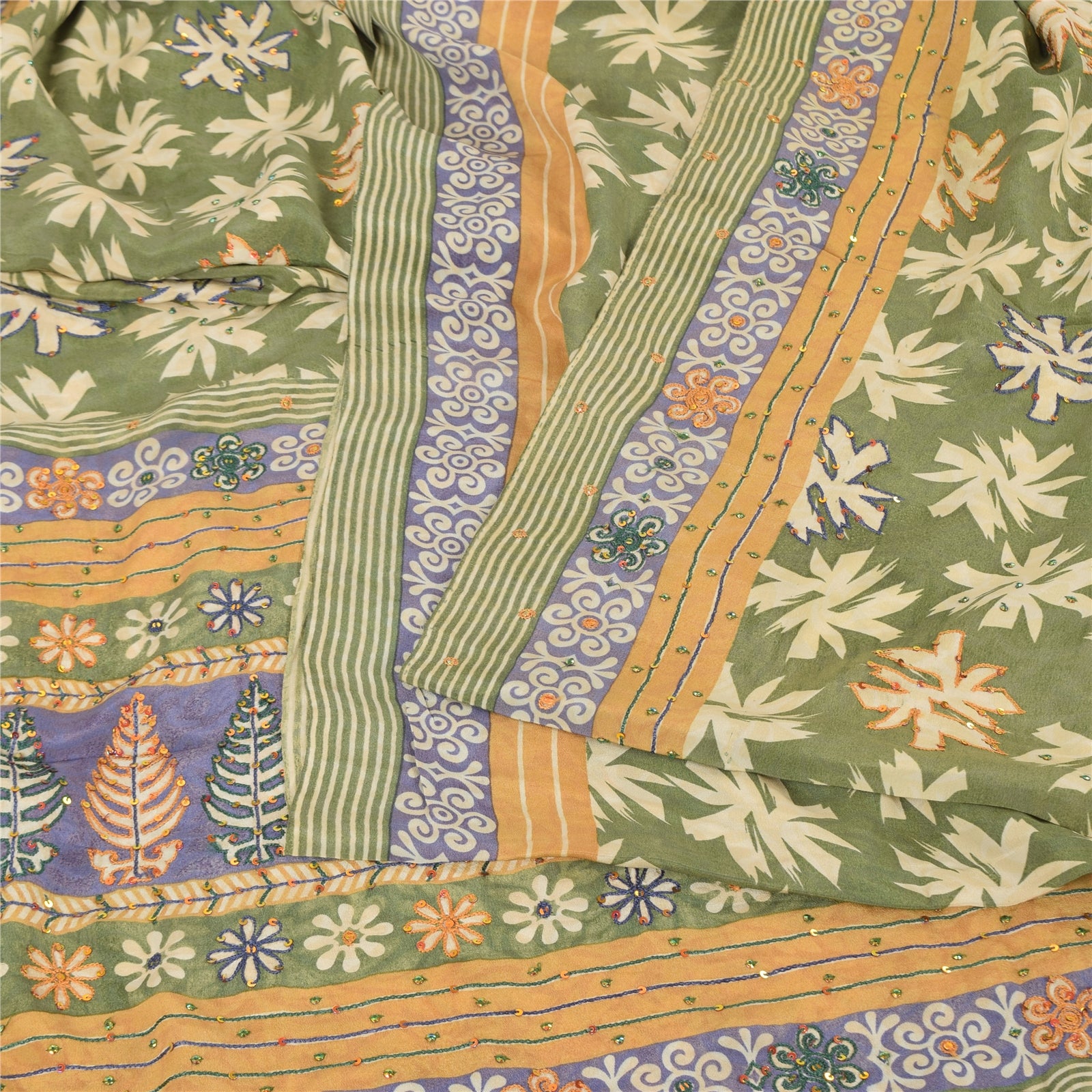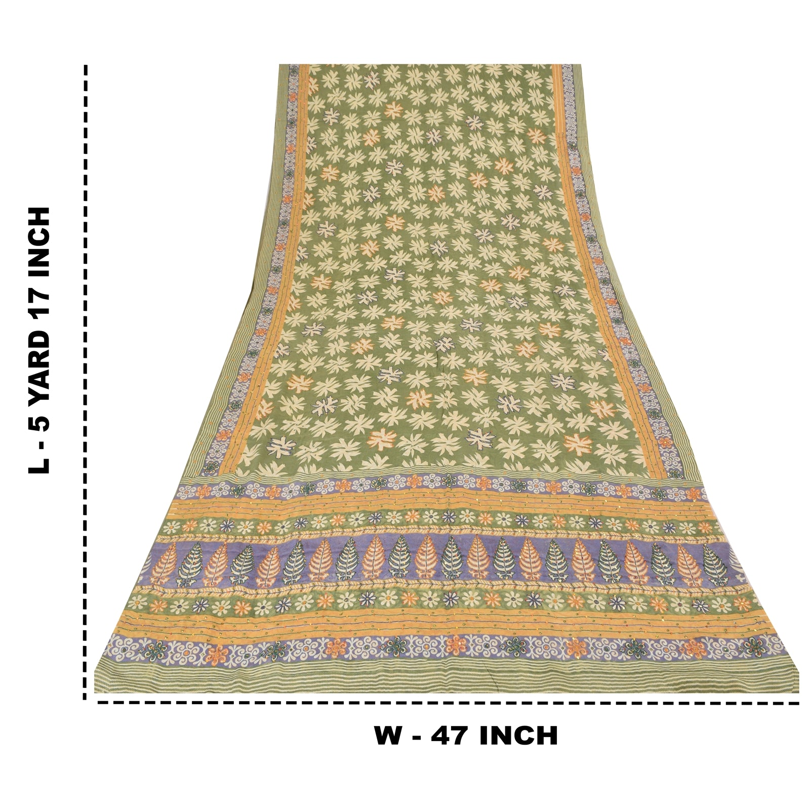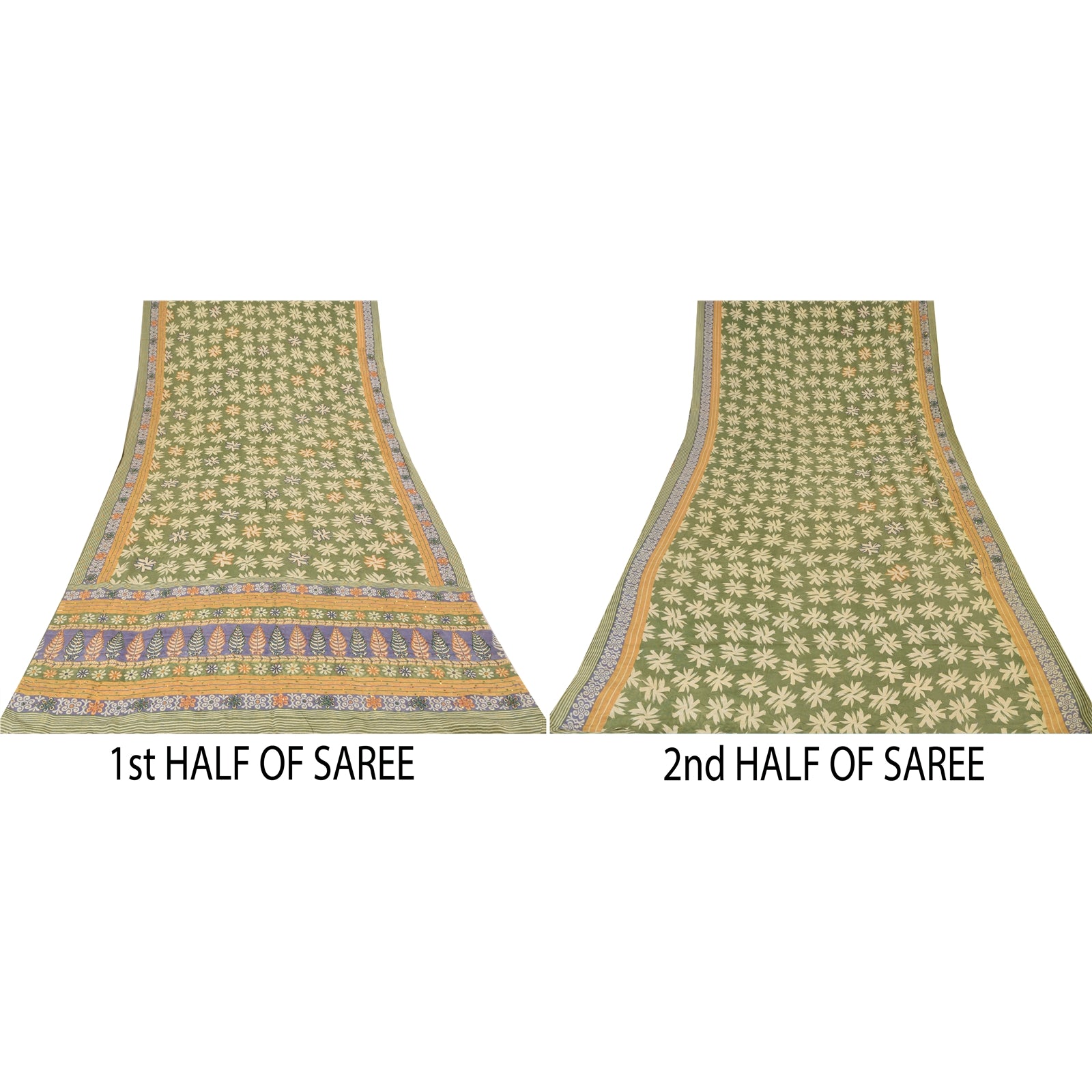 Сари Sanskriti Vintage, зеленое чистое креповое шелковое сари с принтом, 5 ярдов, ткань для рукоделия из экологически чистой ткани