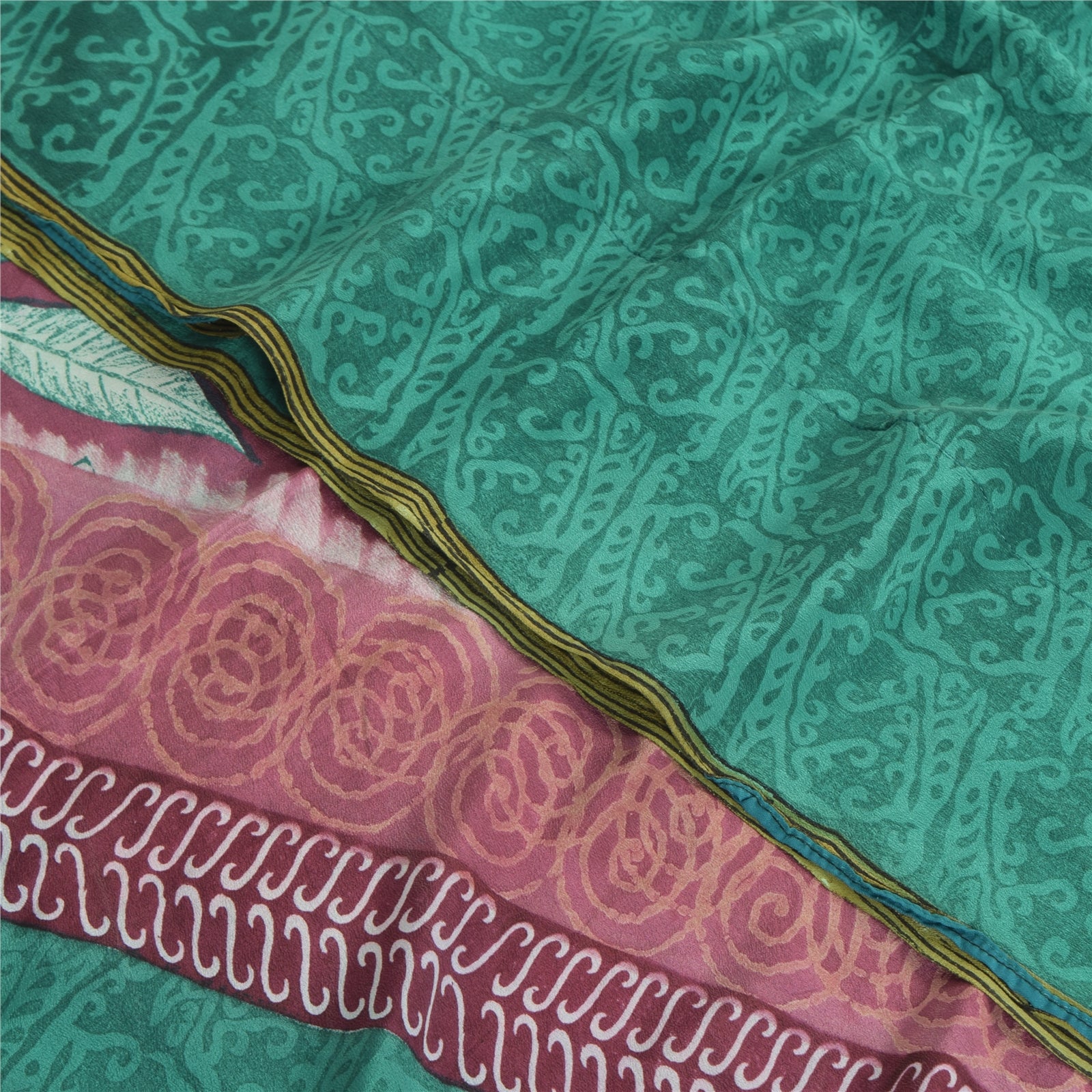 Сари Sanskriti Vintage, зеленое чистое креповое шелковое сари с принтом, 5 ярдов, ткань для рукоделия из экологически чистой ткани