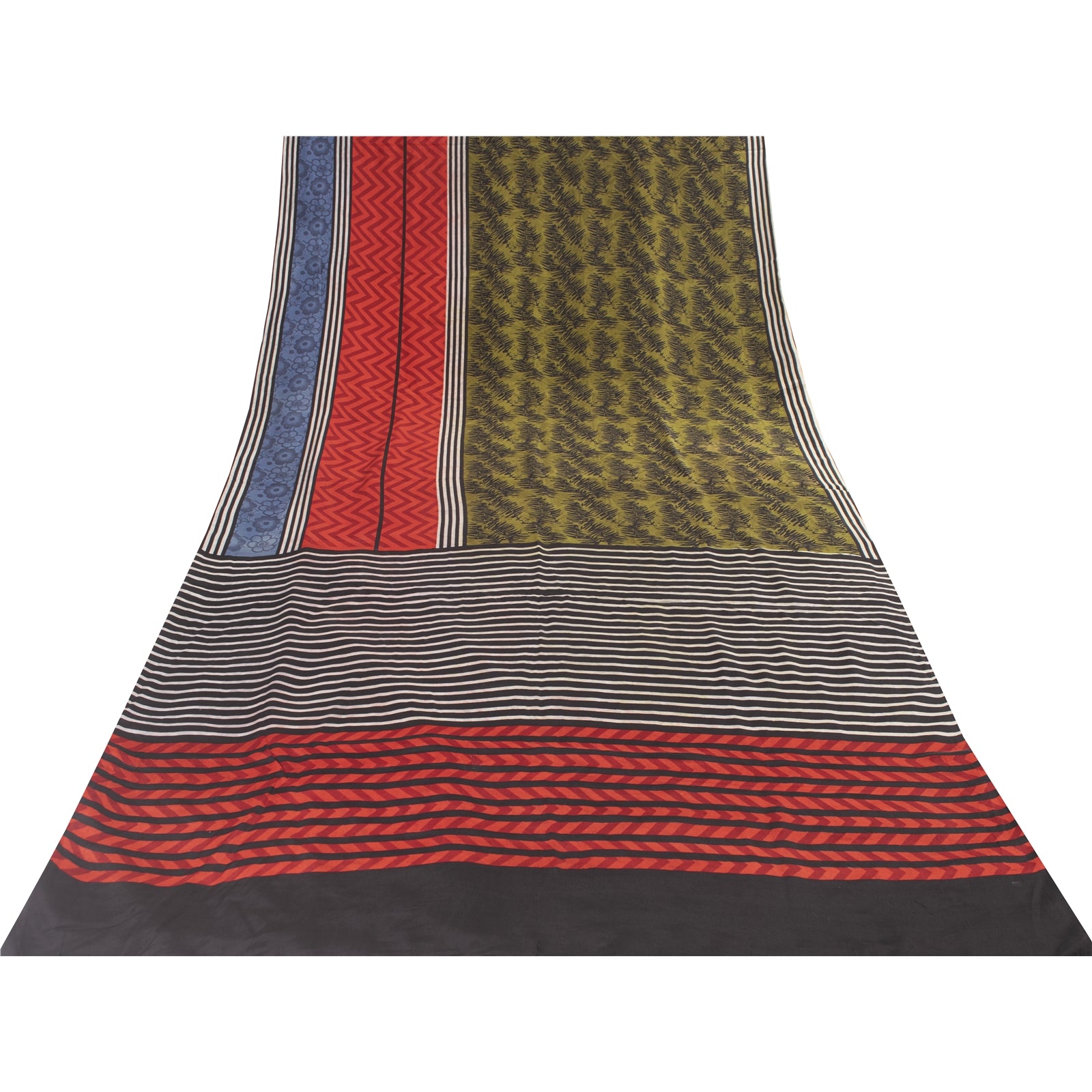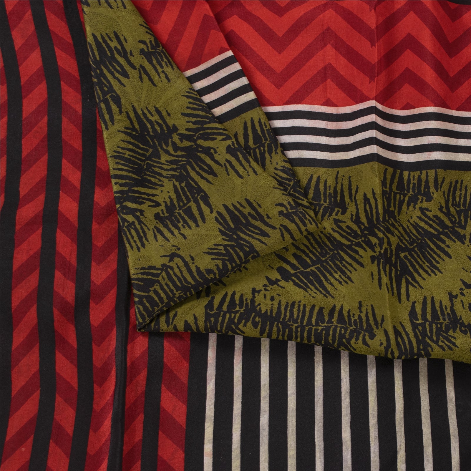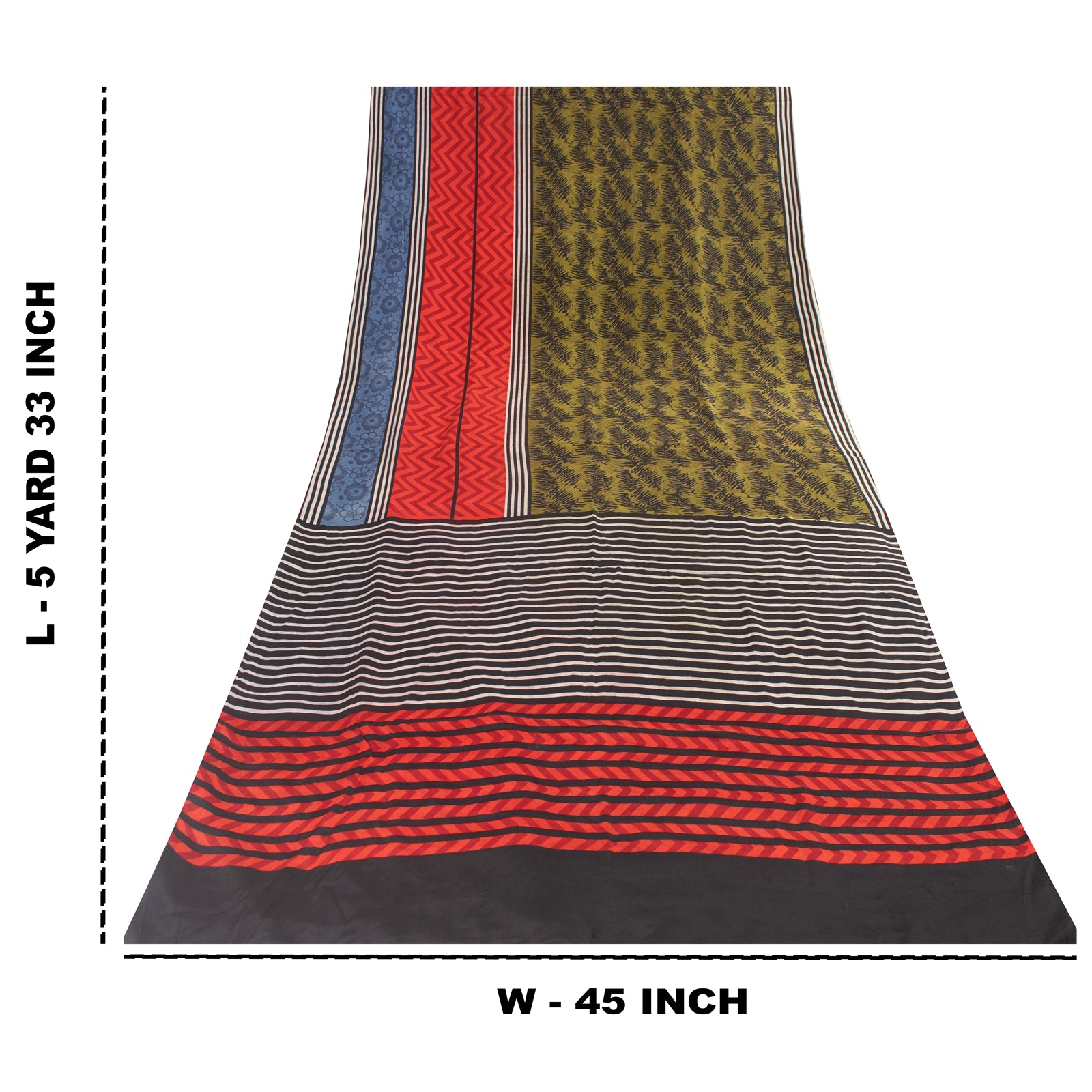 Sanskriti Vintage Sarees Green Pure Crepe Silk Printed Sari 6+yd Craft Fabric