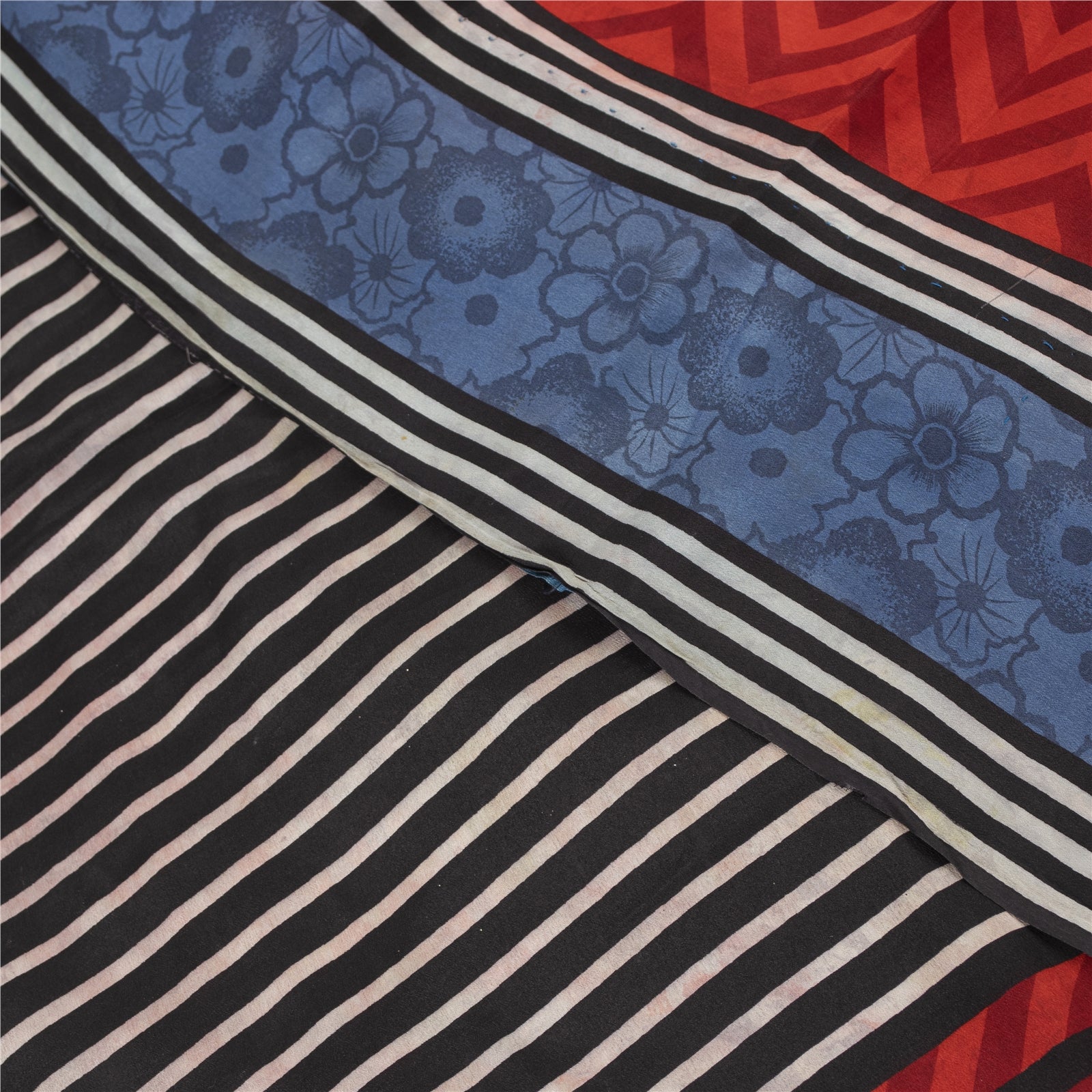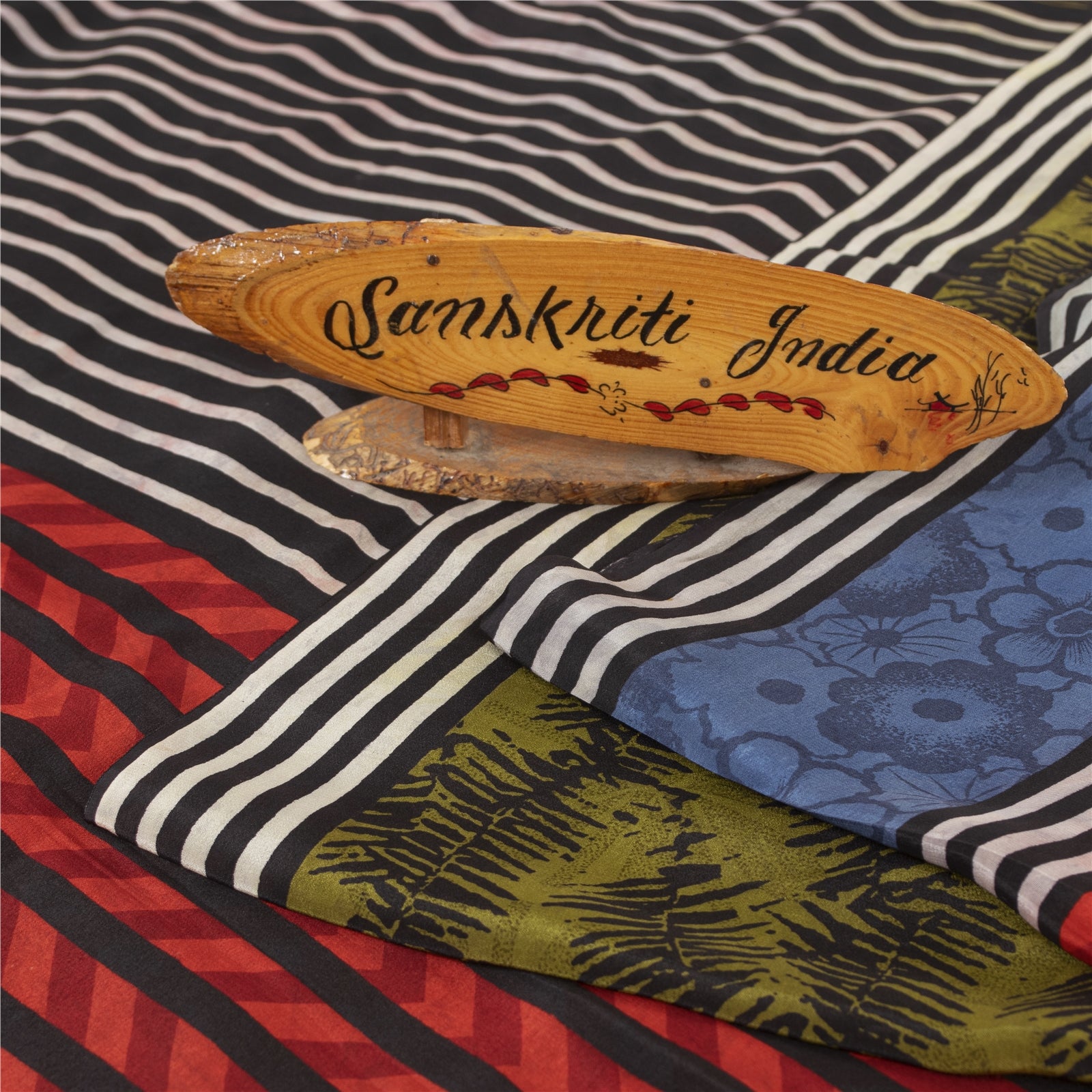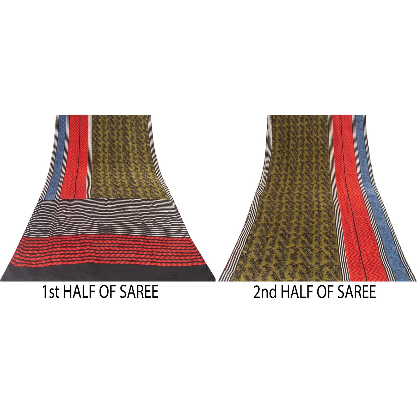 Sanskriti Vintage Sarees Green Pure Crepe Silk Printed Sari 6+yd Craft Fabric