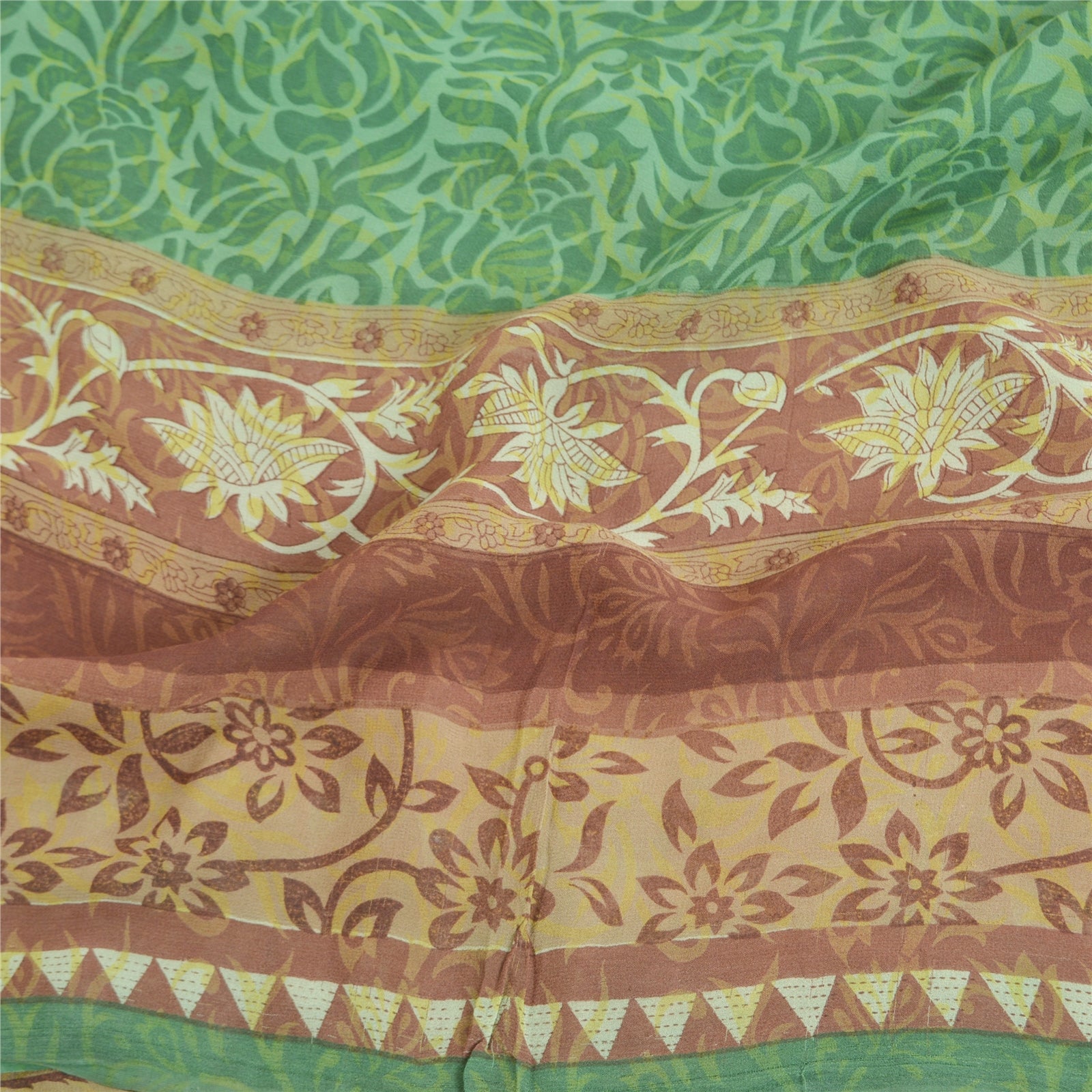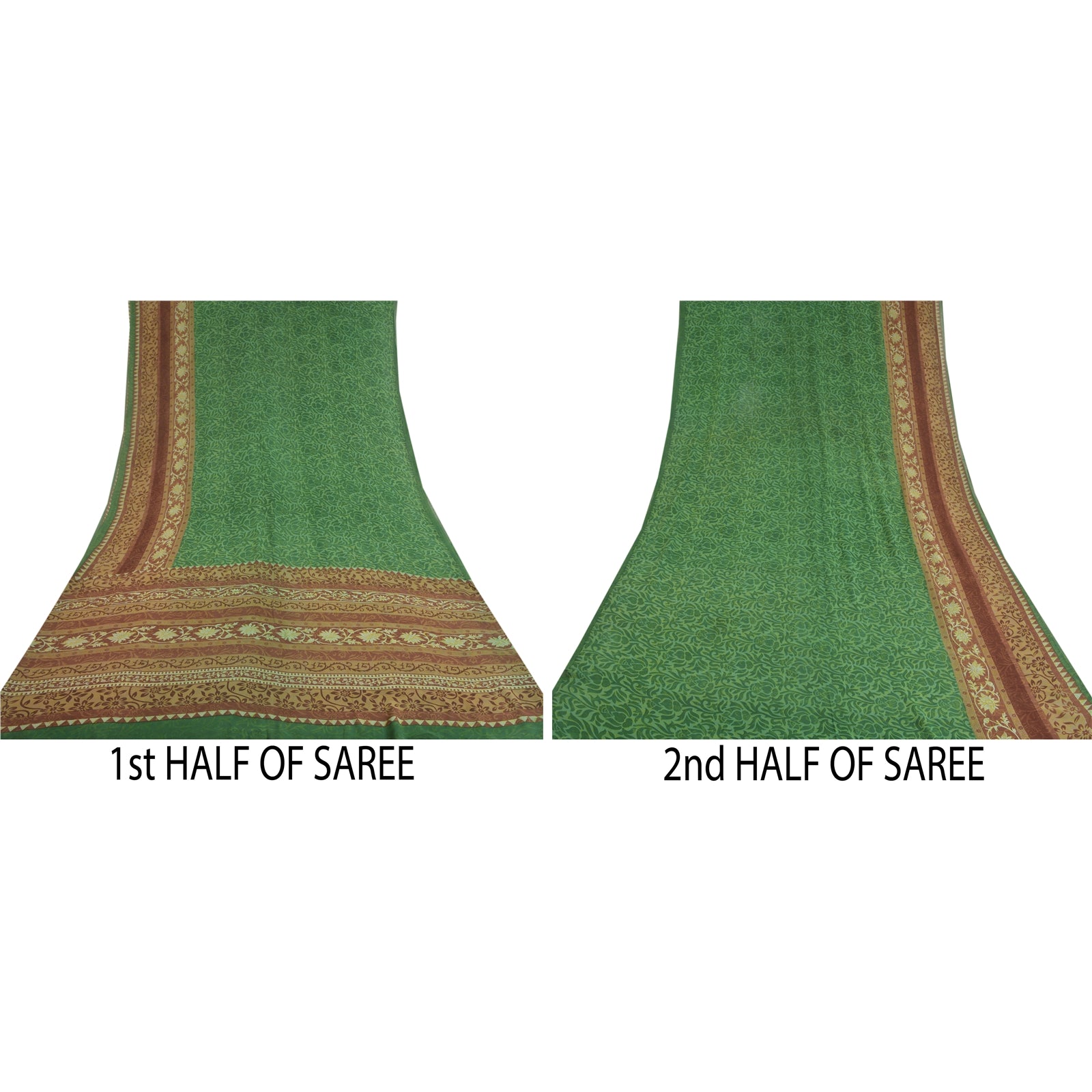 Сари Sanskriti Vintage, зеленое сари из чистого шелка-жоржета с принтом, 5 ярдов, ткань для рукоделия из экологически чистой ткани