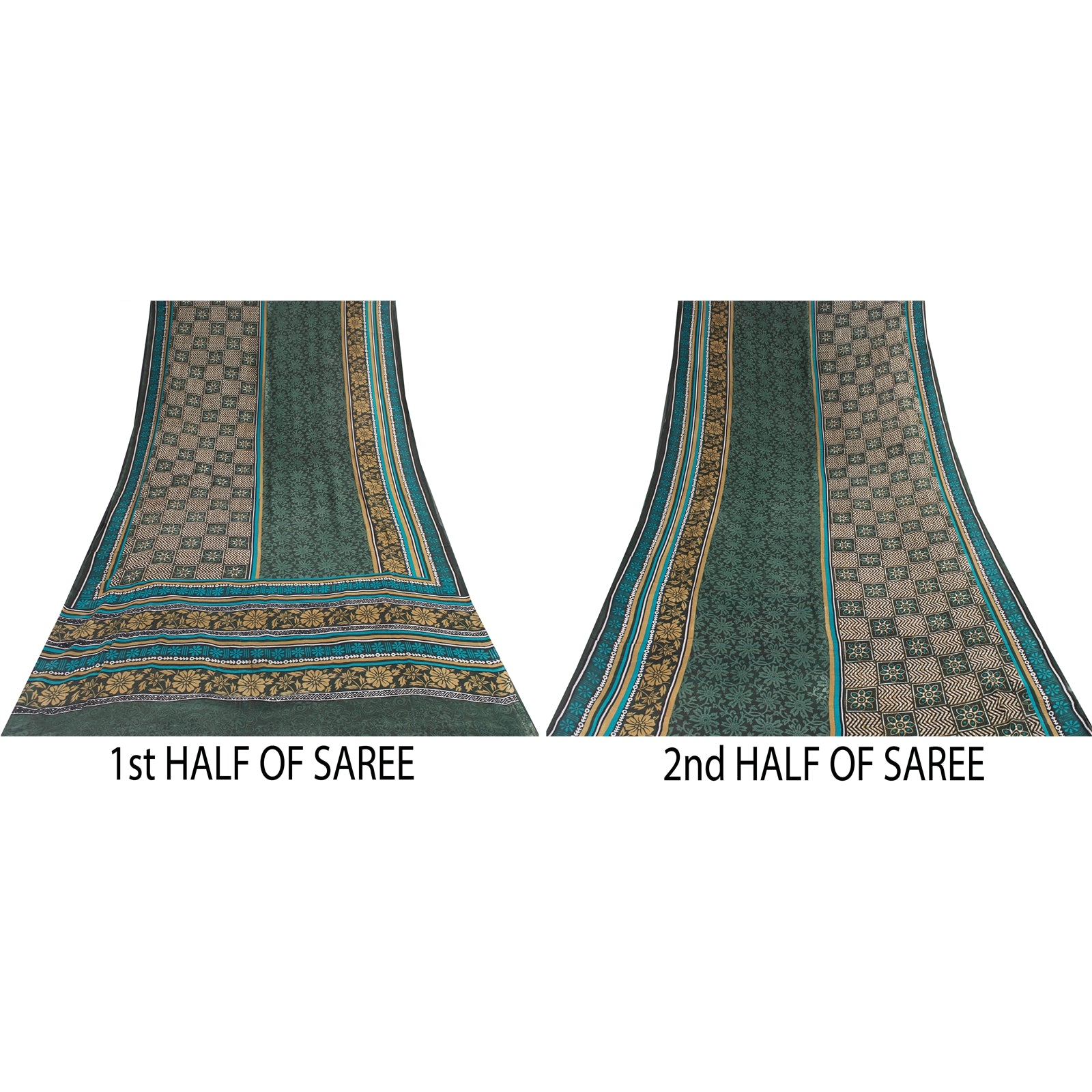 THE ITEM COLOR OR SHADE MAY BE DARKER OR LIGHTER THAN THE PICTURE.' • Beautiful green colored printed pure silk saree . • Pallu & Border has printed floral design. • Similar design in center part of sari . This unique vintage saree can be used for various crafting ideas even if you don't want to use it as a sari. Design a dress, use it as a as window dressing, upholstery, sarongs, throw, dress making and table linen much more. Let your creative juices flow and use this decorated fabric in multiple fashion. International buyers please note: Import duties, taxes, and charges are not included in the item price or postage cost. These charges are the buyer's responsibility. Please check with your country's customs office to determine what these additional costs will be prior to bidding or buying.Buyer will pay custom duty/tax. It is calculated and charged differently by every country. As a seller I do not have any control over it. VAT or sales tax is calculated by the platform at the time of checkout. Customs charge is payable at the time of delivery. PR-70225