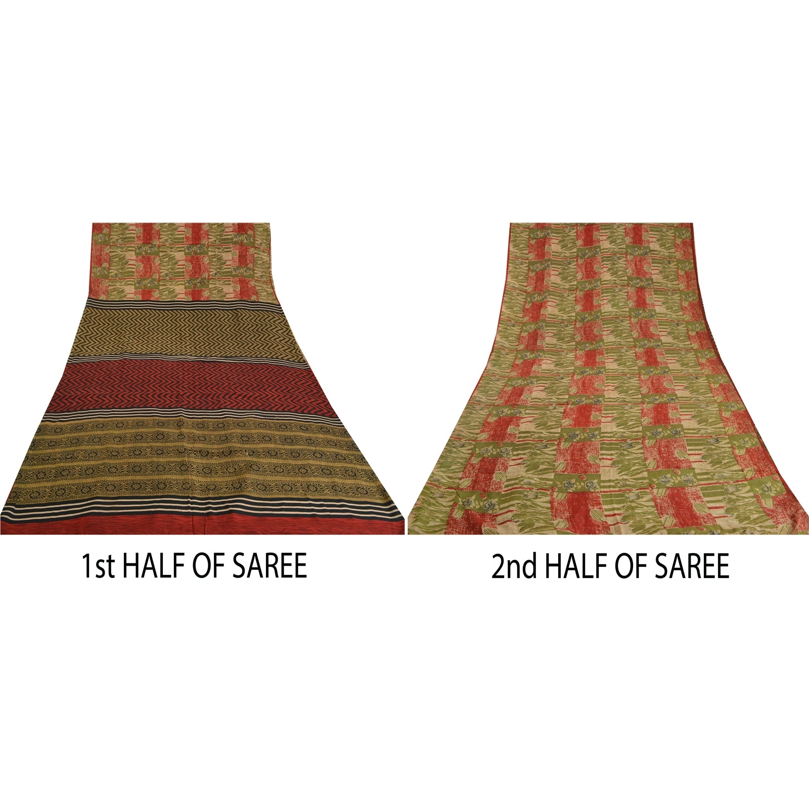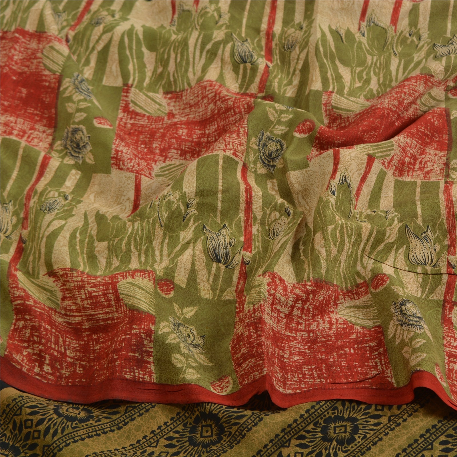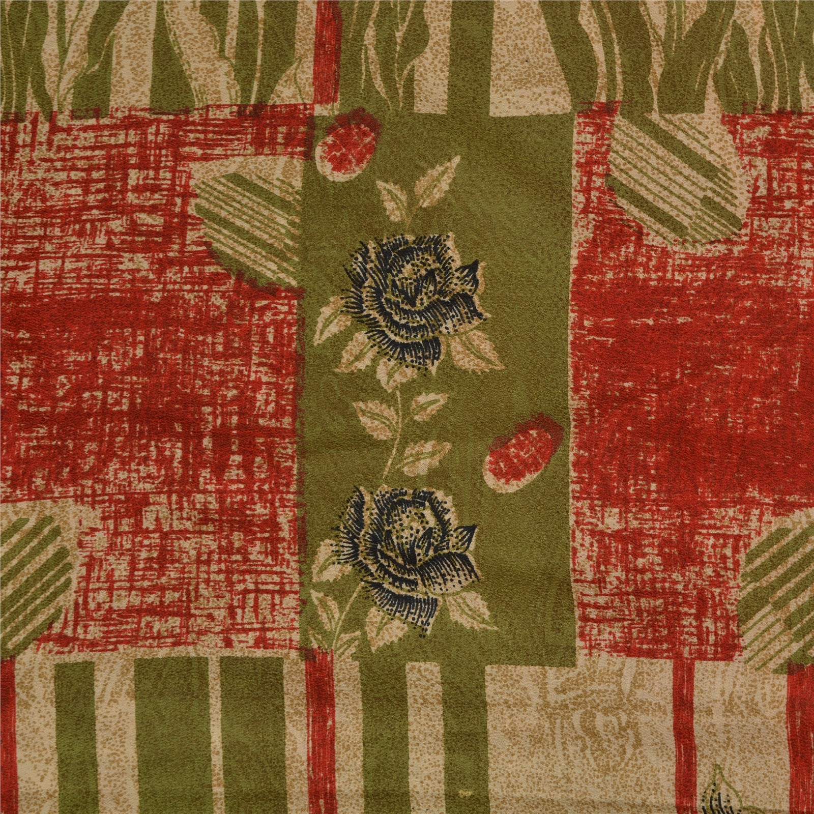 Сари Sanskriti Vintage, зеленое/красное, чистый креп-шелк, напечатанное сари, 5 ярдов, ткань для рукоделия, устойчивая к истиранию