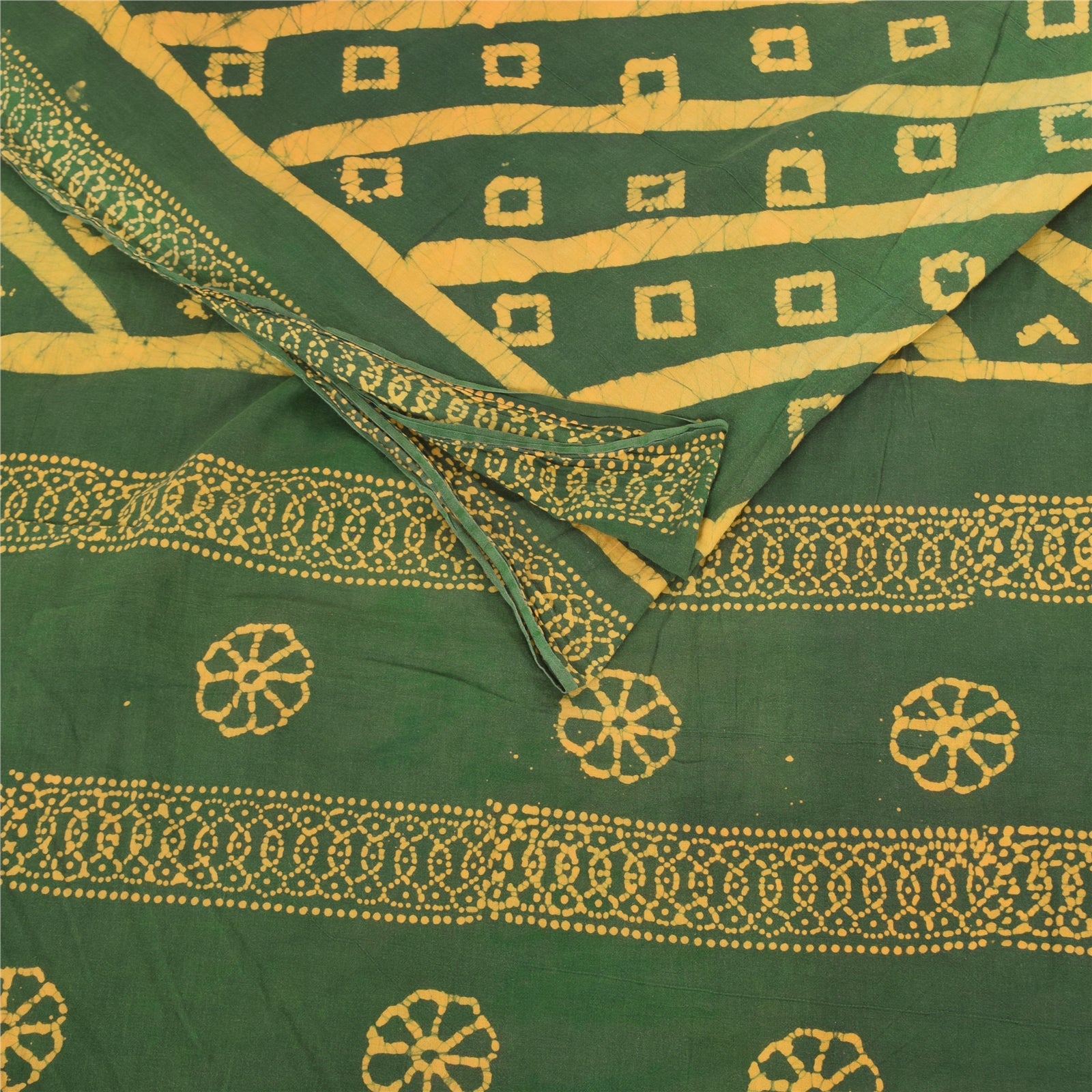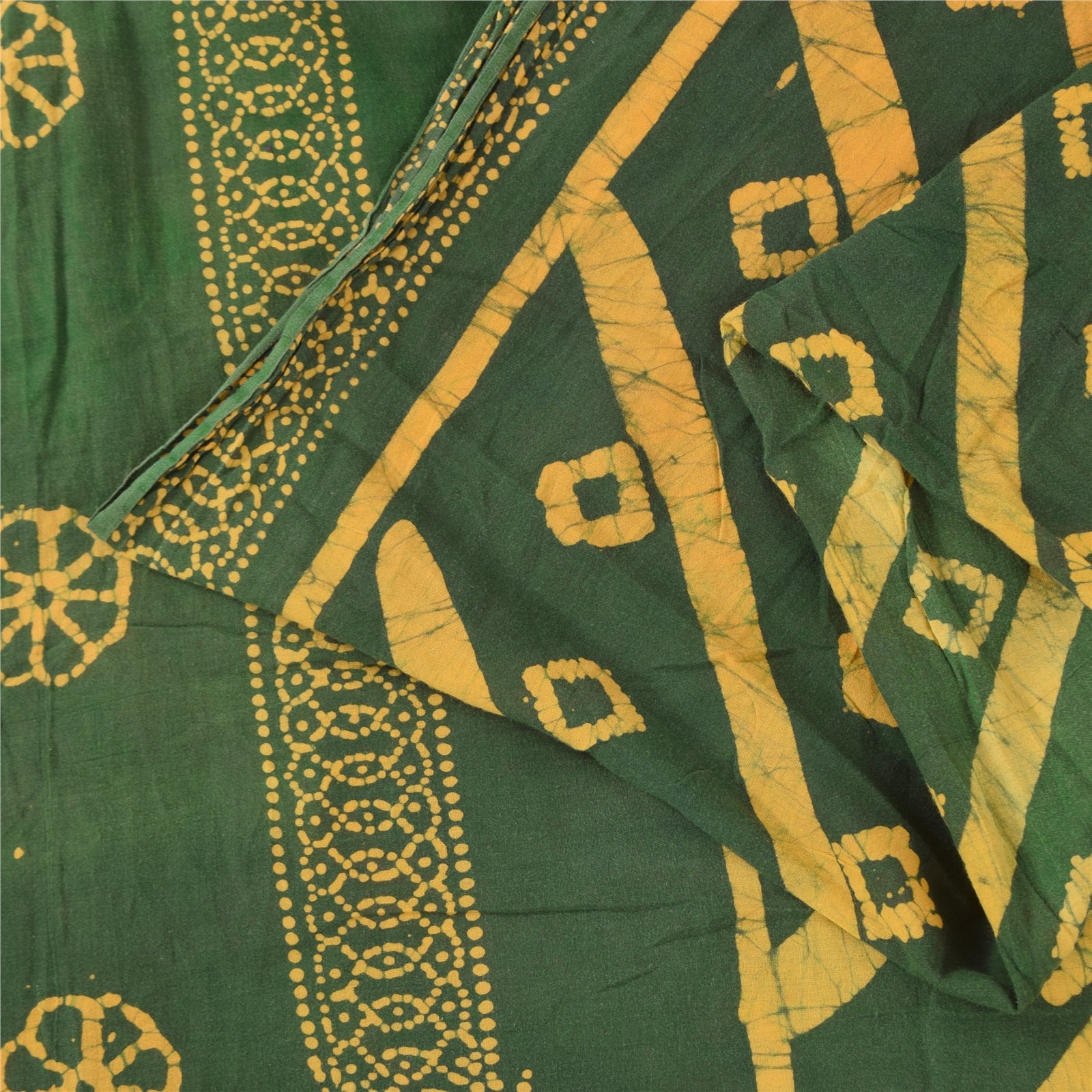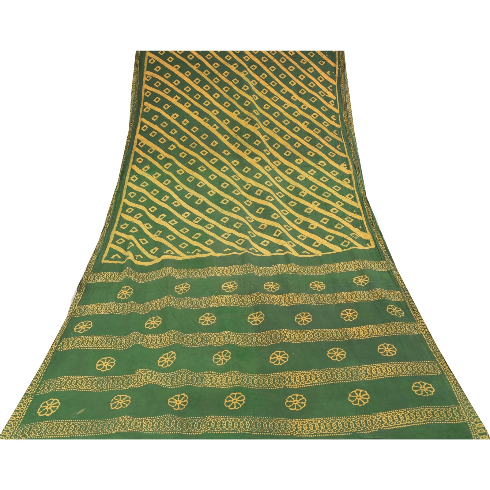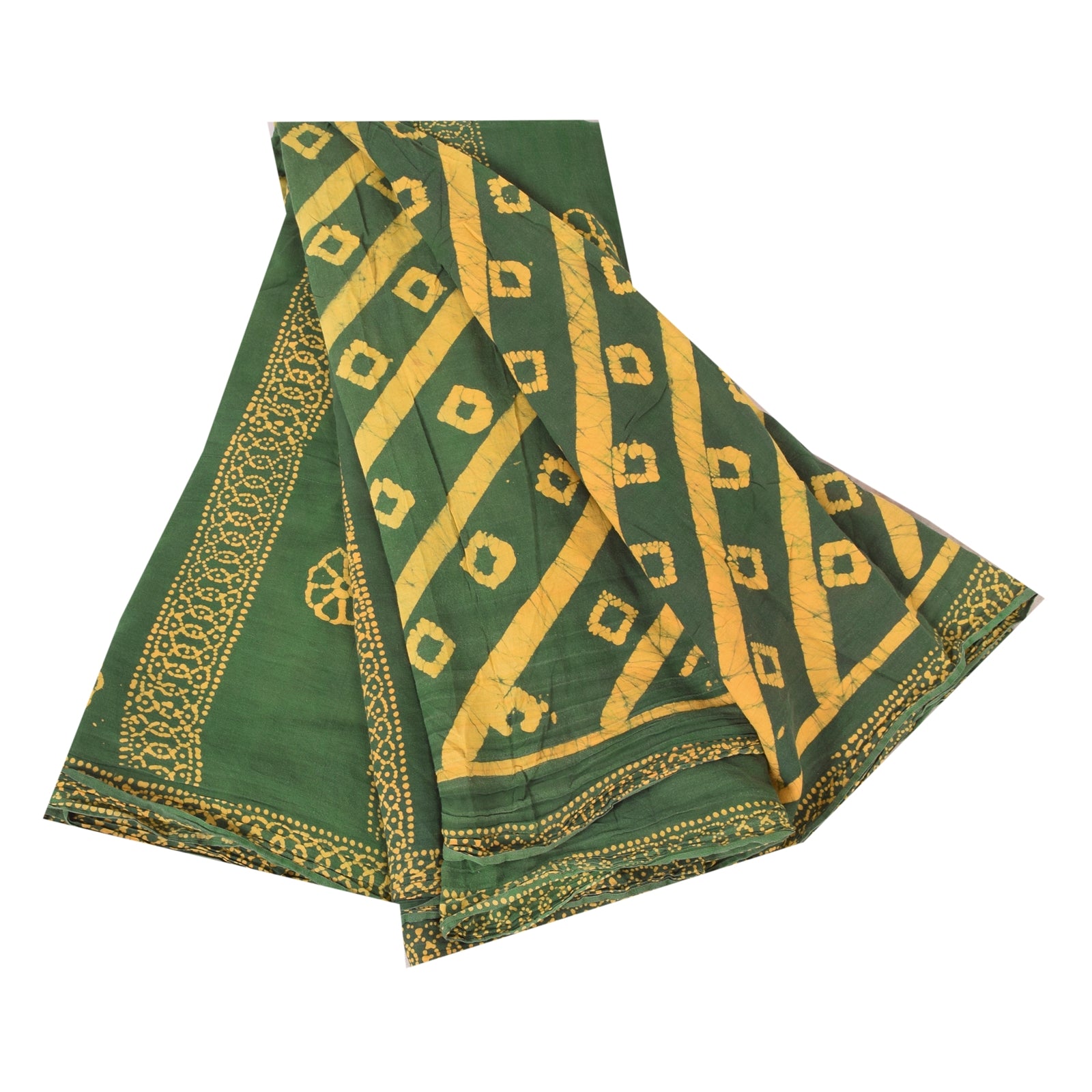 Санскритские винтажные сари зеленое/желтое чистое хлопковое батиковое сари 5+ ярдов устойчивая ткань