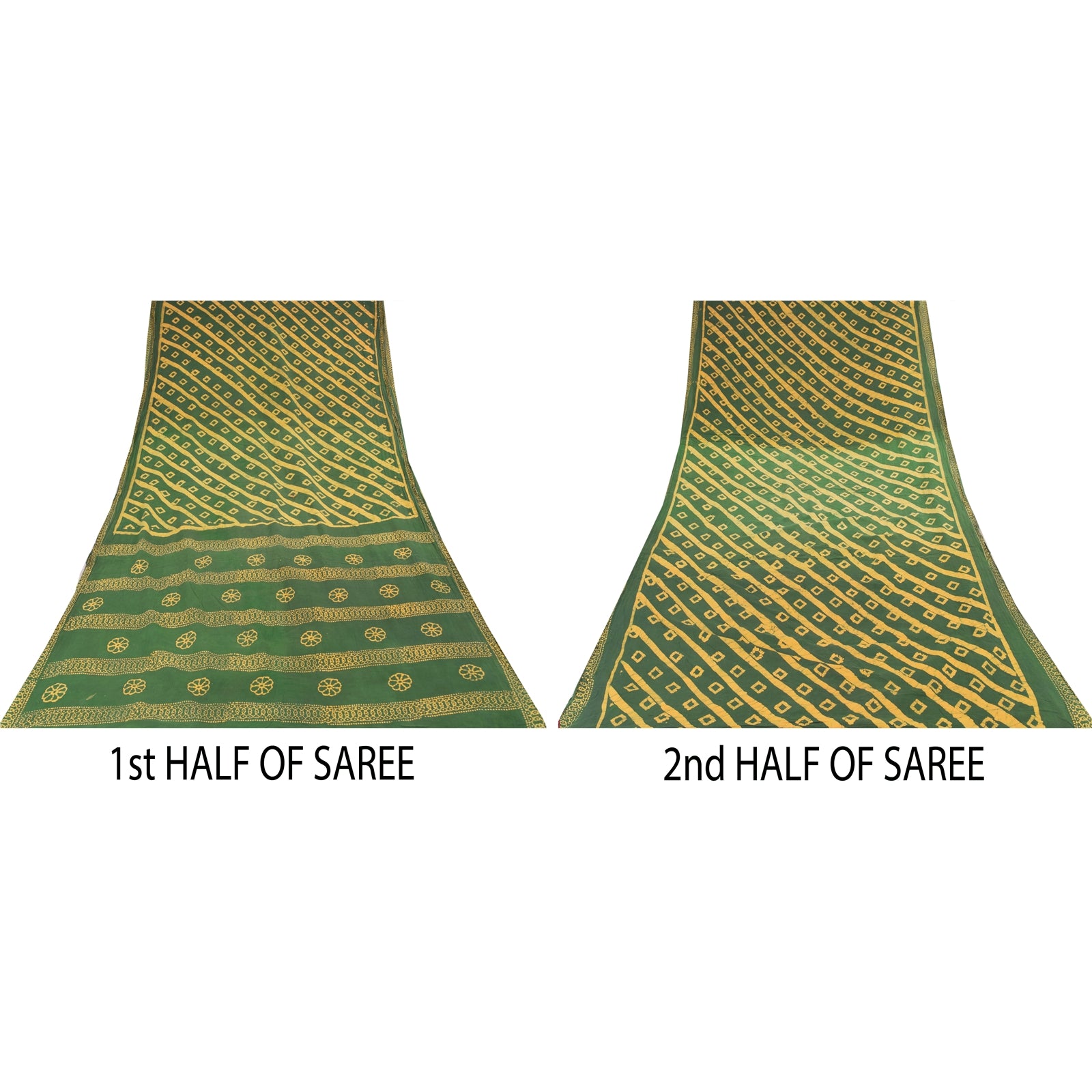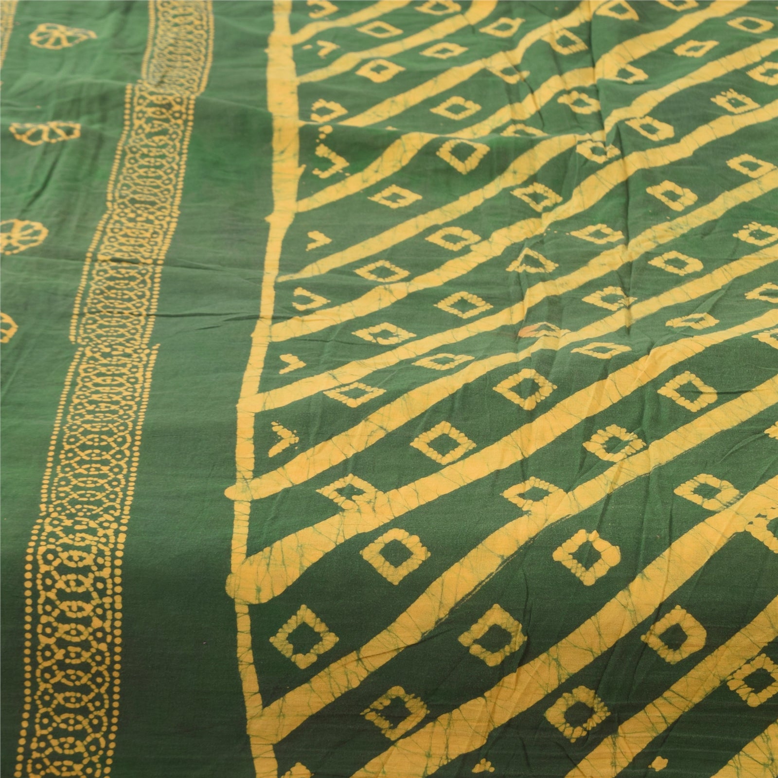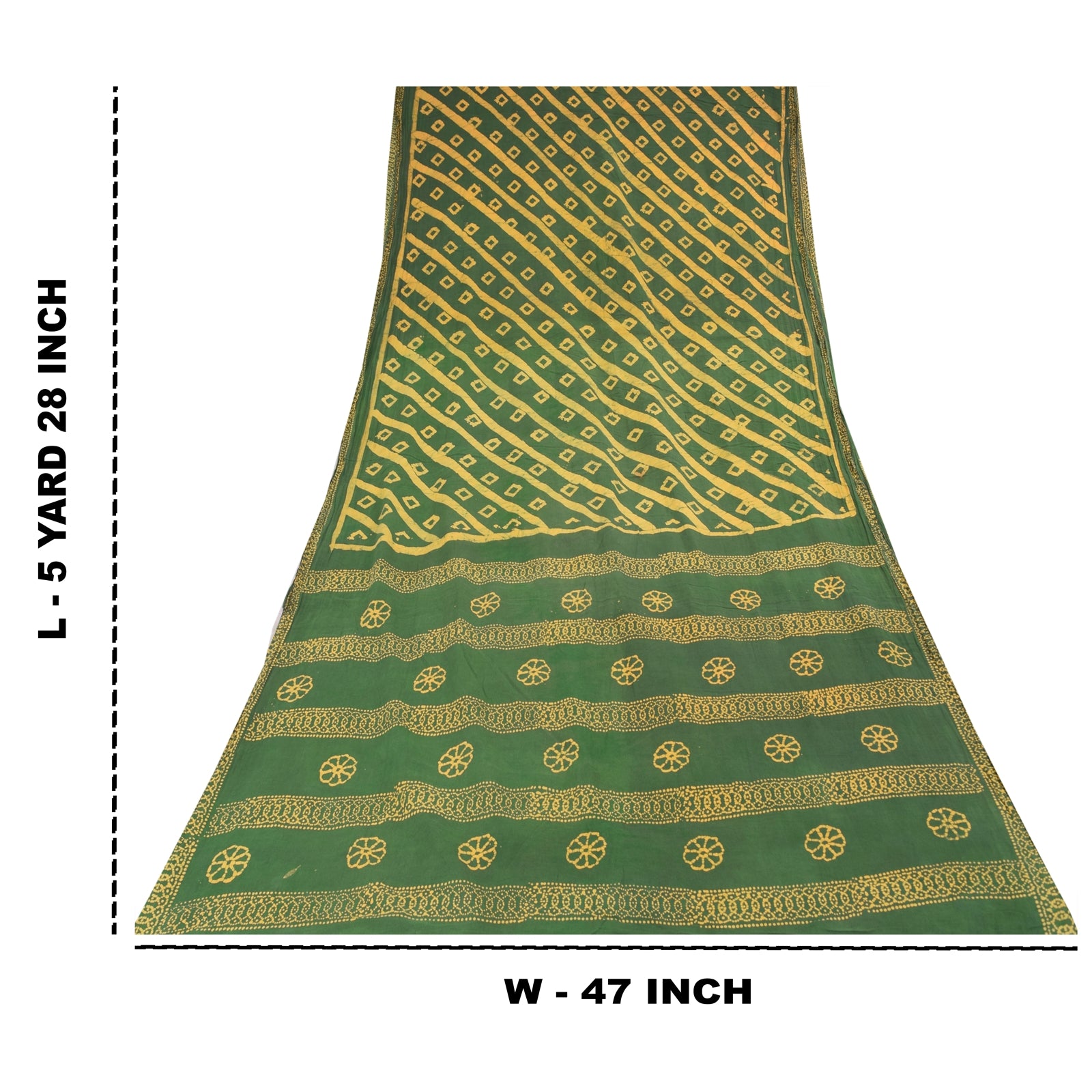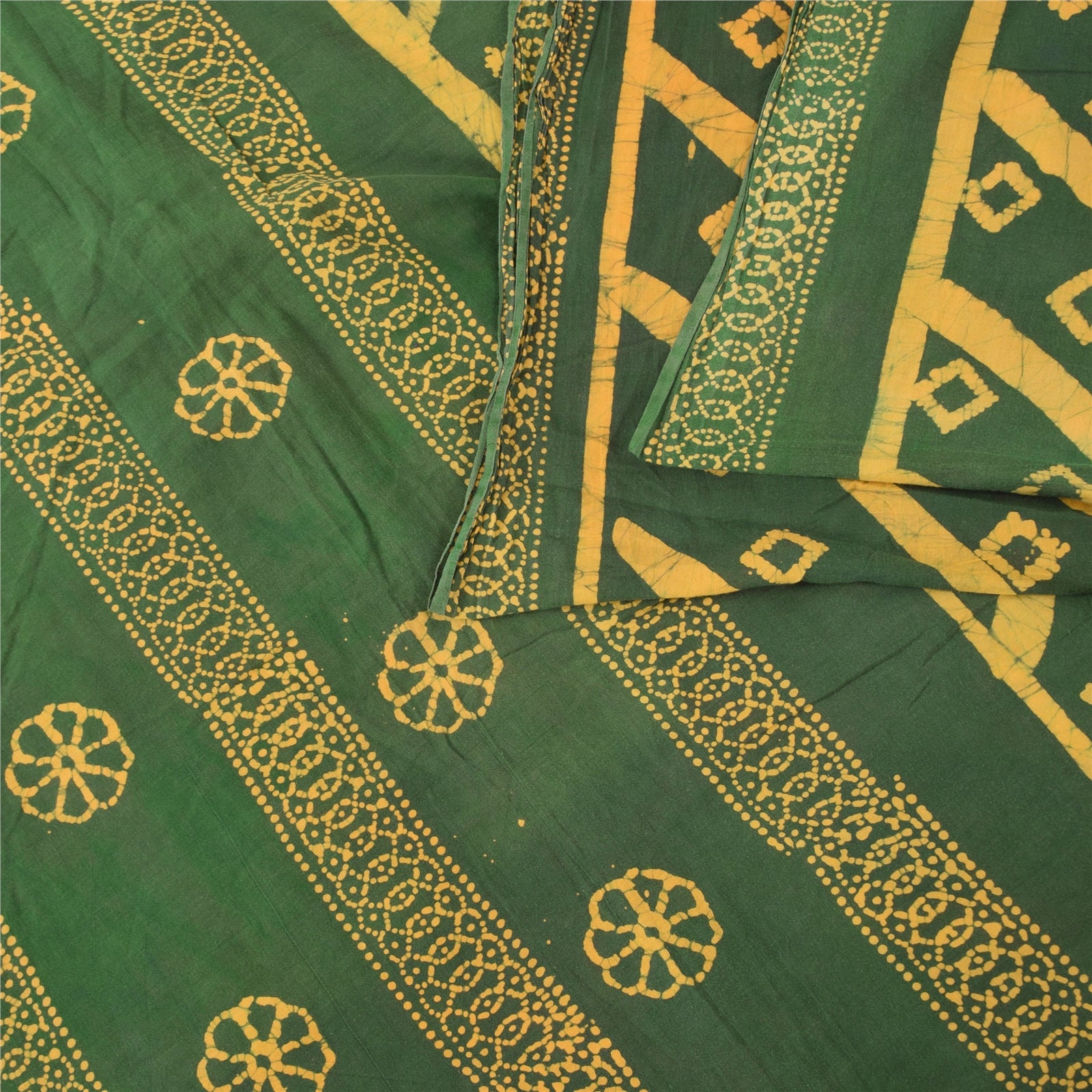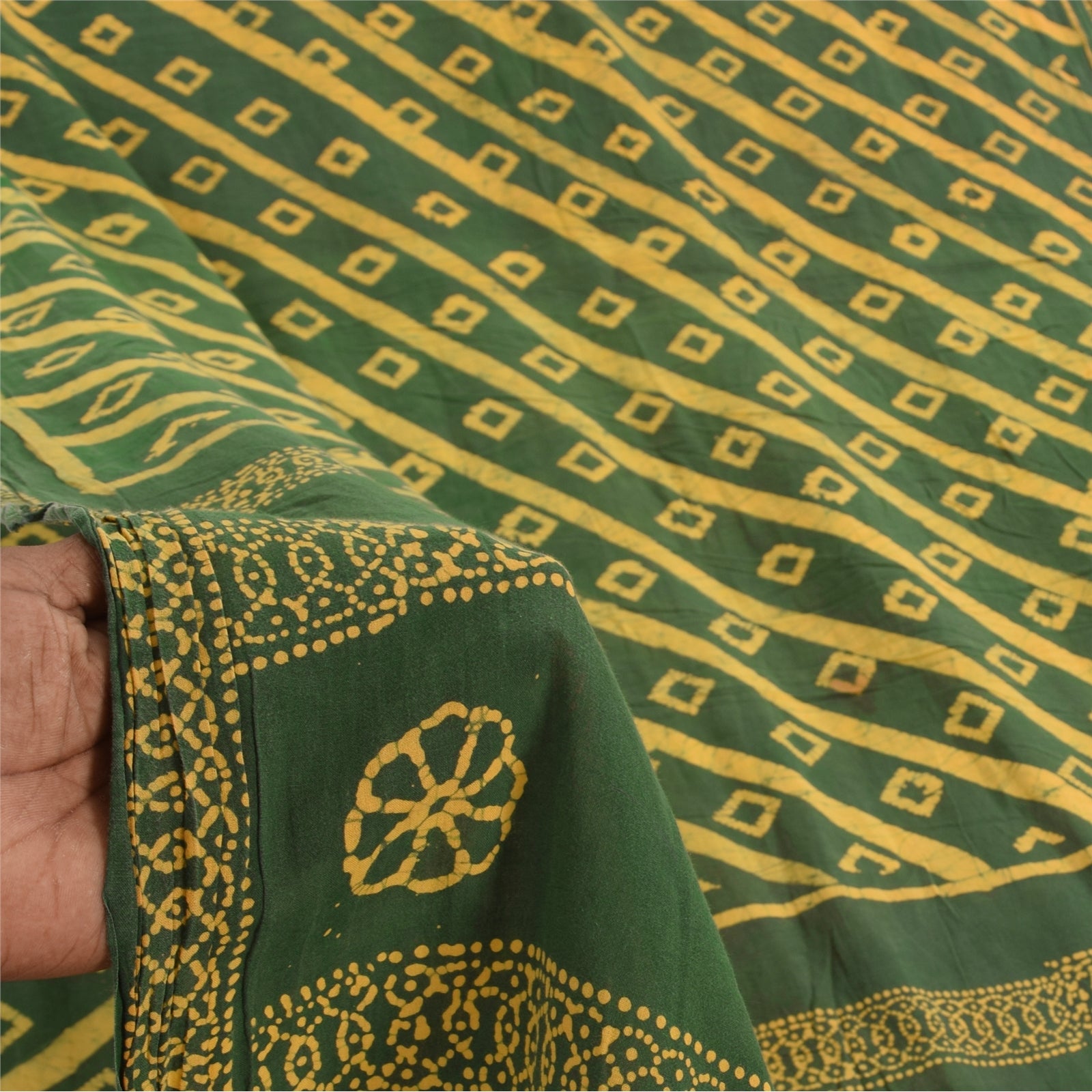 Санскритские винтажные сари зеленое/желтое чистое хлопковое батиковое сари 5+ ярдов устойчивая ткань