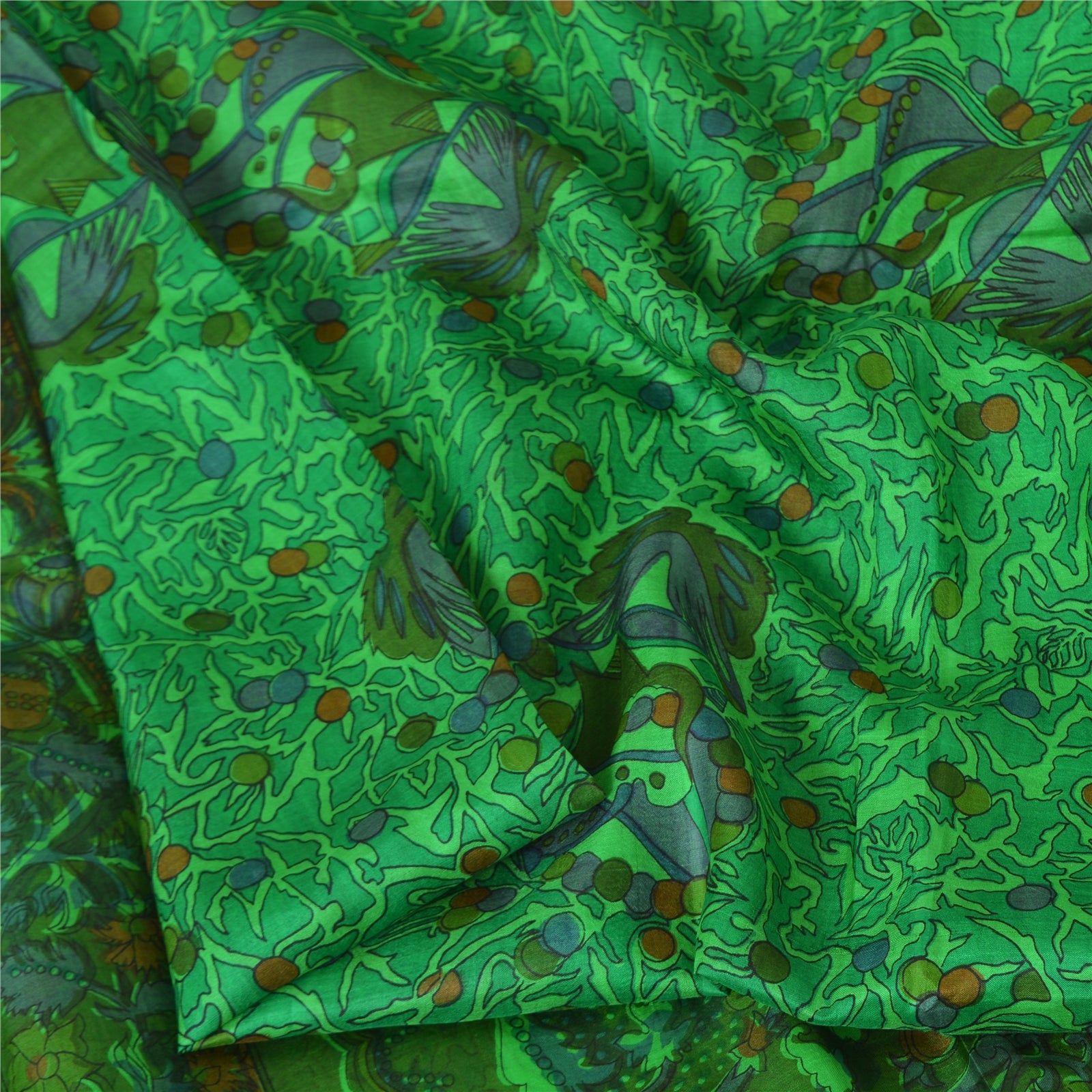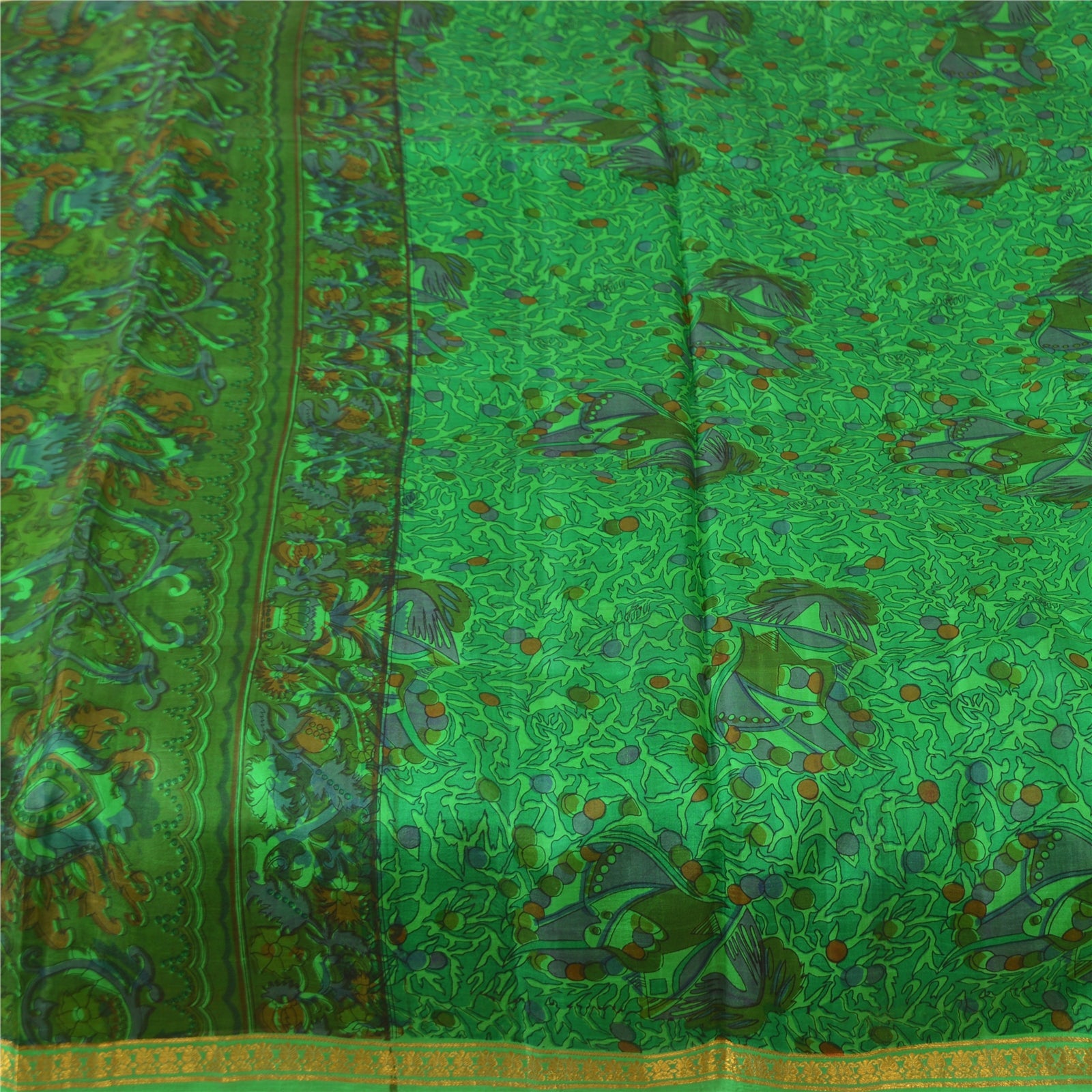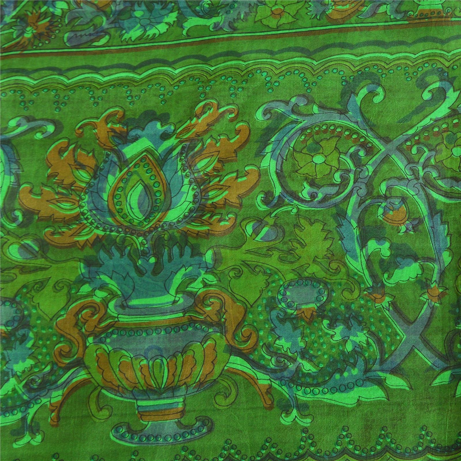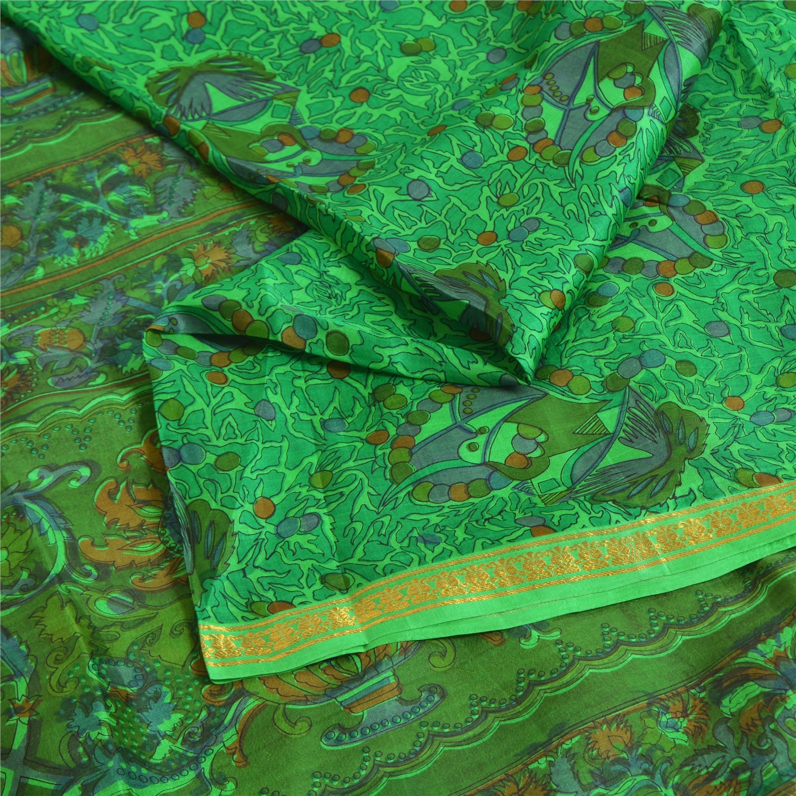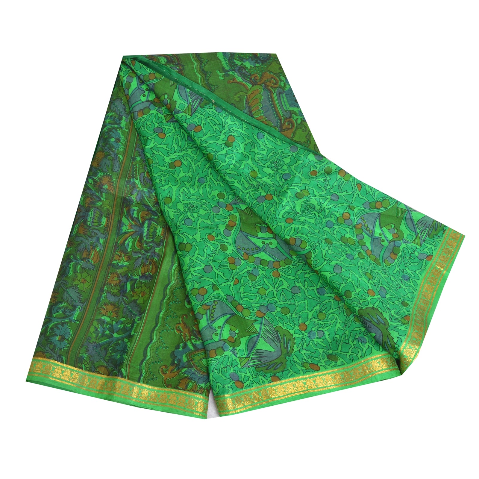 Санскритские винтажные сари зеленая кайма зари чистый шелк напечатанное сари ремесло устойчивая ткань
