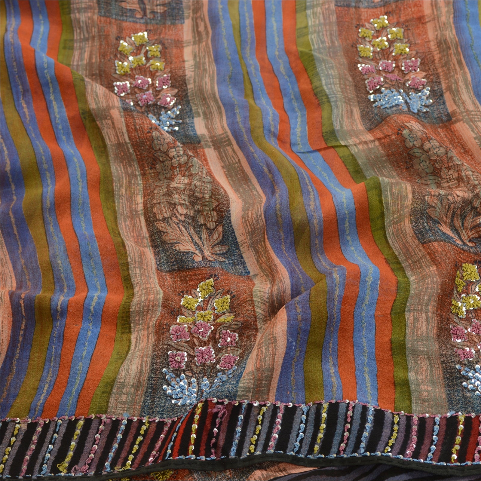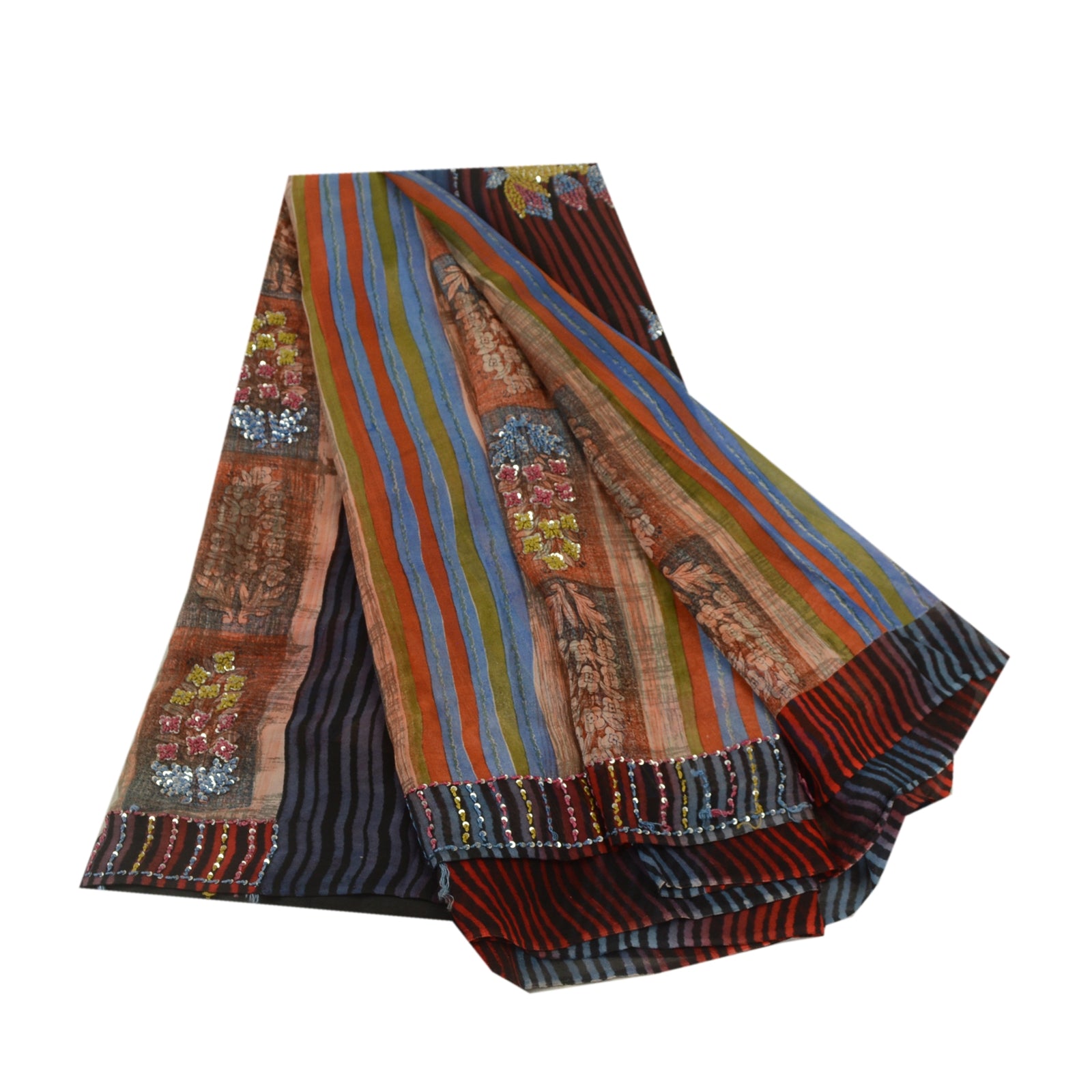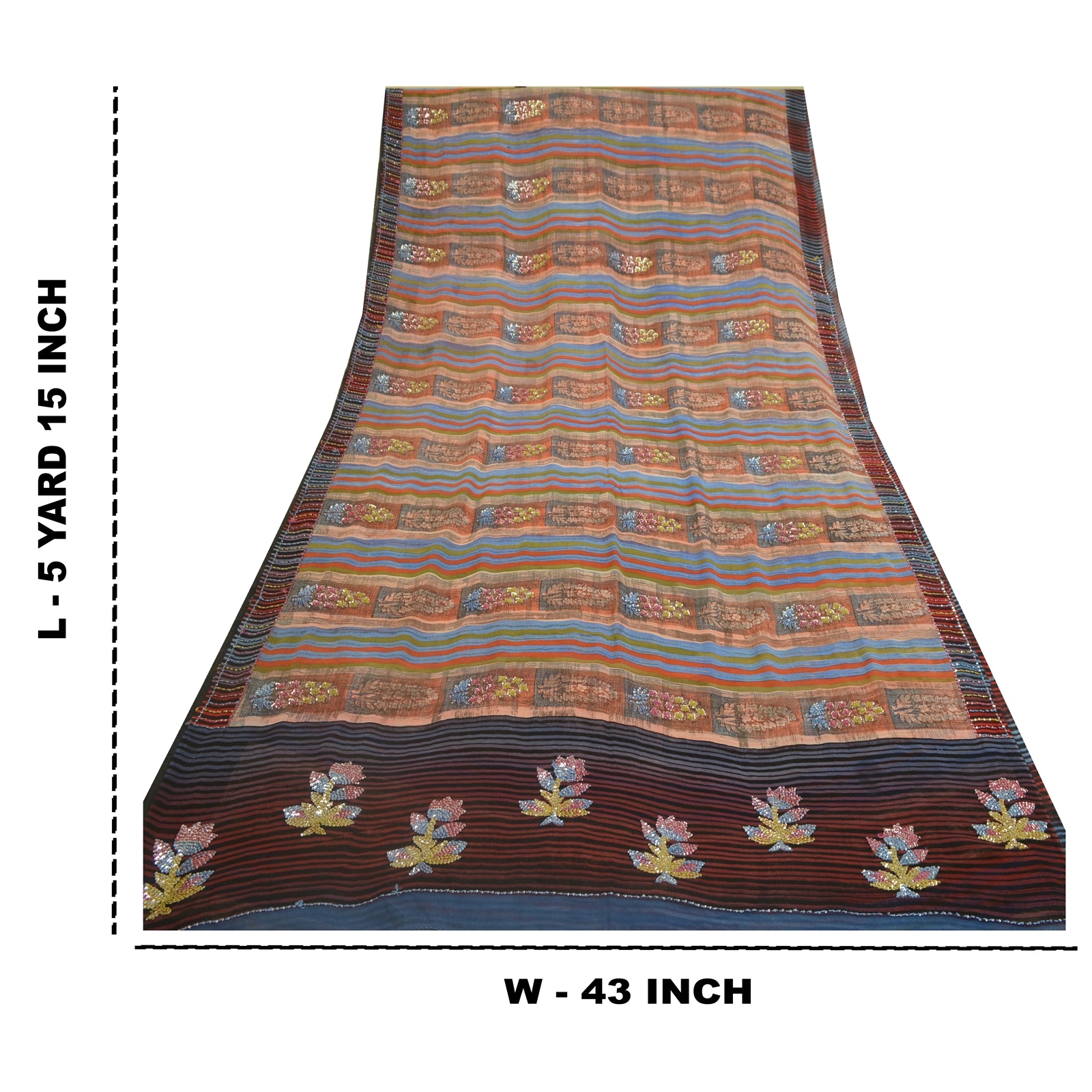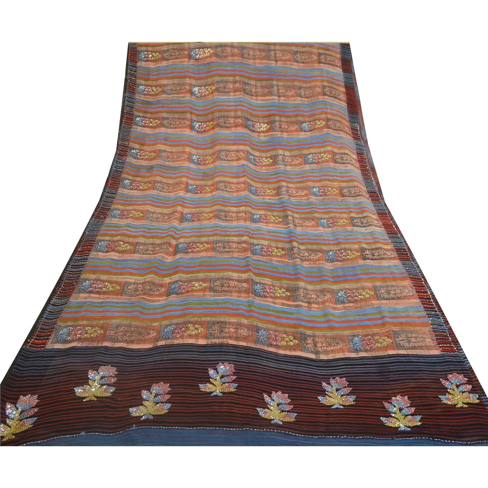 Санскритские винтажные сари, расшитые вручную бисером, чистый шелк-жоржет, сари, ремесло, устойчивая ткань
