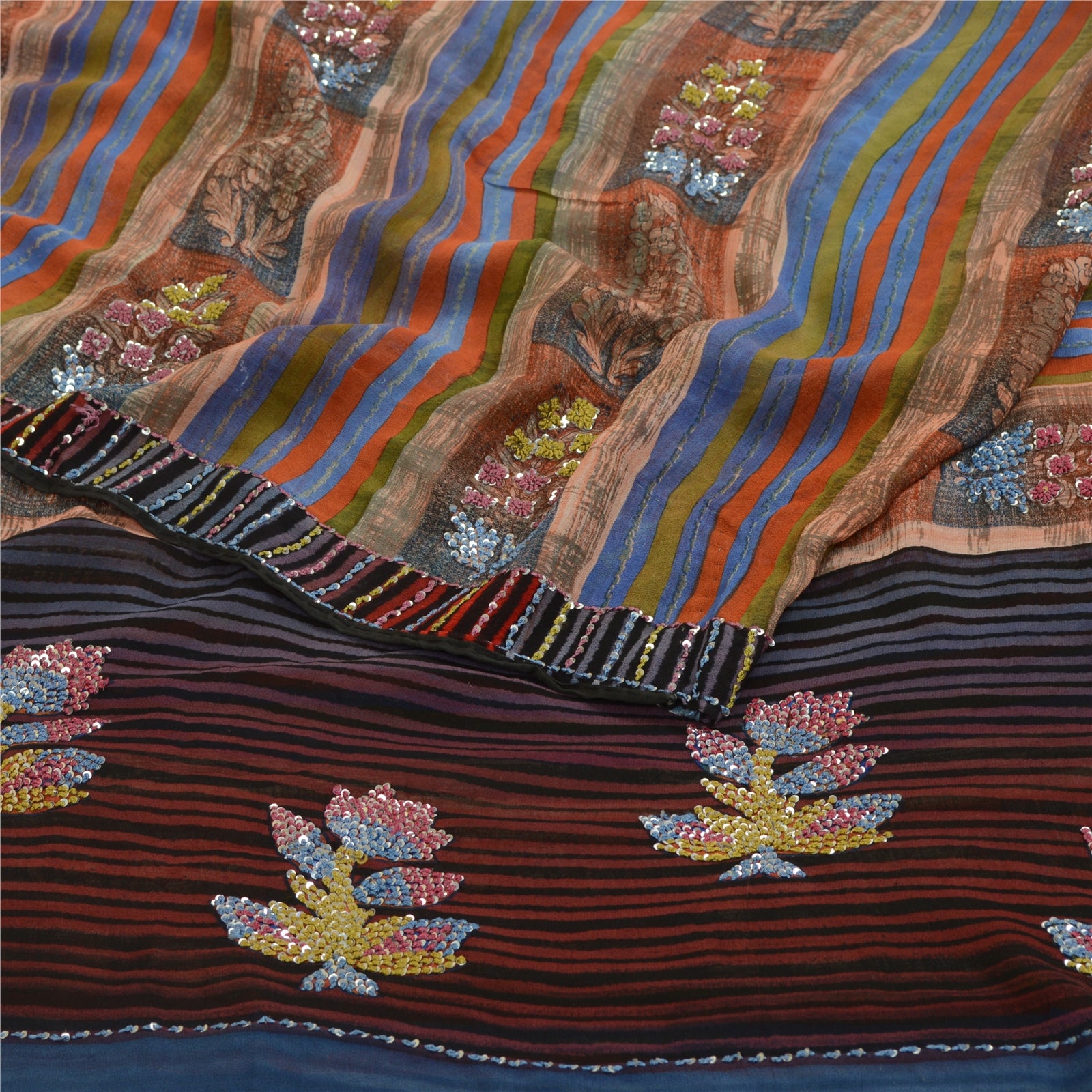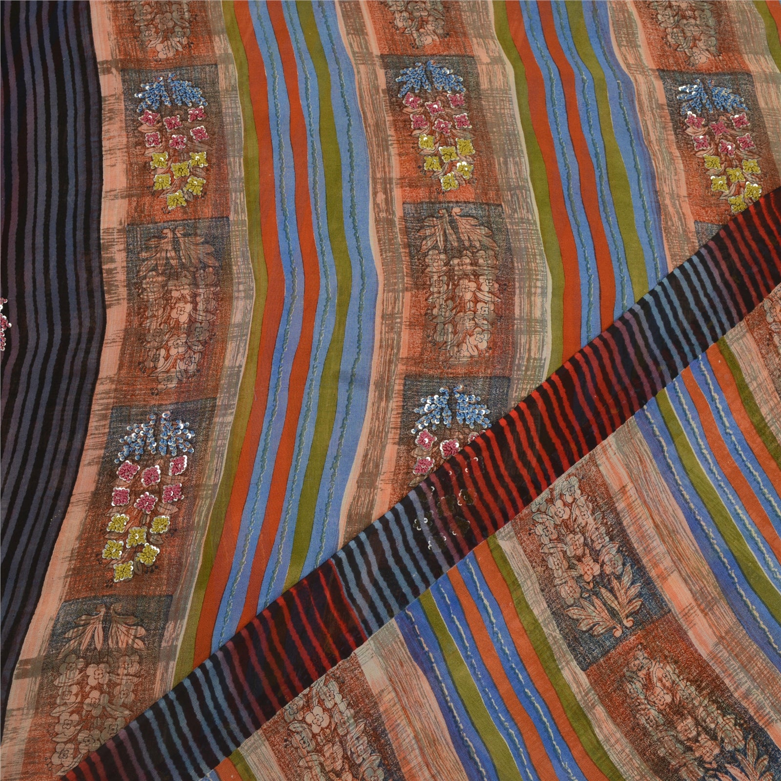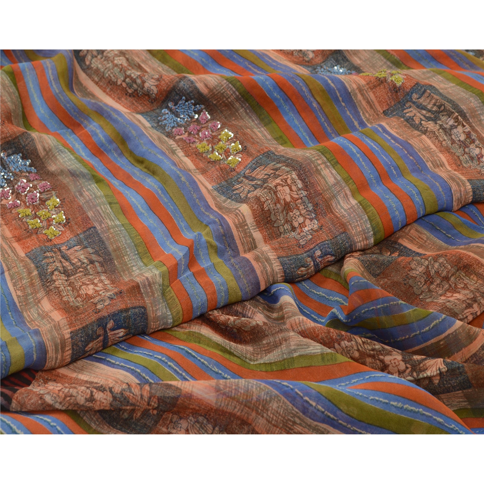 Санскритские винтажные сари, расшитые вручную бисером, чистый шелк-жоржет, сари, ремесло, устойчивая ткань