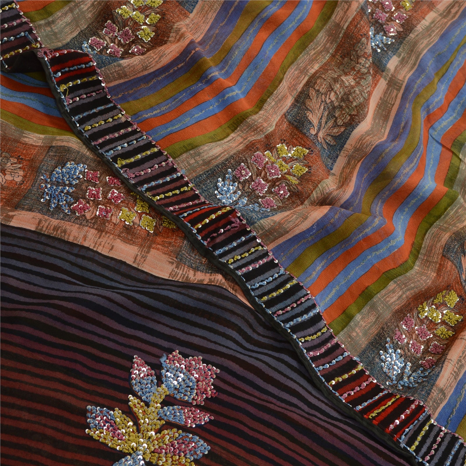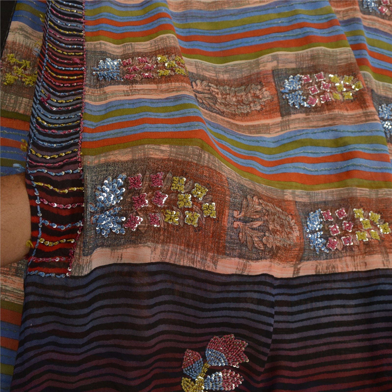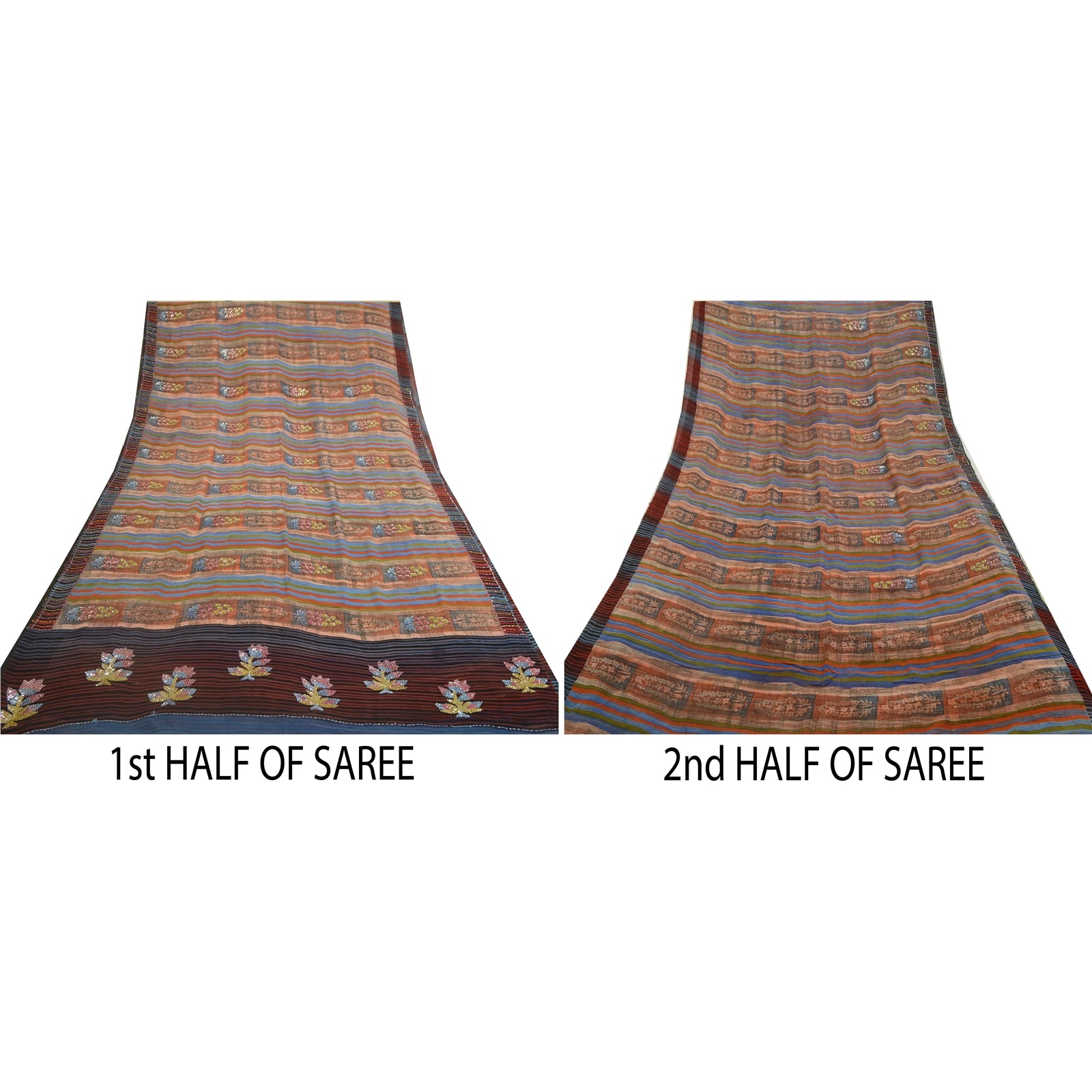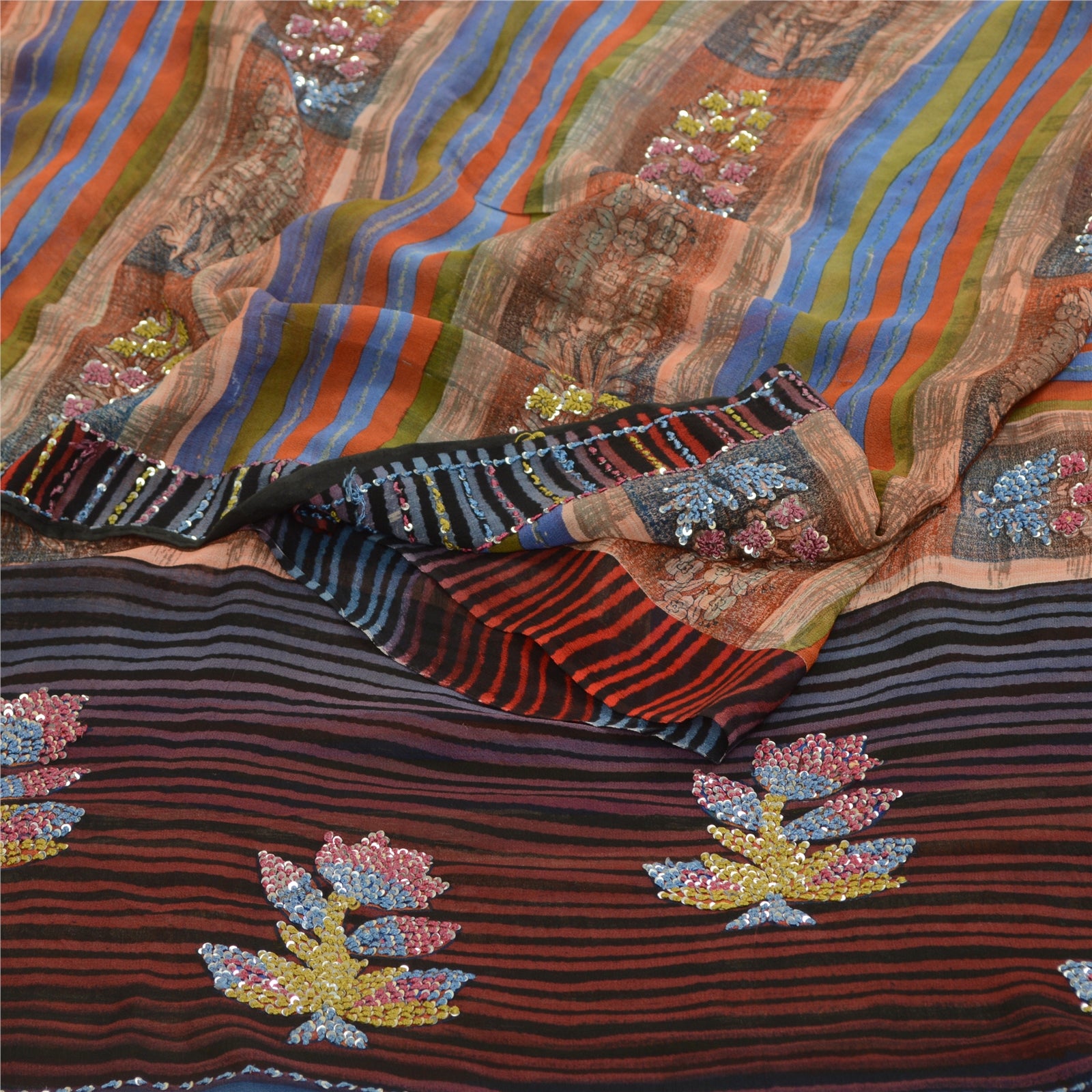 Санскритские винтажные сари, расшитые вручную бисером, чистый шелк-жоржет, сари, ремесло, устойчивая ткань