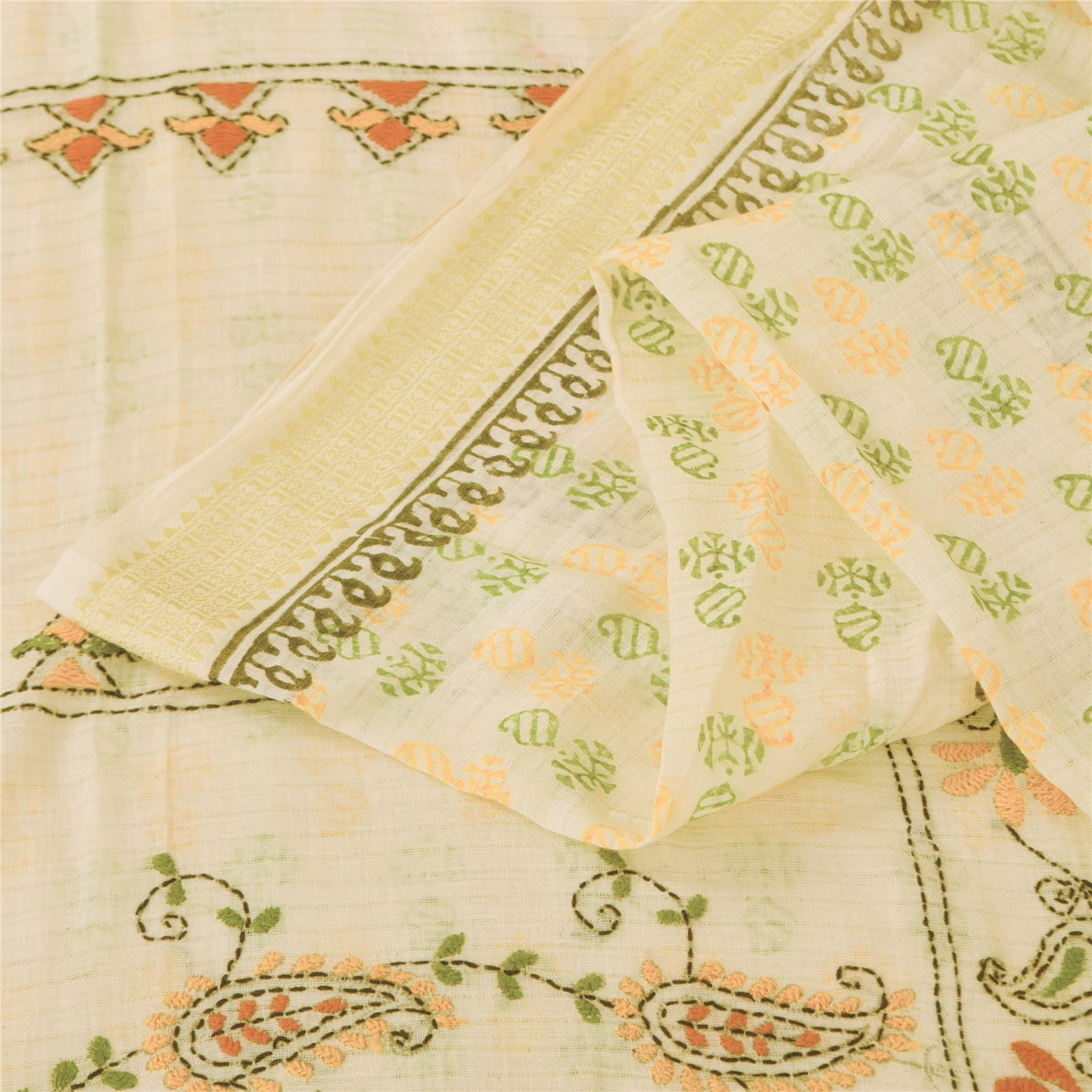 Санскритские винтажные сари, вышитые вручную и вручную блокированные, ткань для сари из чистого хлопка, устойчивая ткань