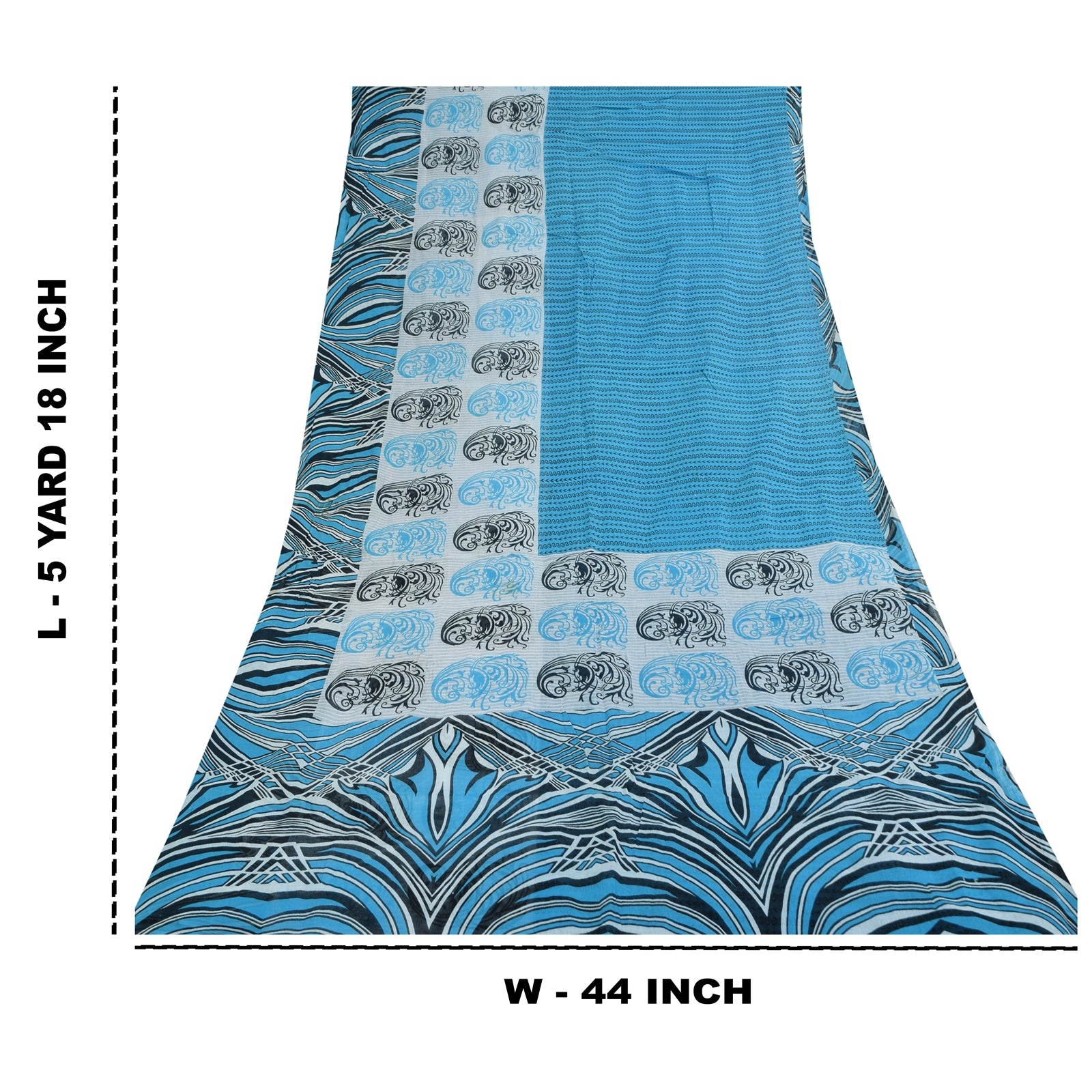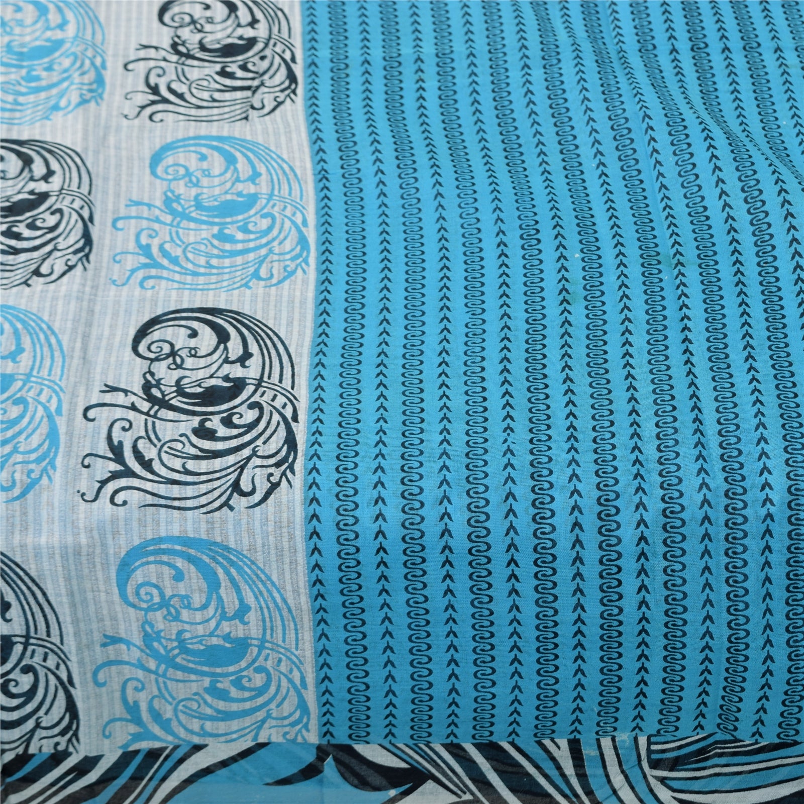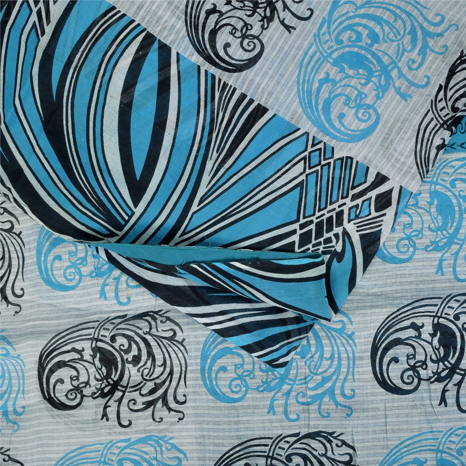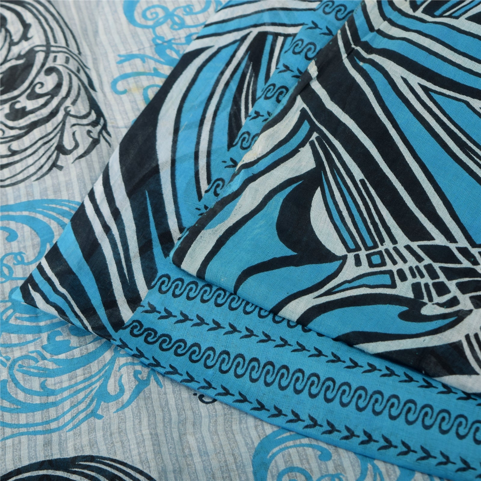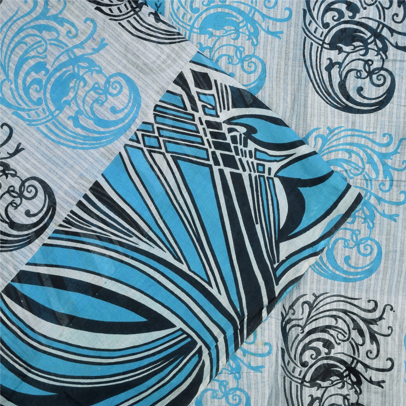 Санскритские винтажные сари индийское синее чистое хлопковое сари с принтом 5+ ярдов ткань для рукоделия из экологически чистой ткани