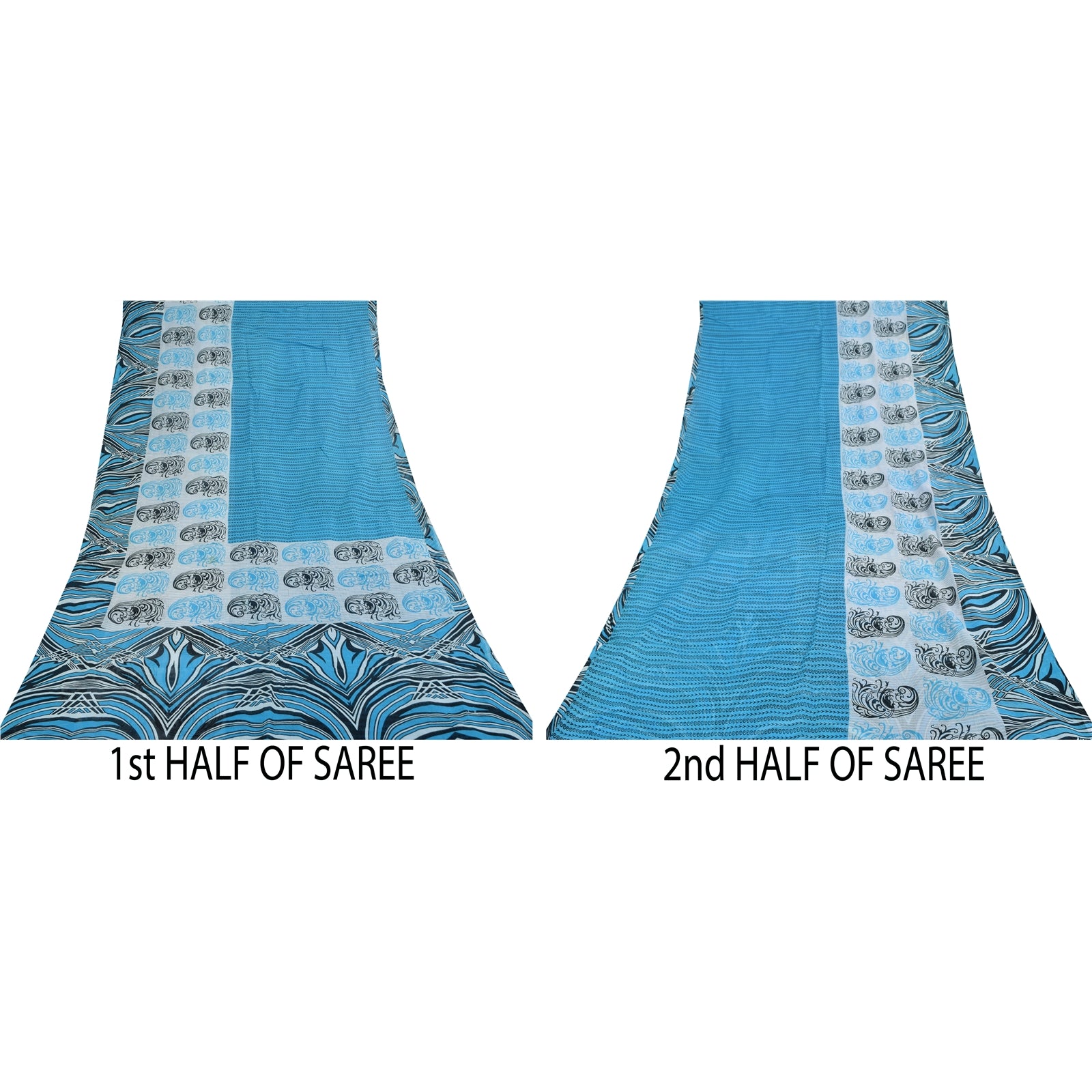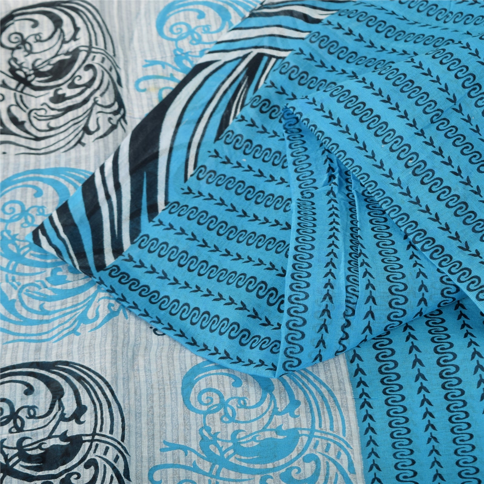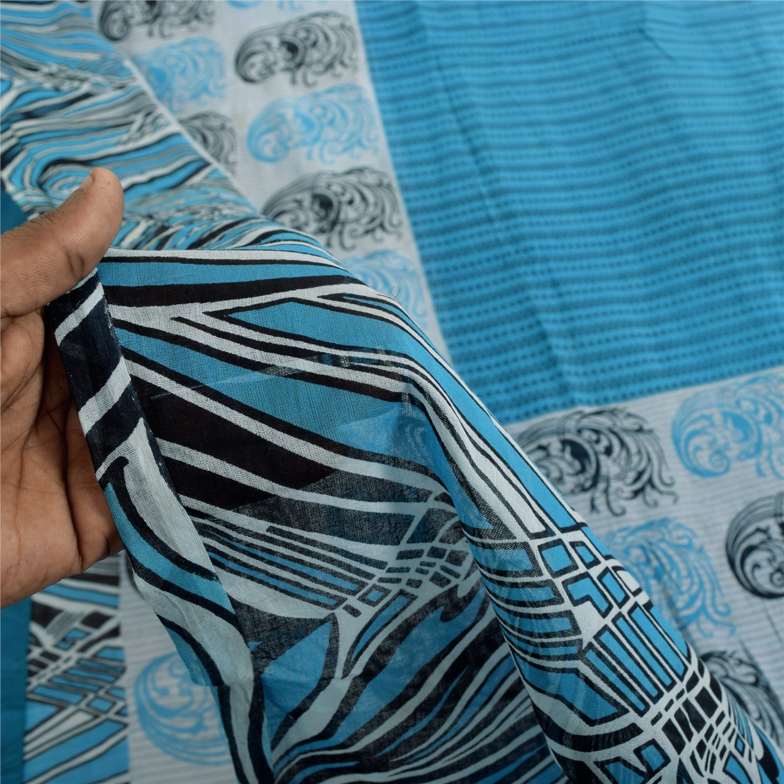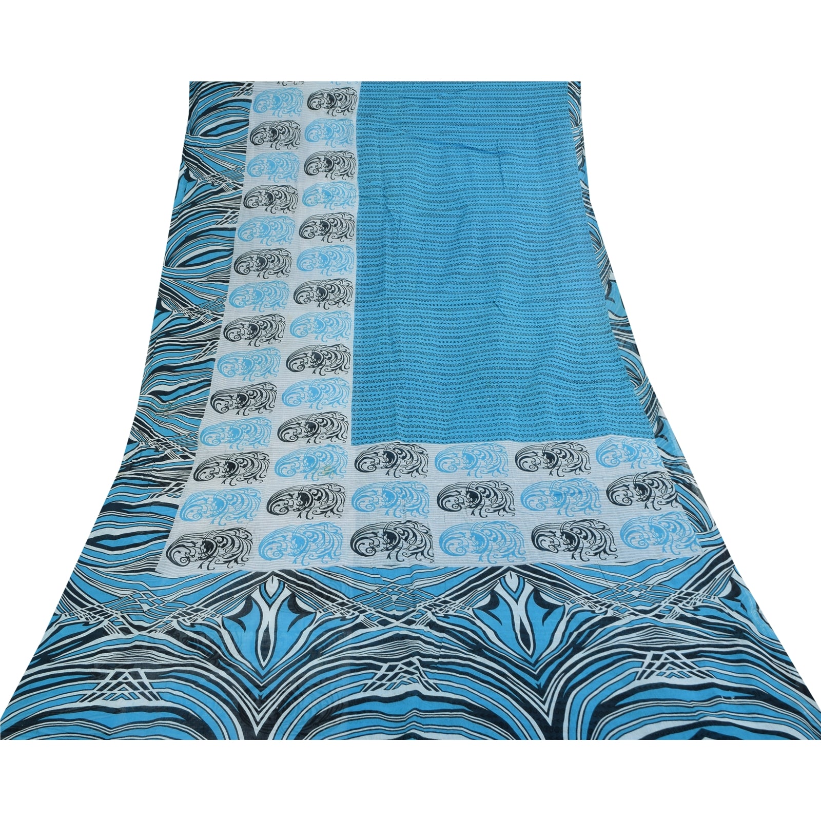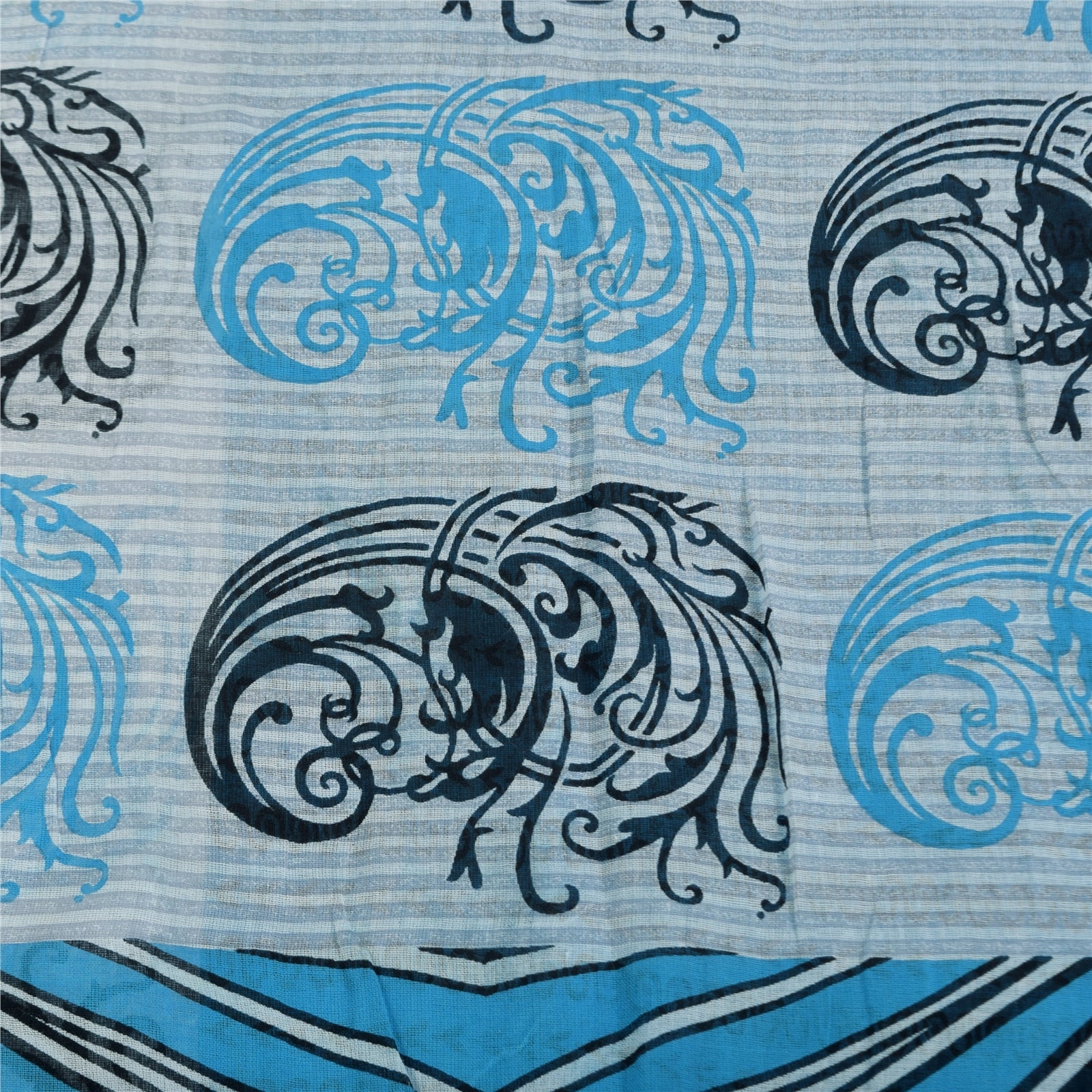 Санскритские винтажные сари индийское синее чистое хлопковое сари с принтом 5+ ярдов ткань для рукоделия из экологически чистой ткани