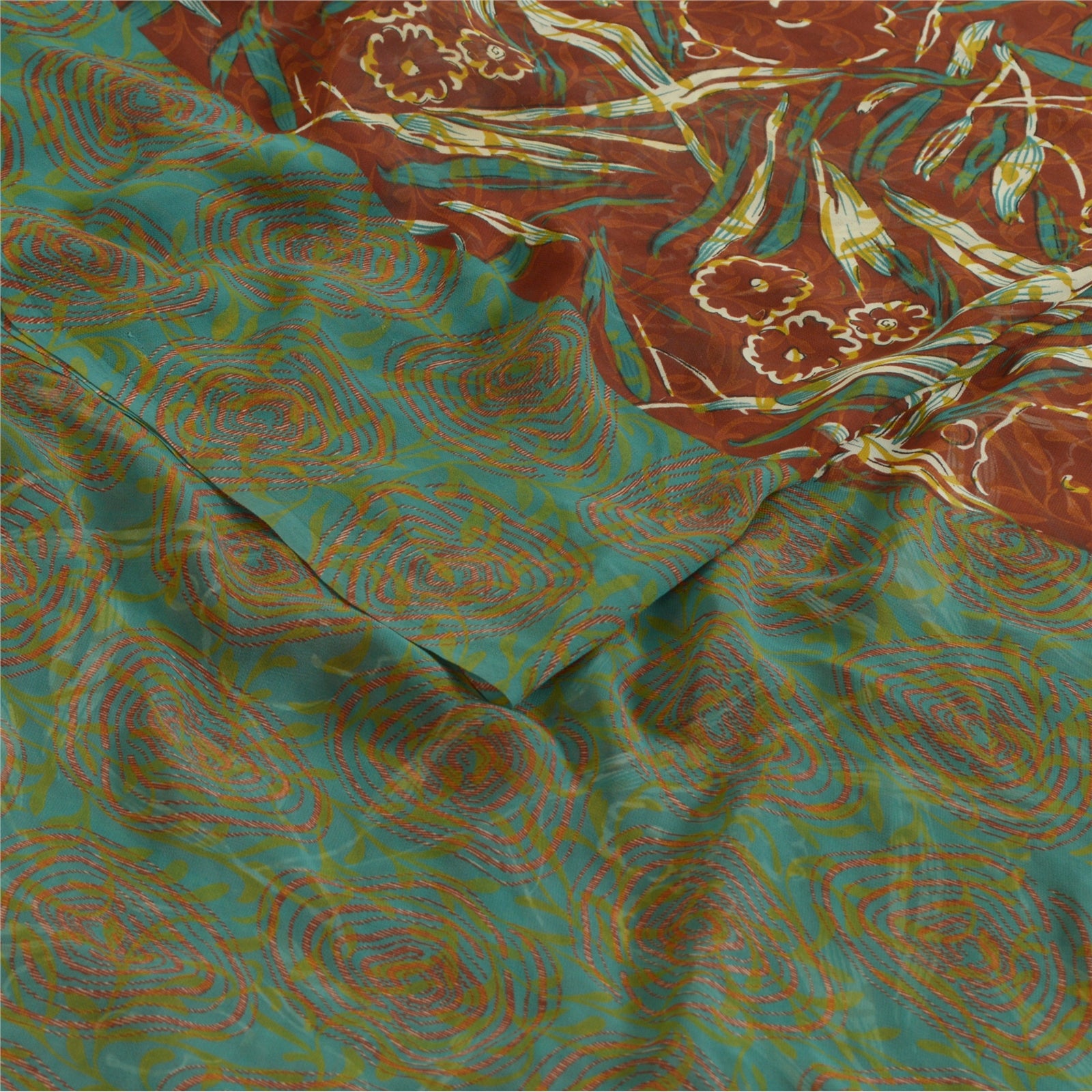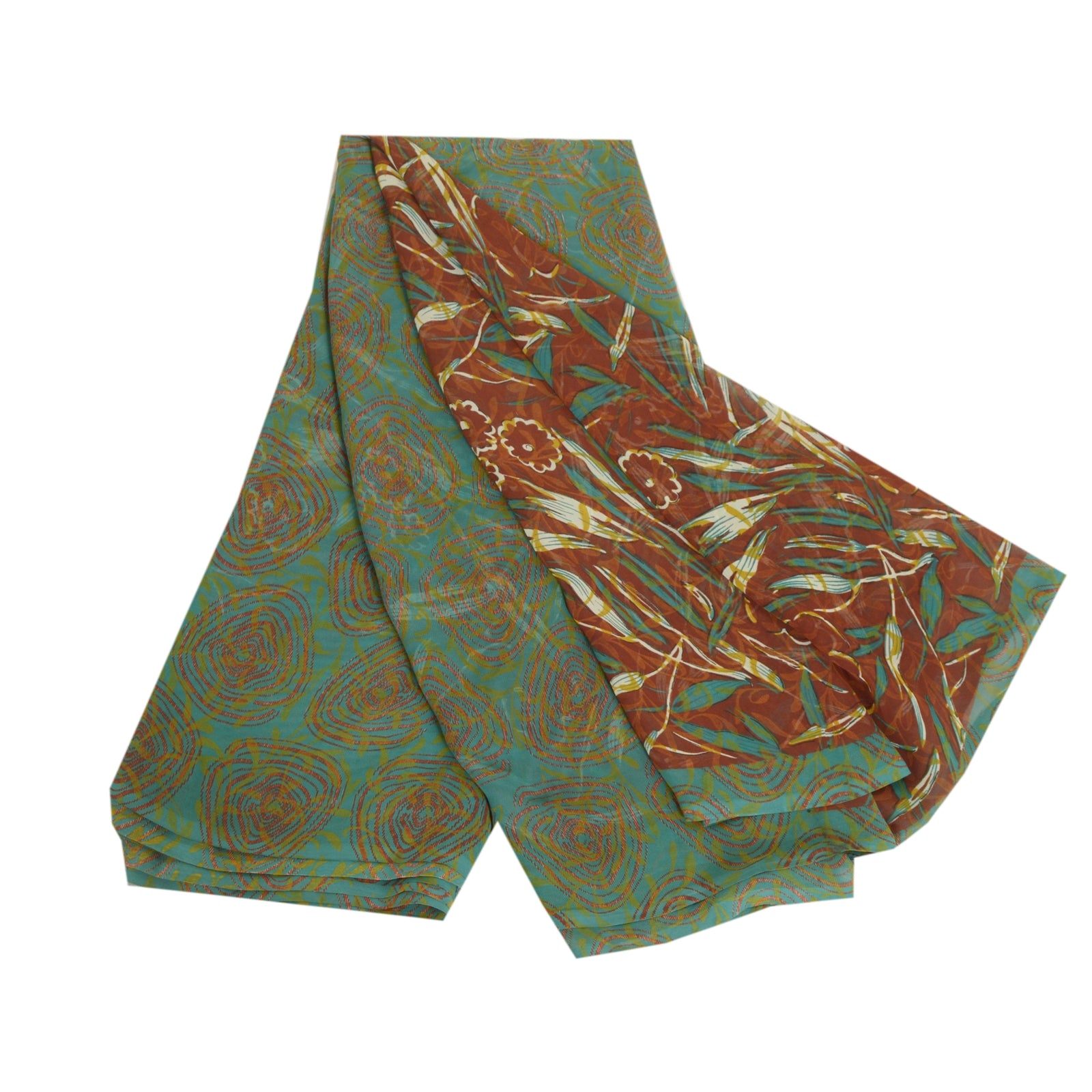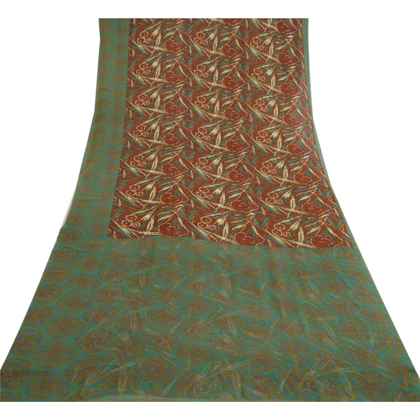 Санскритские винтажные сари индийское коричневое/зеленое жоржетовое сари с принтом ремесло устойчивая ткань