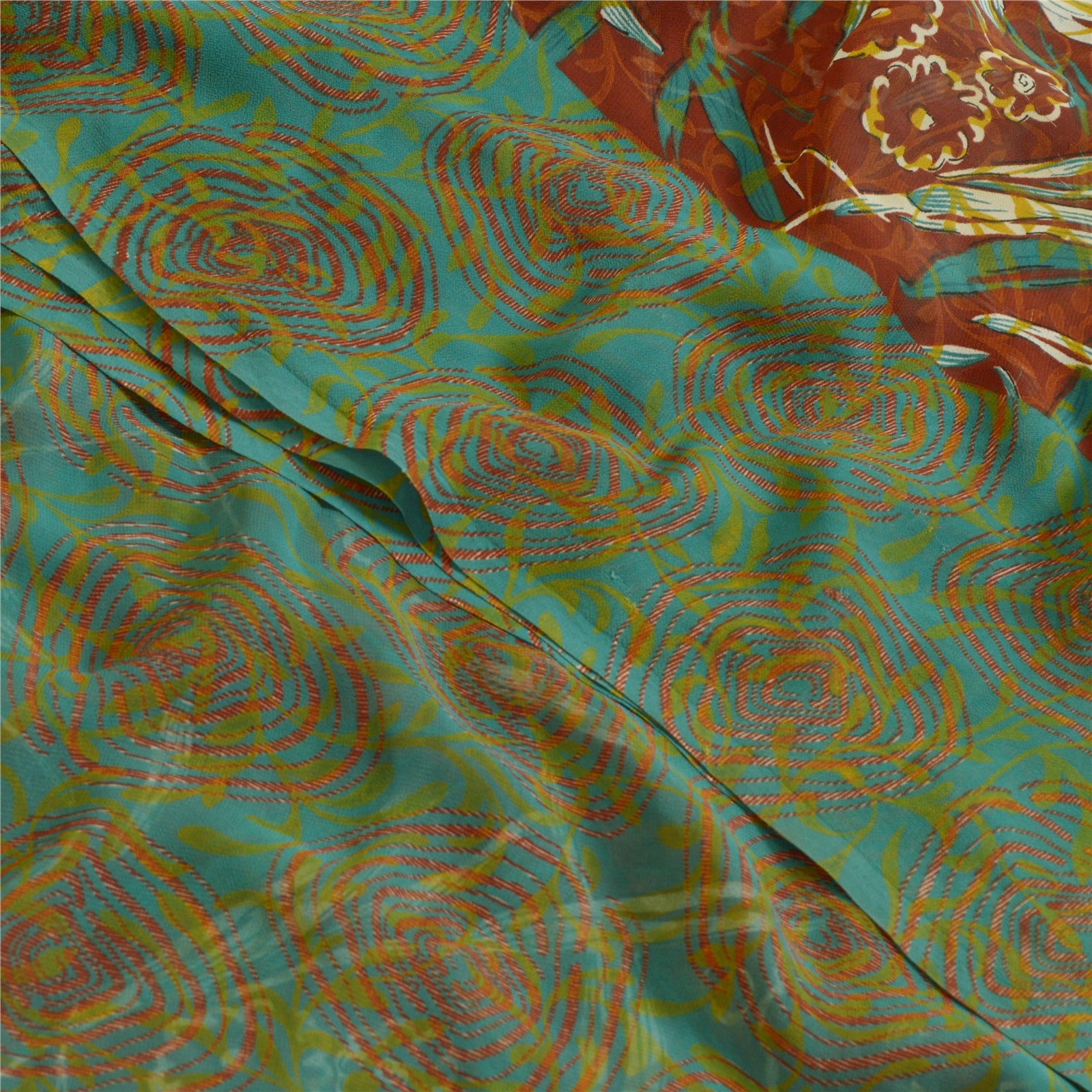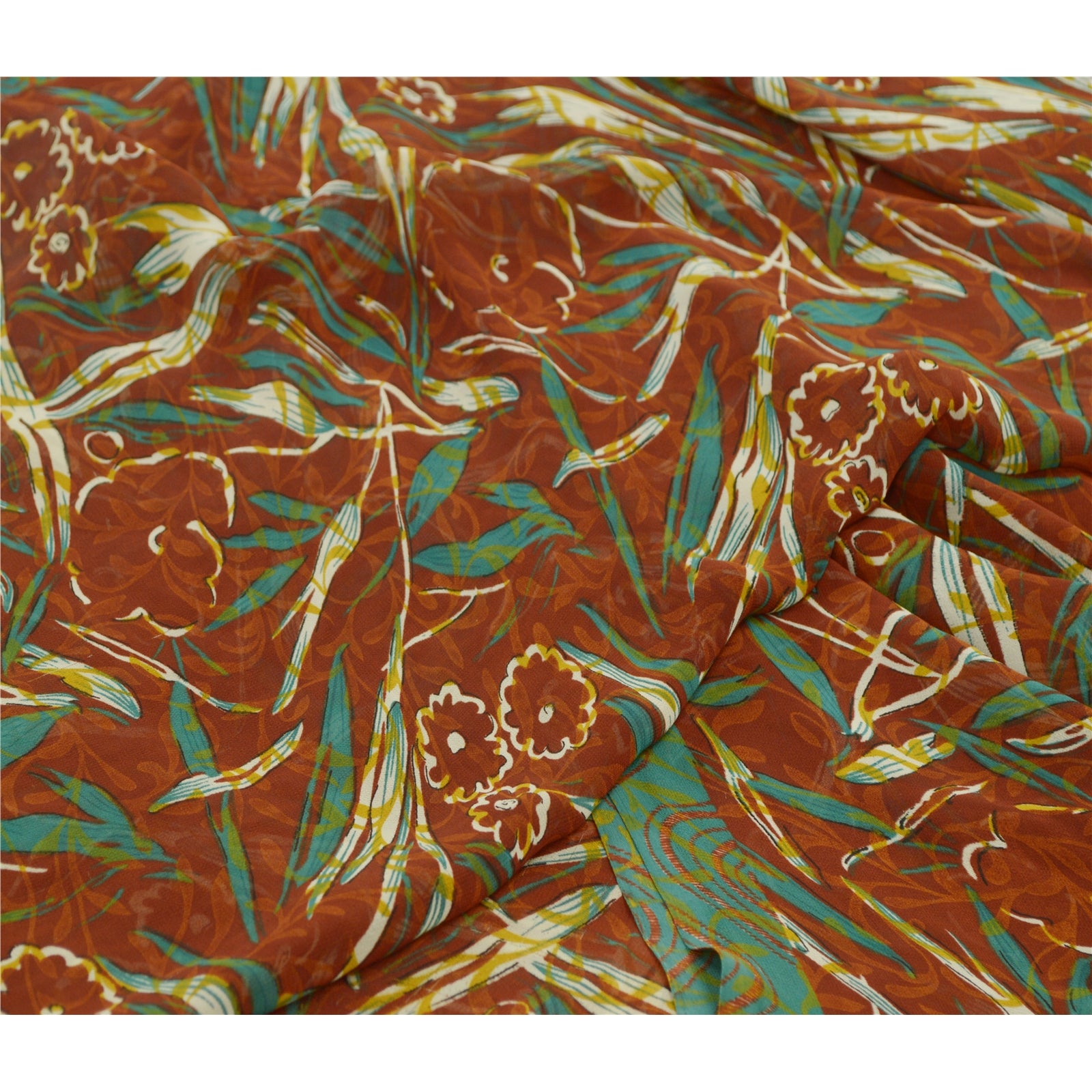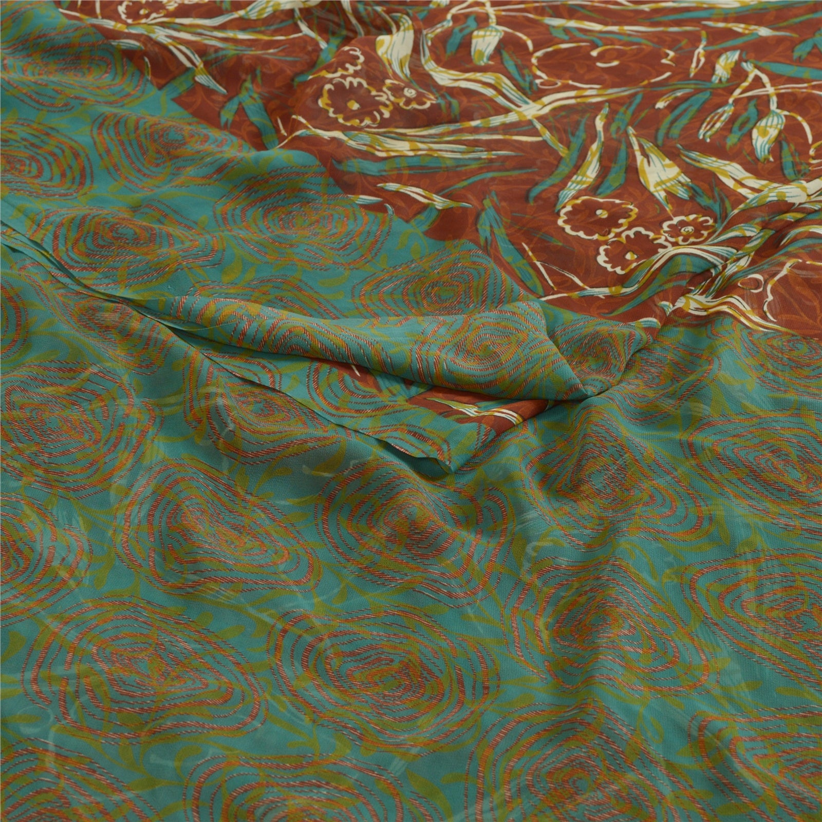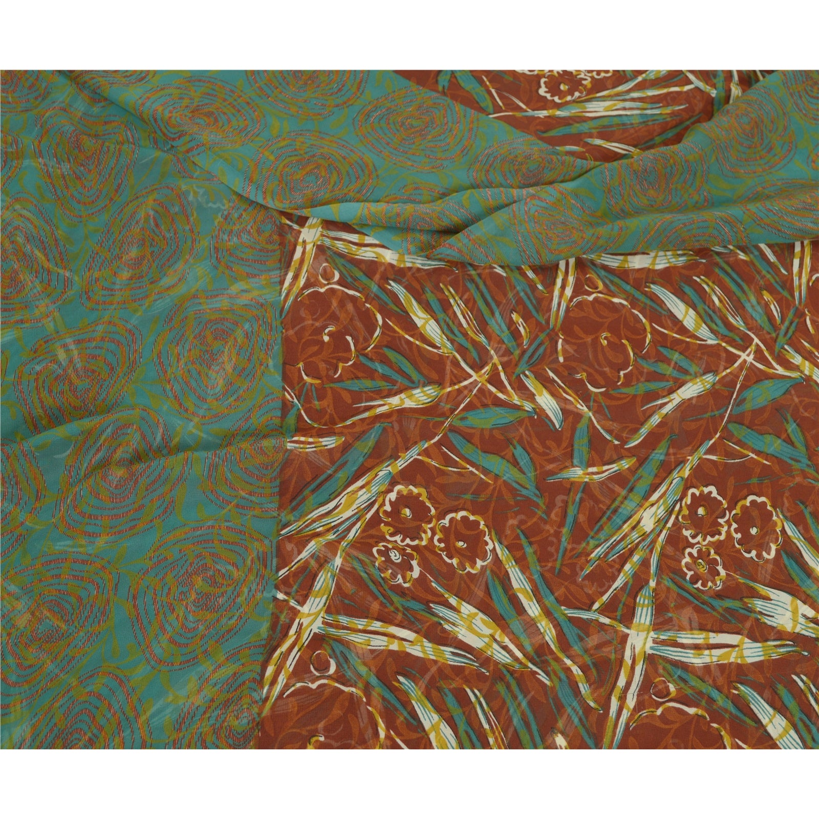 Санскритские винтажные сари индийское коричневое/зеленое жоржетовое сари с принтом ремесло устойчивая ткань