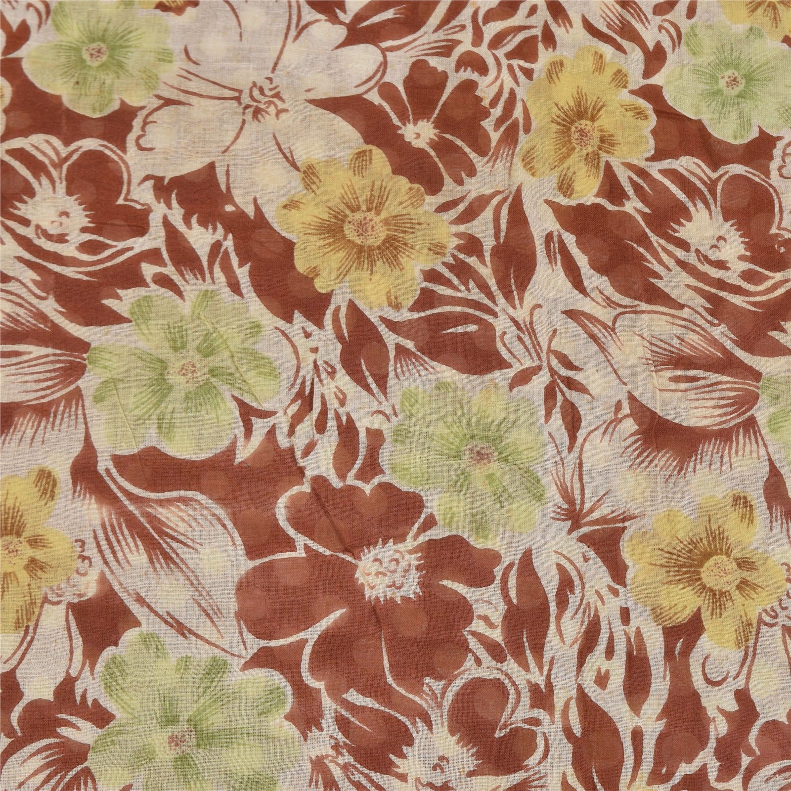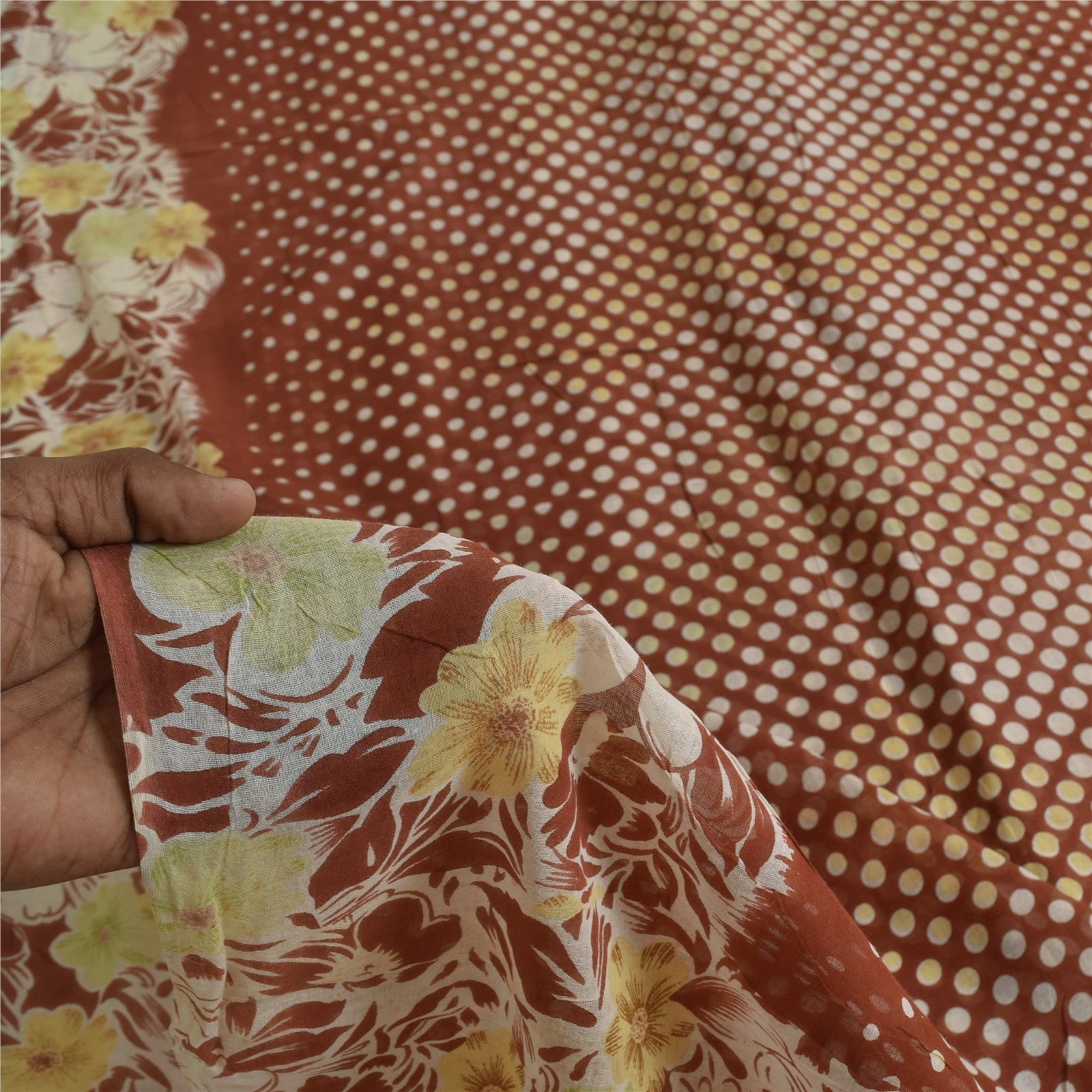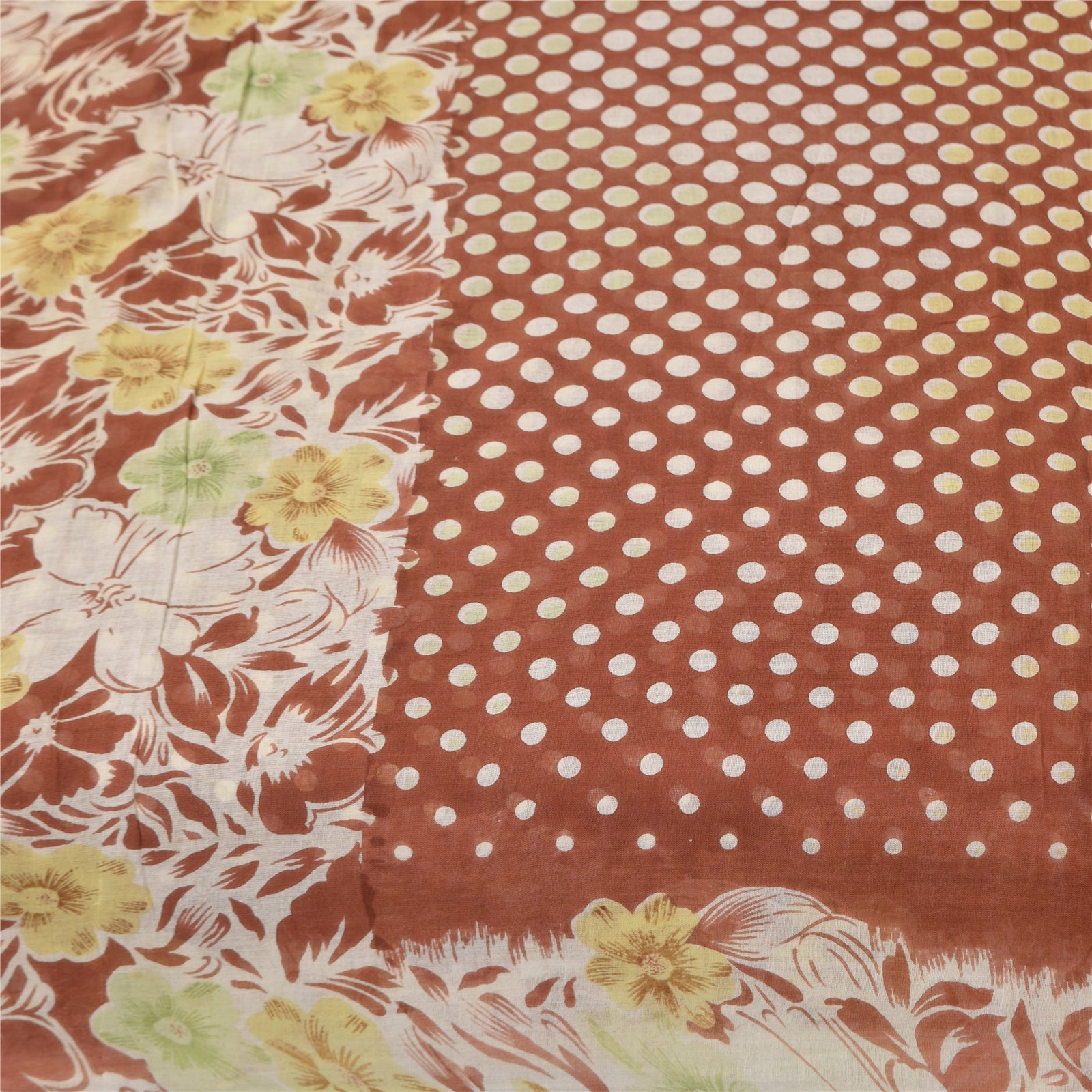 Санскритские винтажные сари индийское коричневое чистое хлопковое сари с принтом 5+ ярдов ремесленная устойчивая ткань