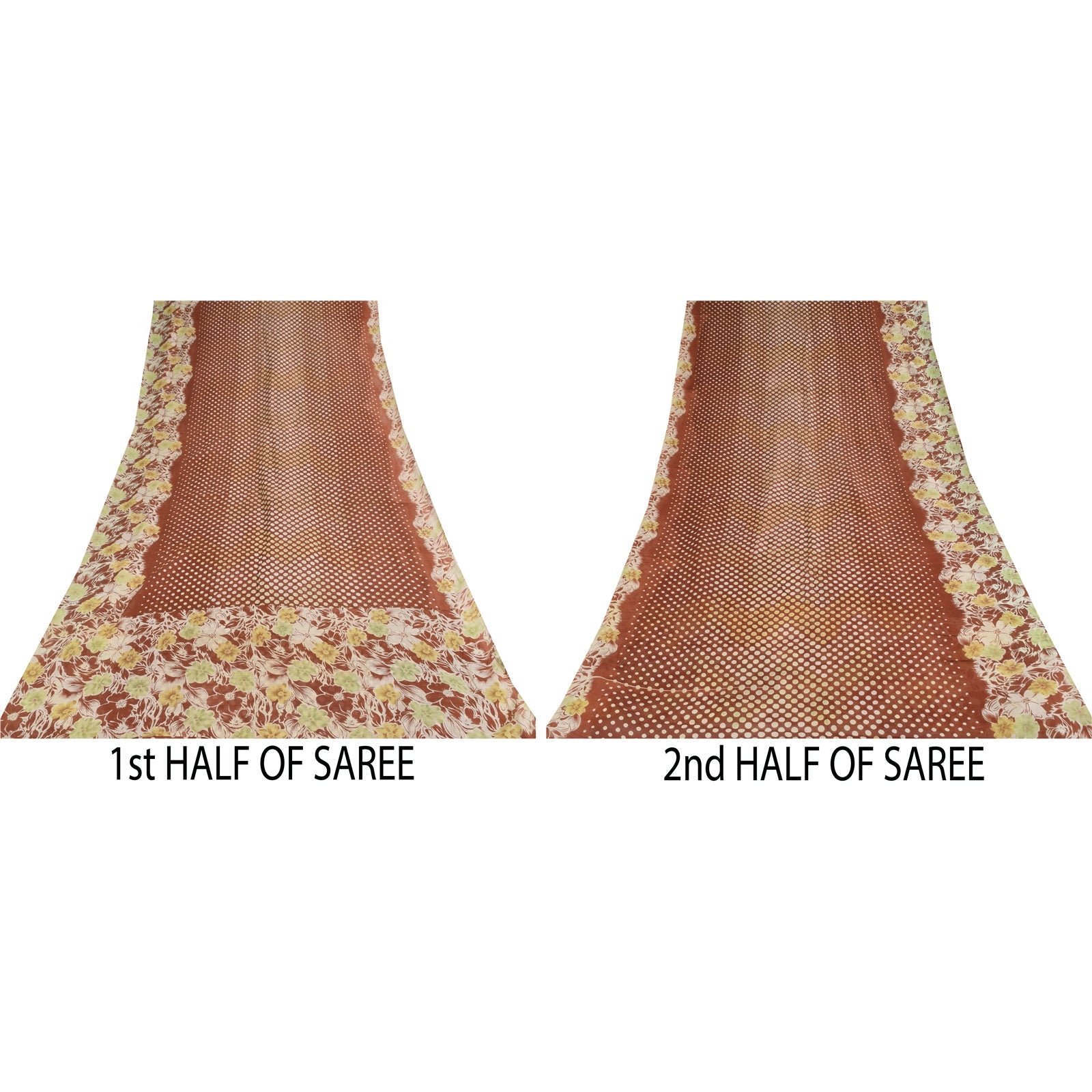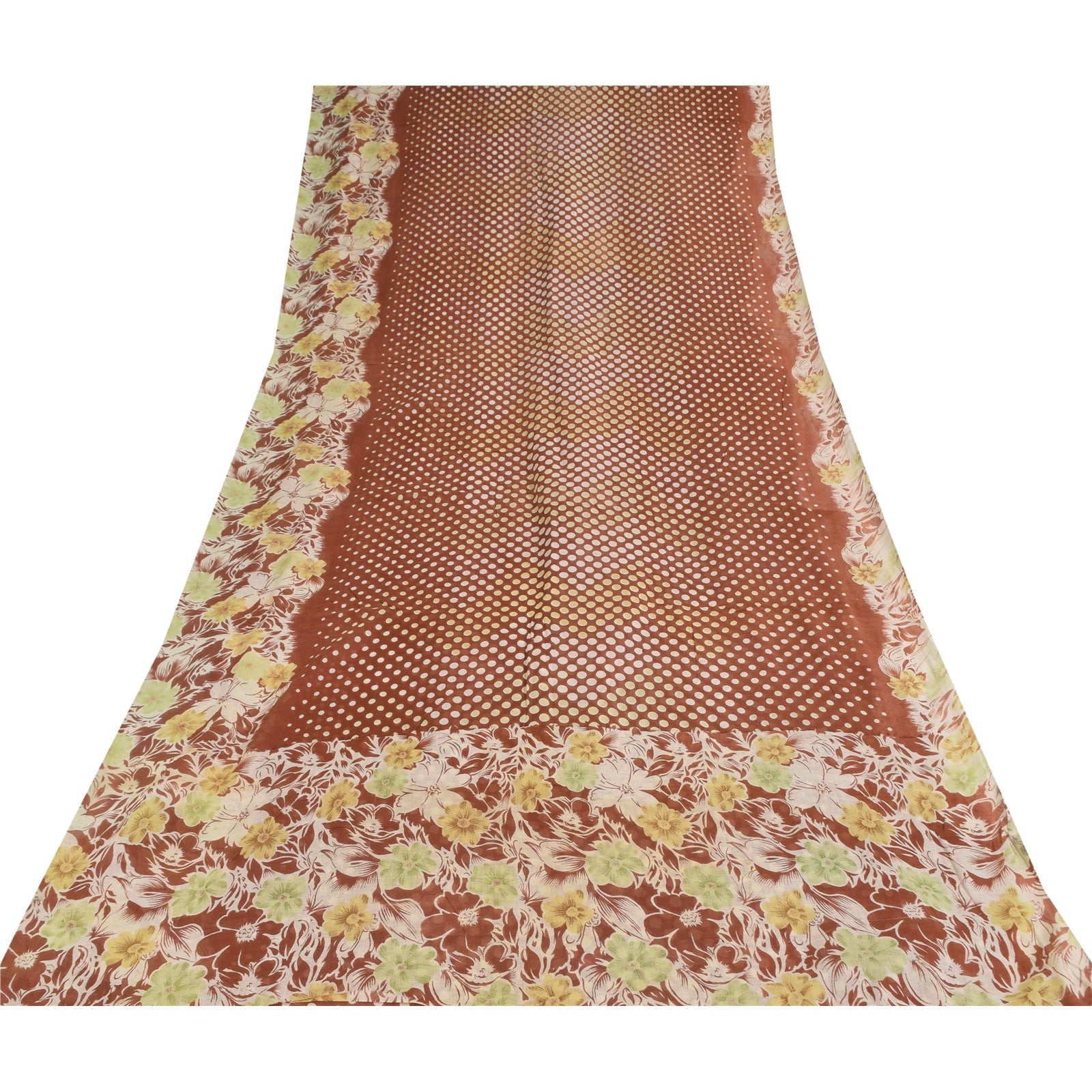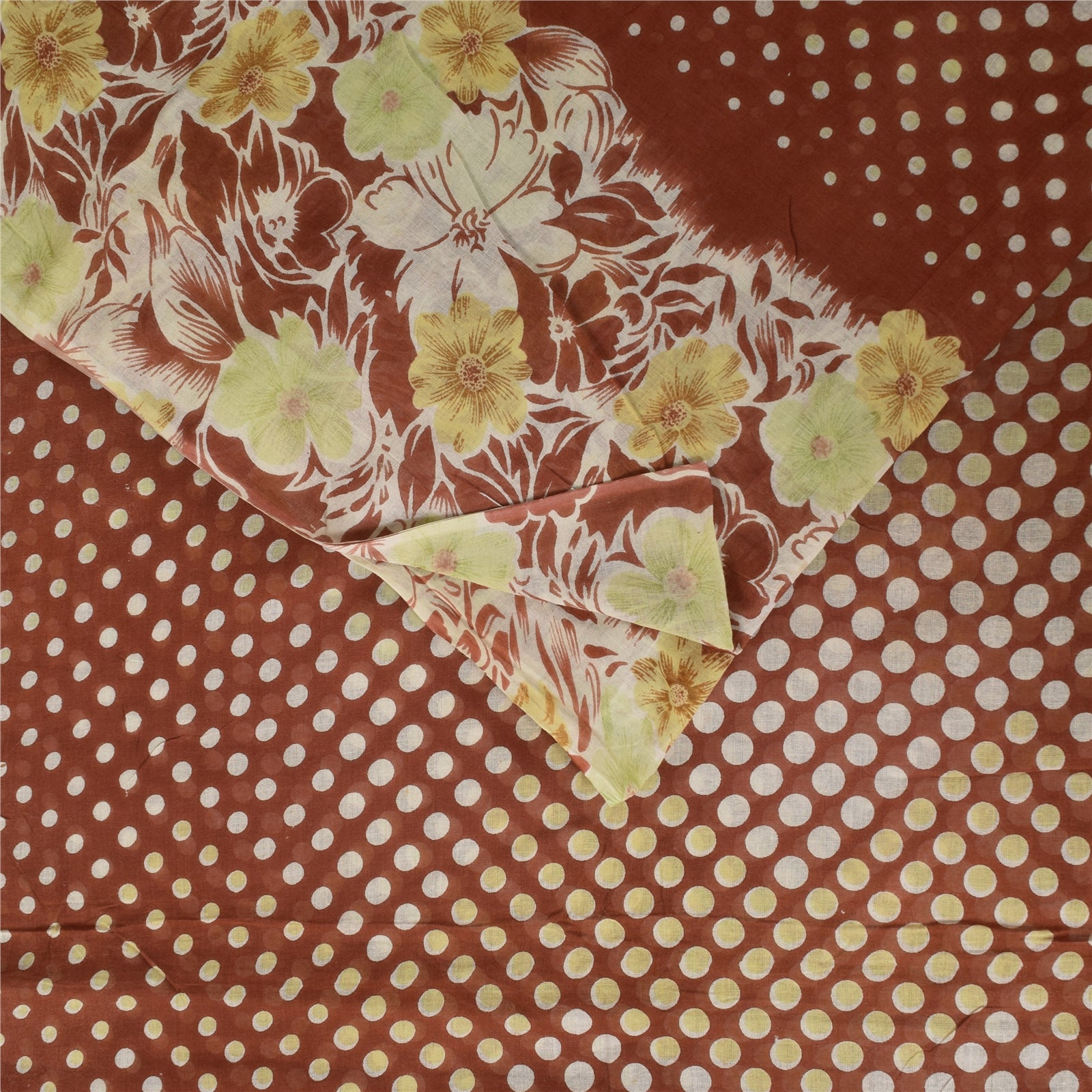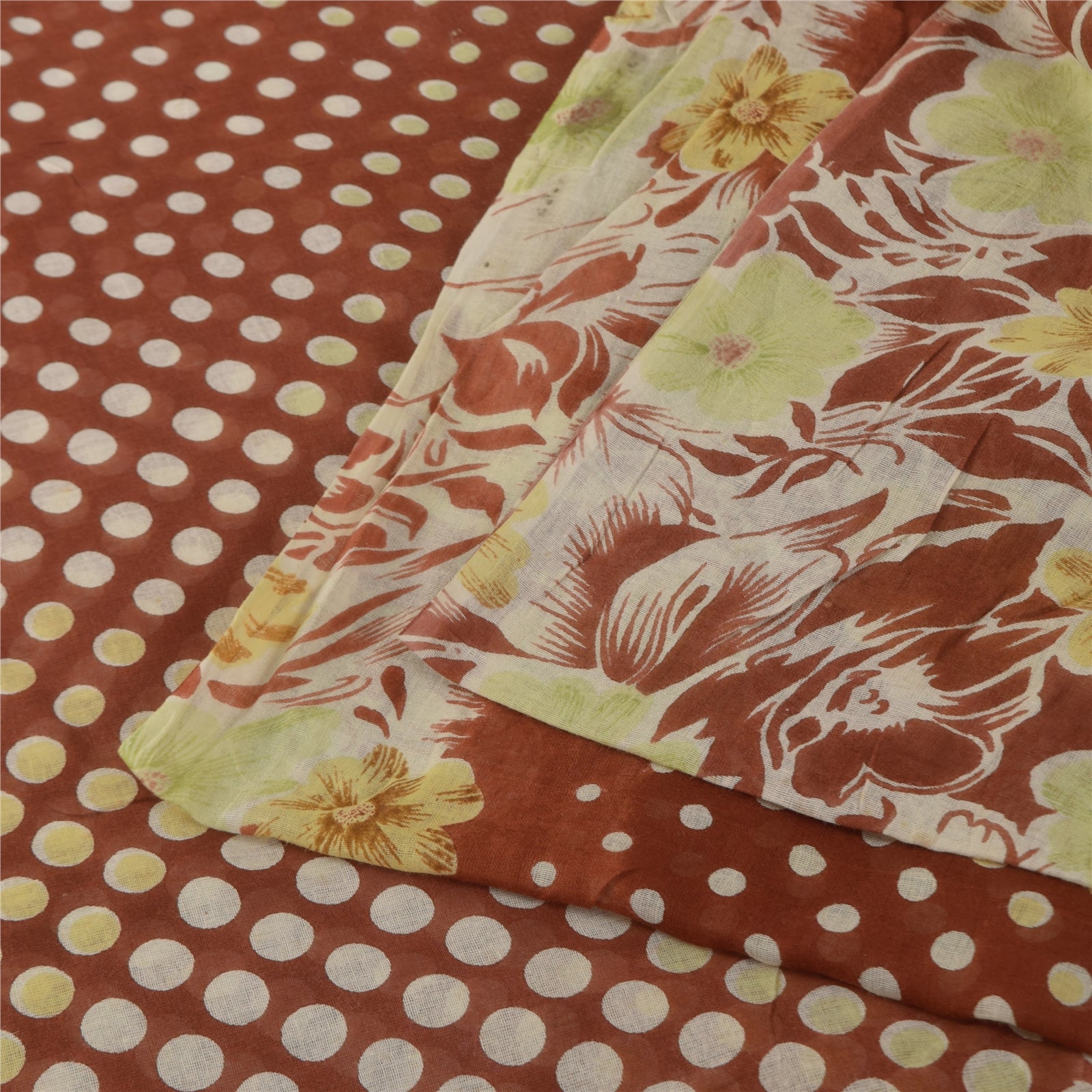 Санскритские винтажные сари индийское коричневое чистое хлопковое сари с принтом 5+ ярдов ремесленная устойчивая ткань