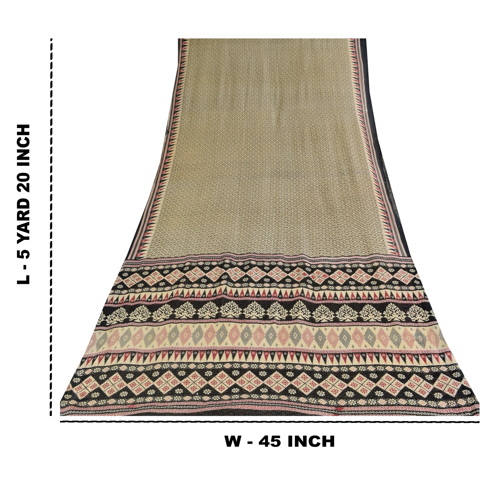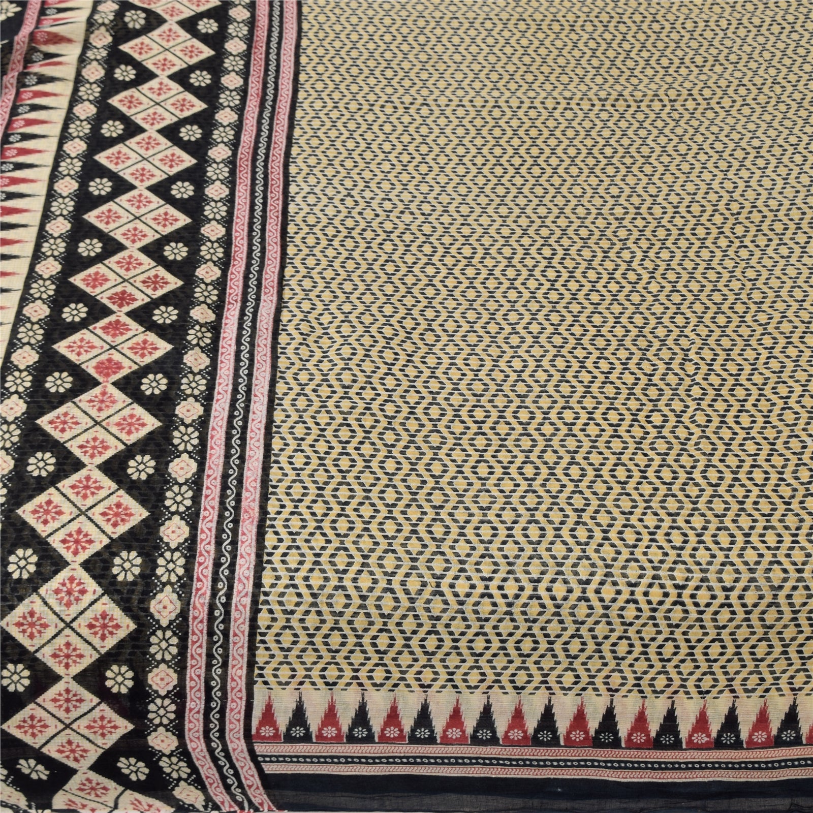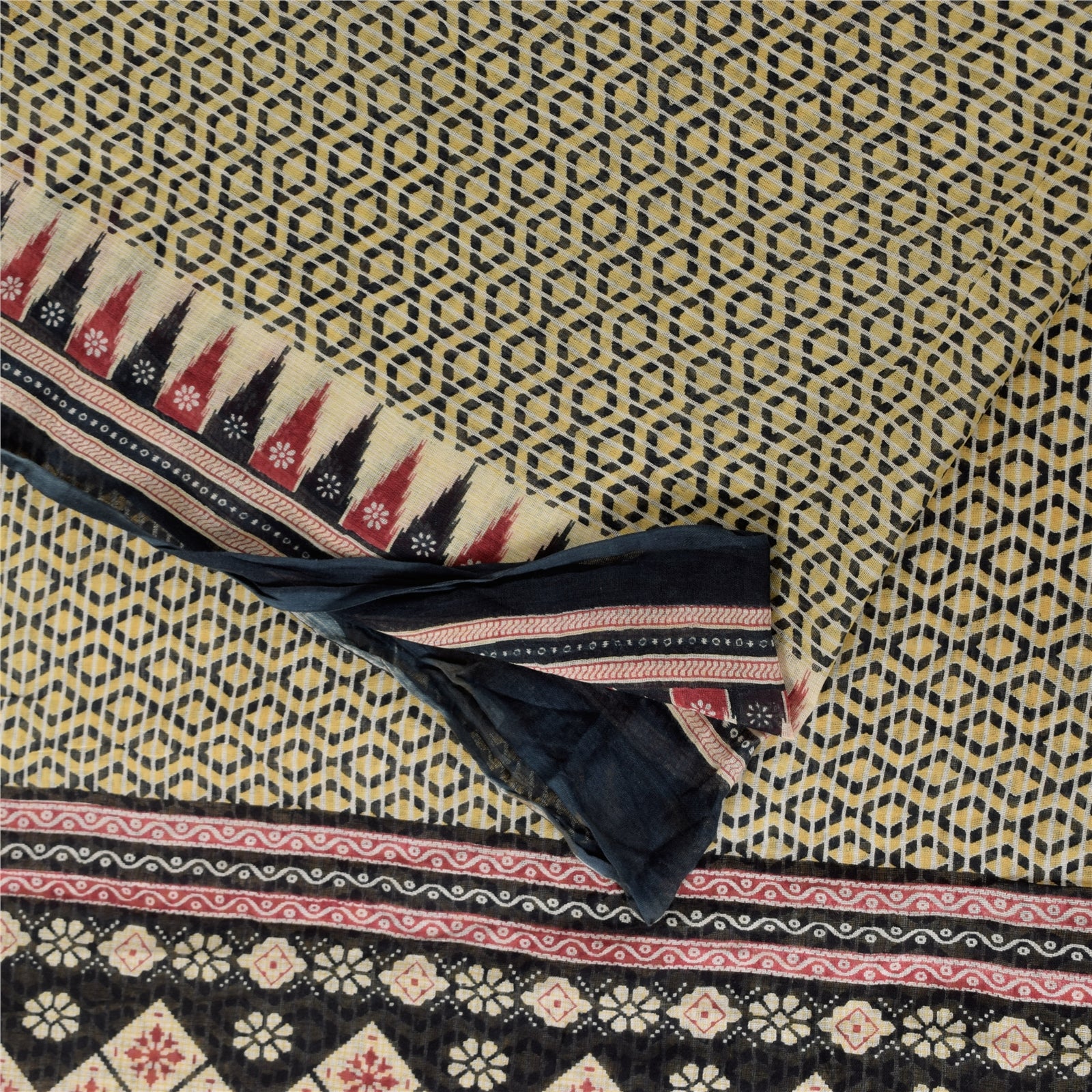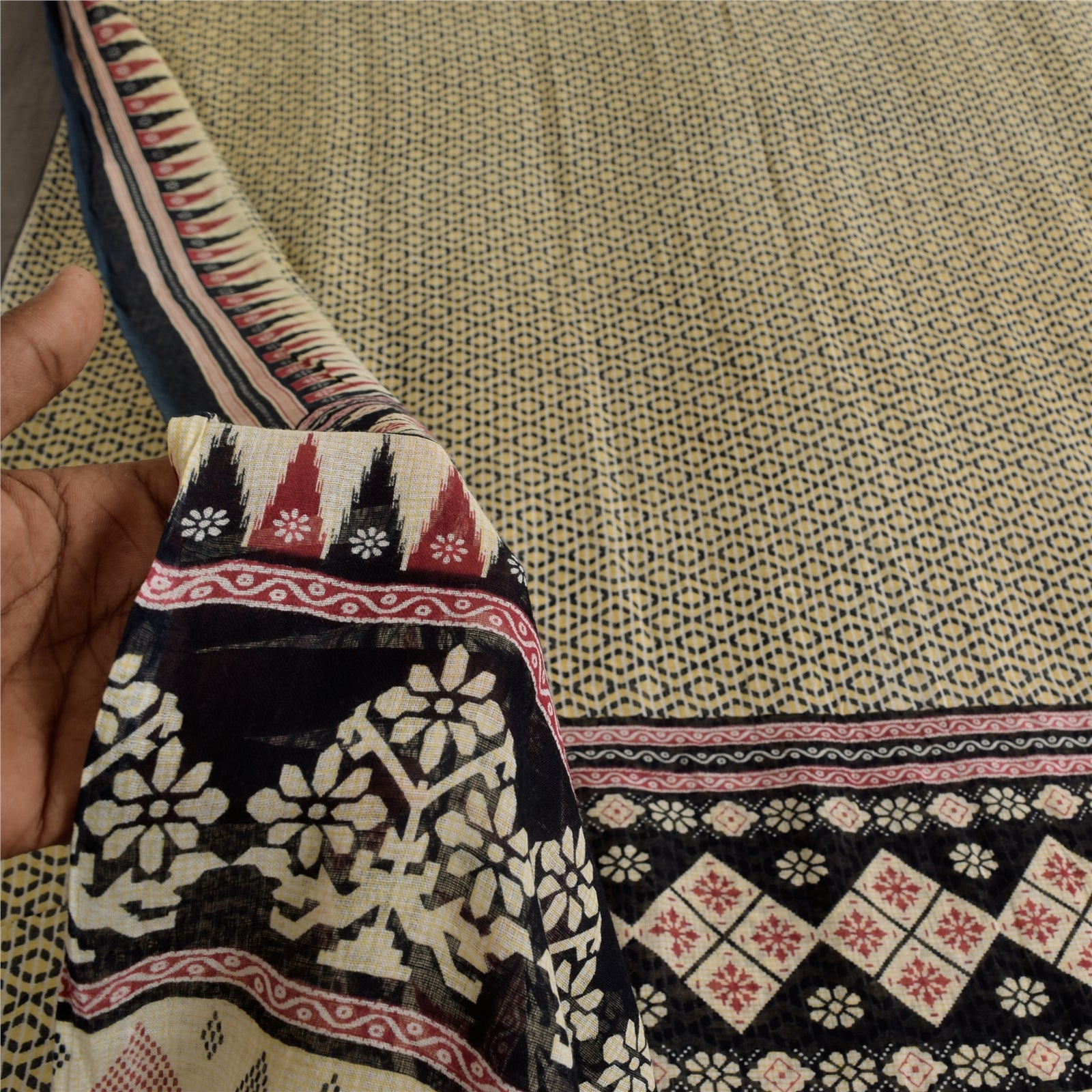 Санскритские винтажные сари индийское кремовое чистое хлопковое сари с принтом 5+ ярдов ткань для рукоделия из экологически чистой ткани
