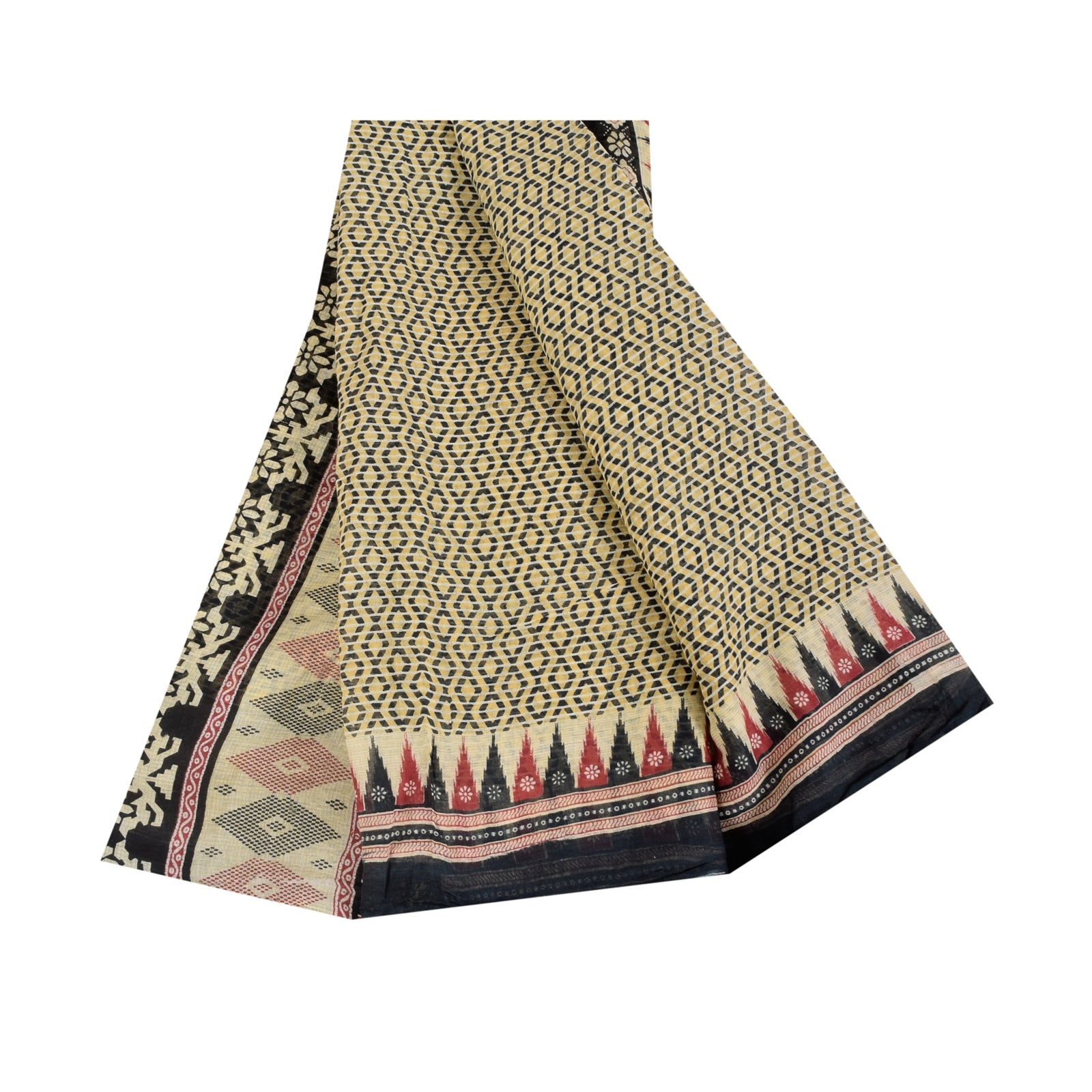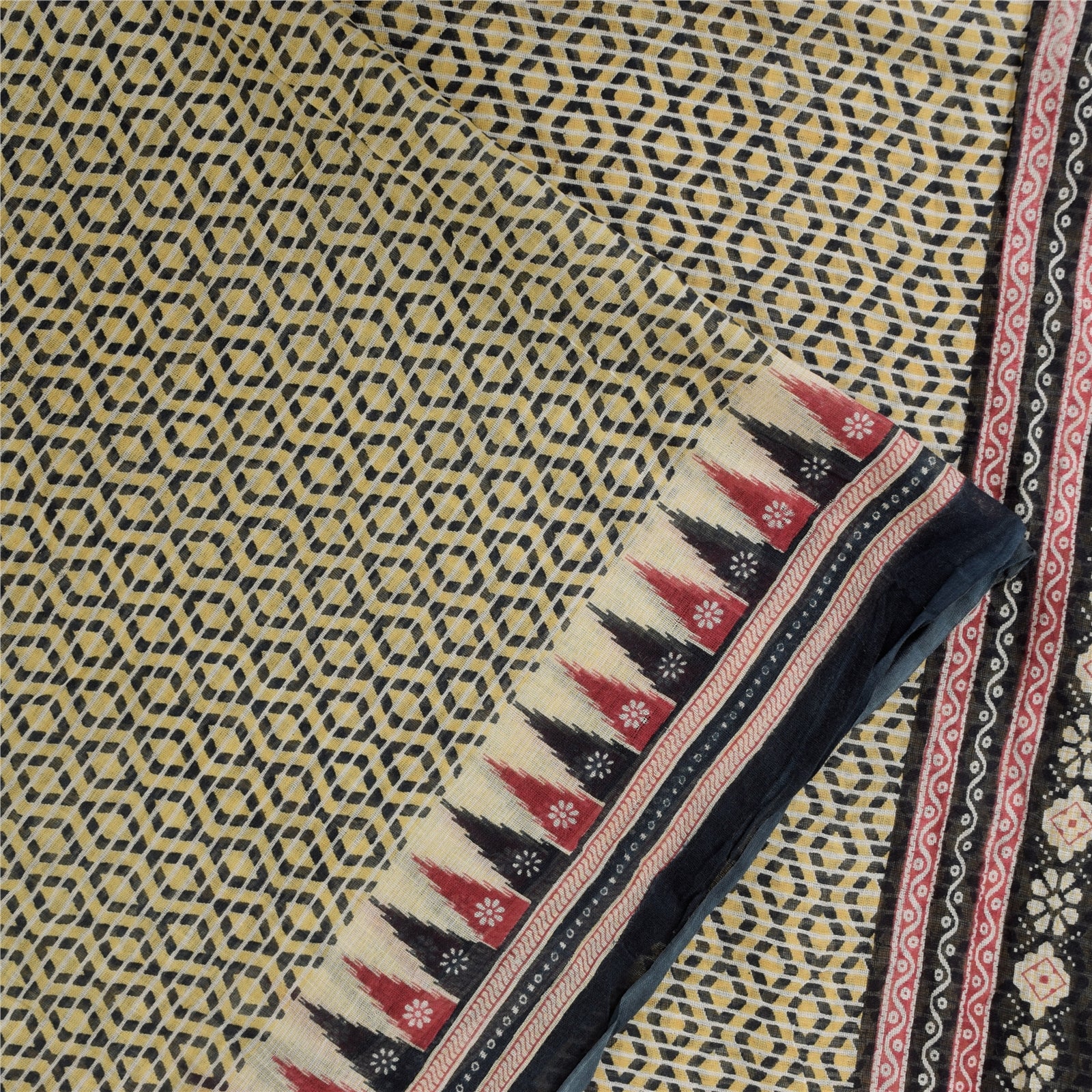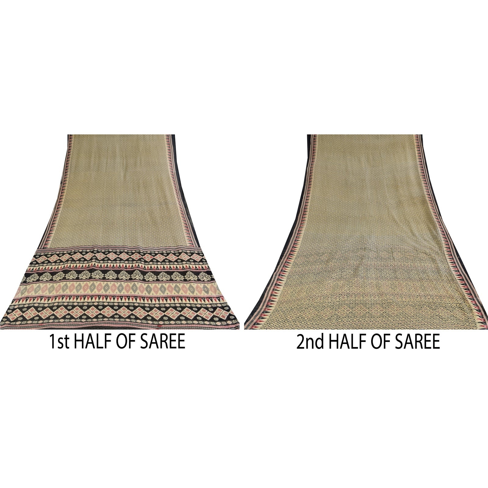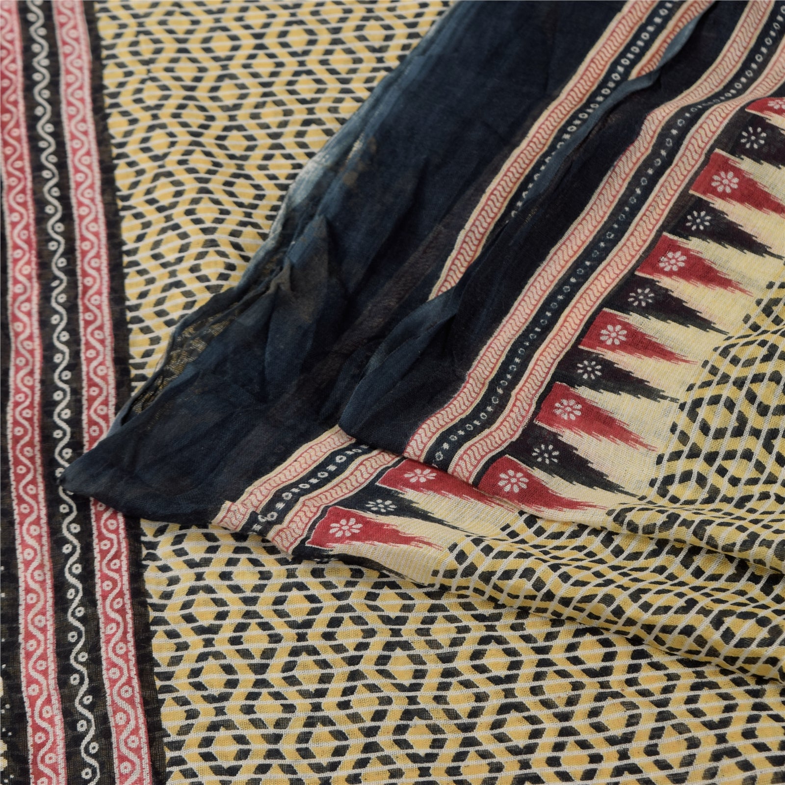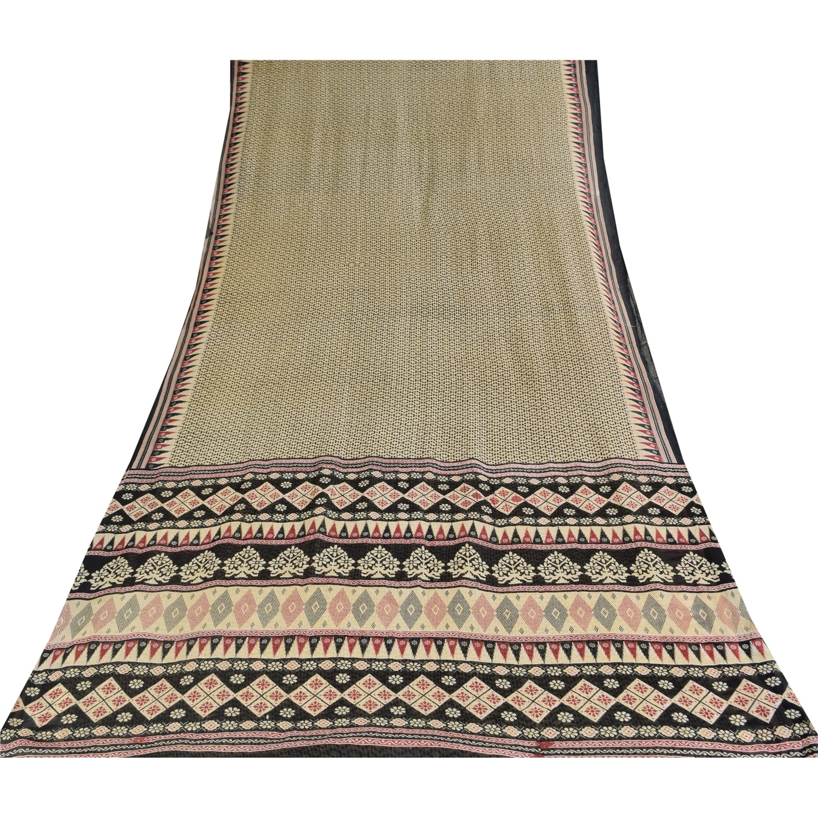 Санскритские винтажные сари индийское кремовое чистое хлопковое сари с принтом 5+ ярдов ткань для рукоделия из экологически чистой ткани