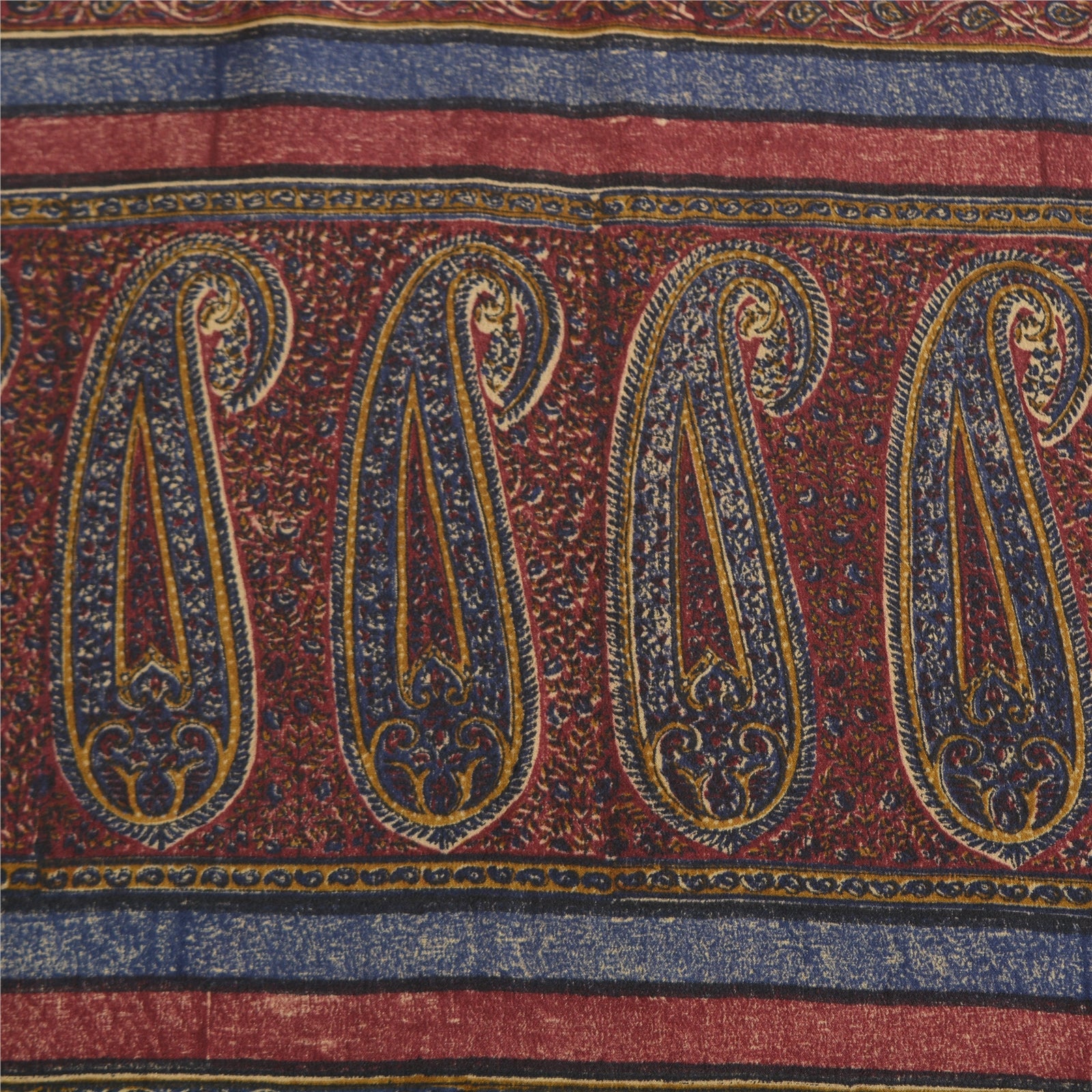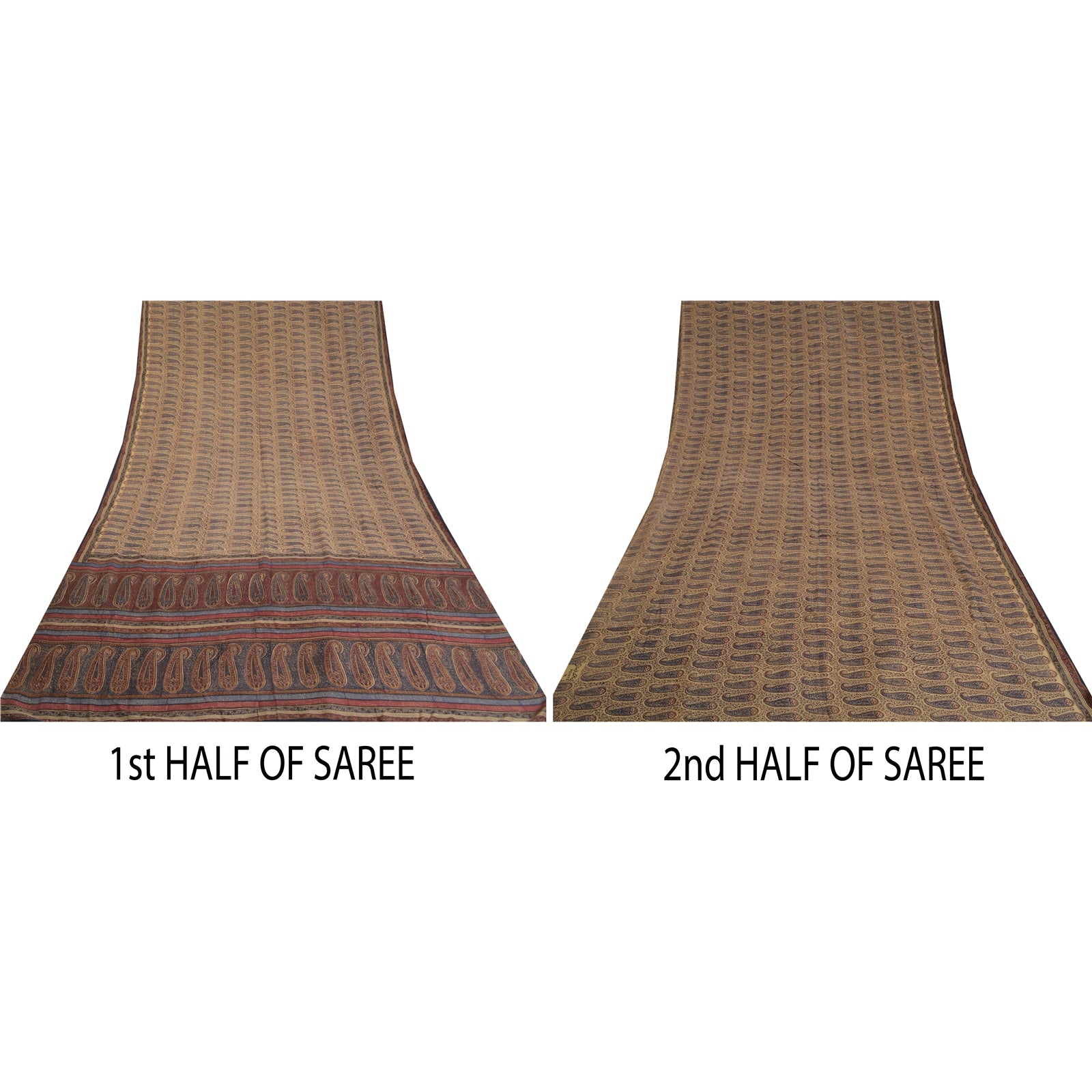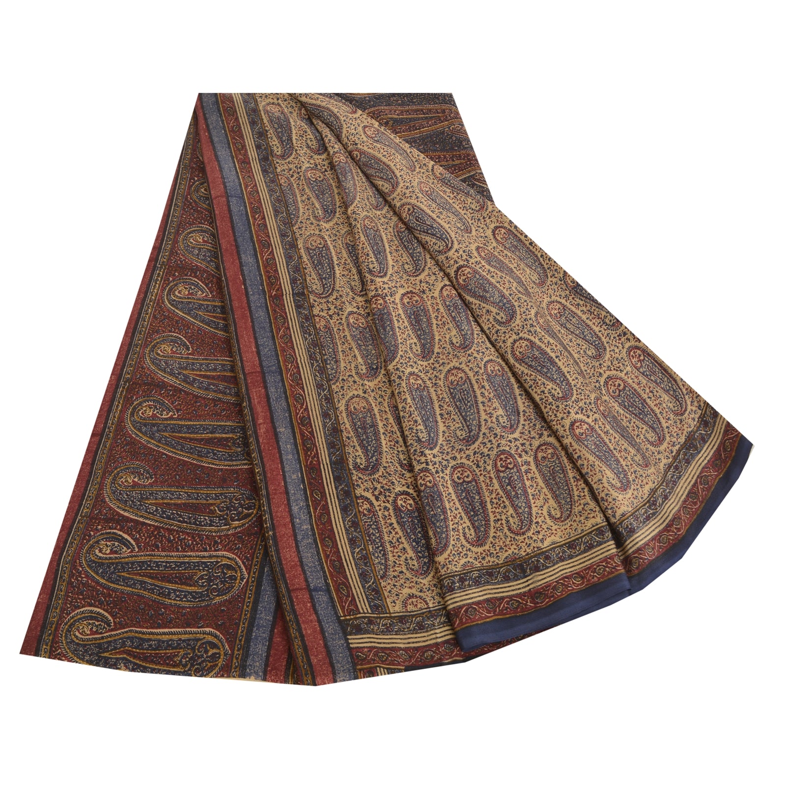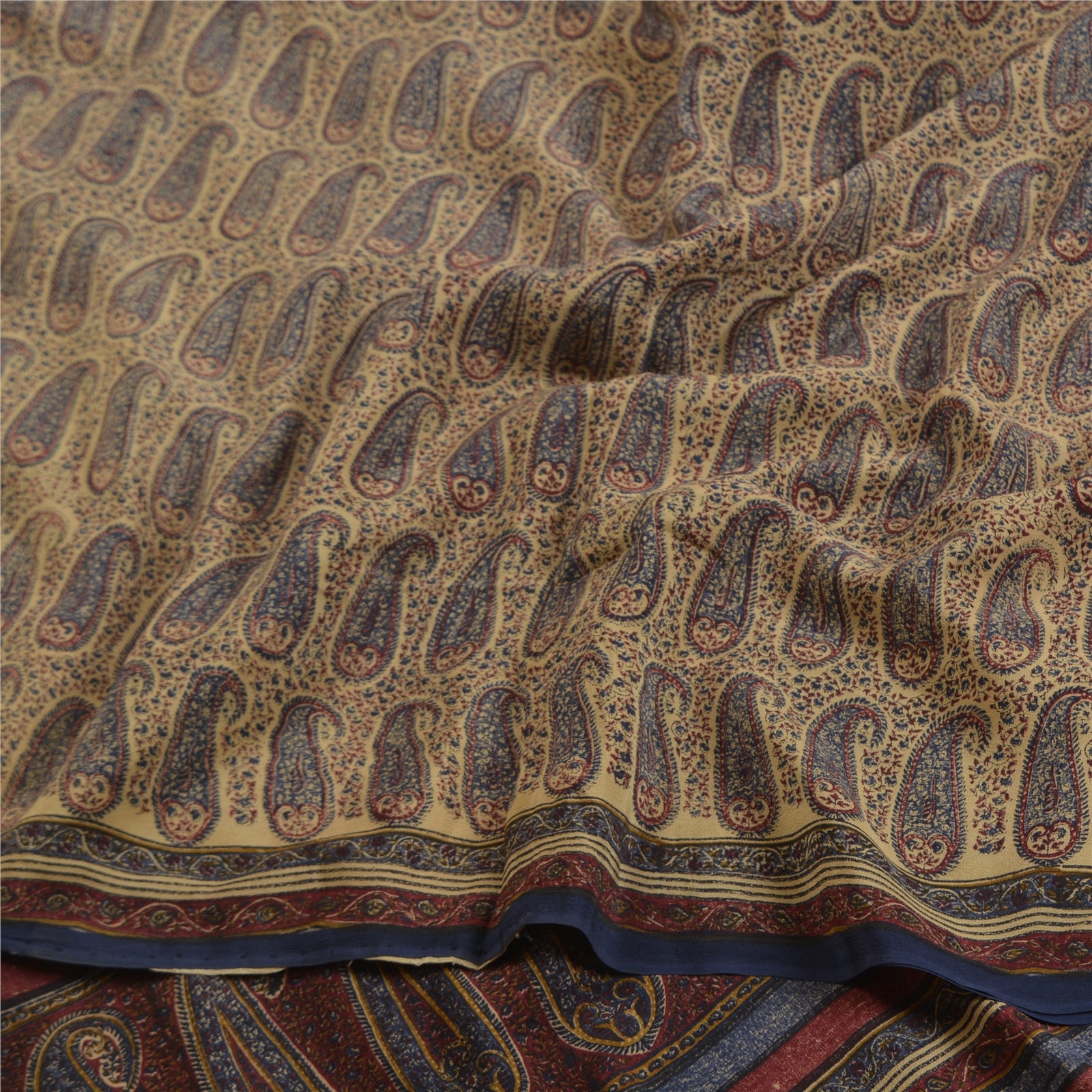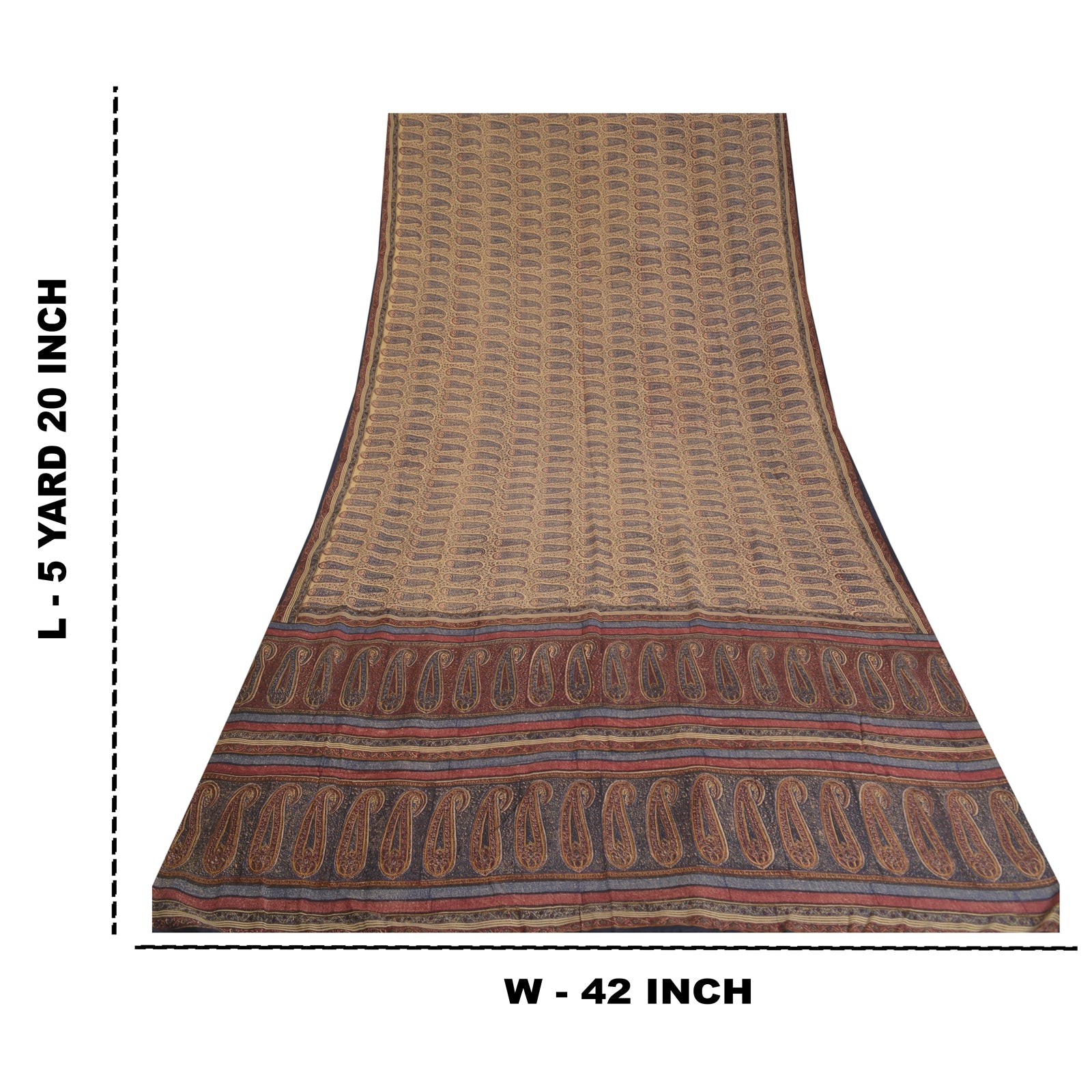 Санскритские винтажные сари индийский кремовый чистый креп шелк напечатанный сари ремесло устойчивая ткань